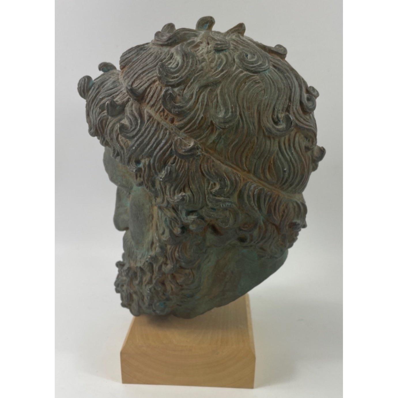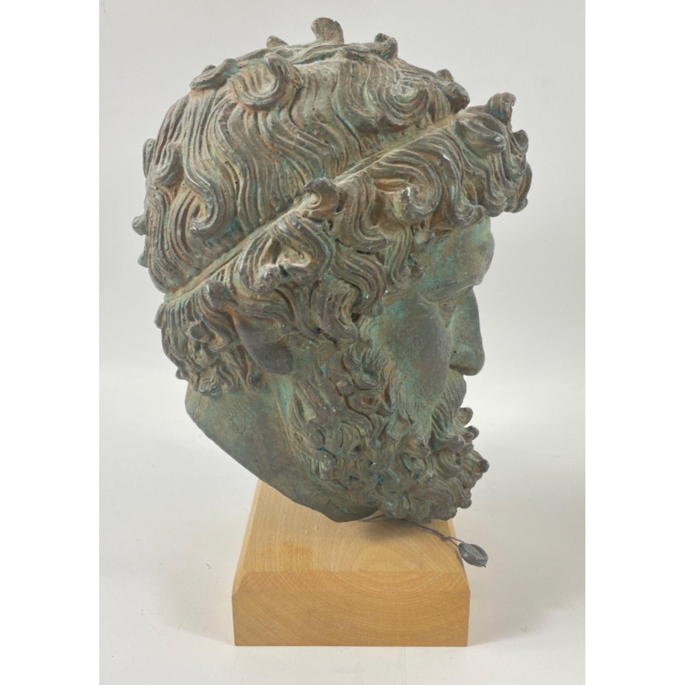 A 'ZEUS' style plaster of paris style head form on a wooden stand