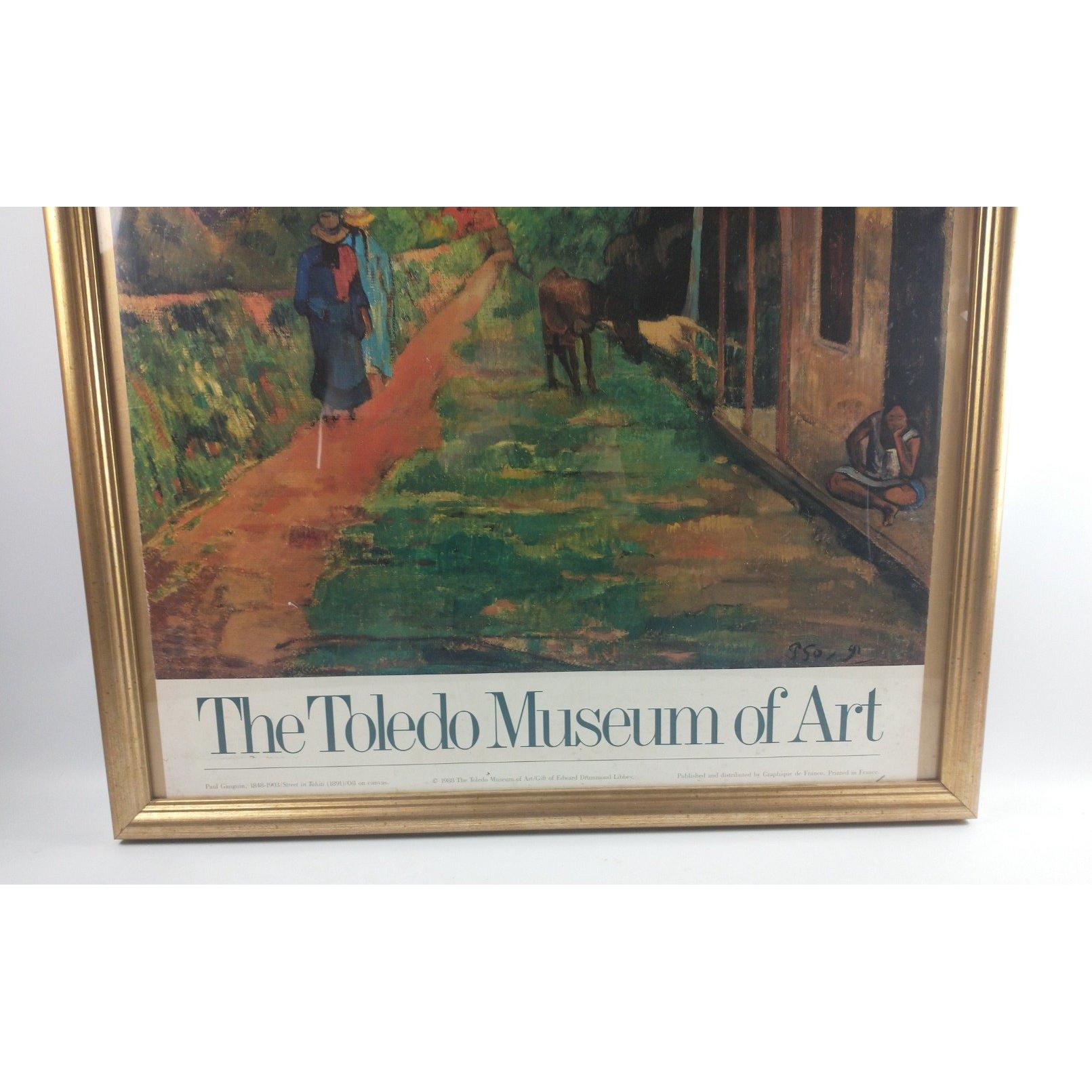Large Vintage framed poster print of PAUL GAUGHIN Street in Tahiti 1891L: 74cm approx H: 1m approx