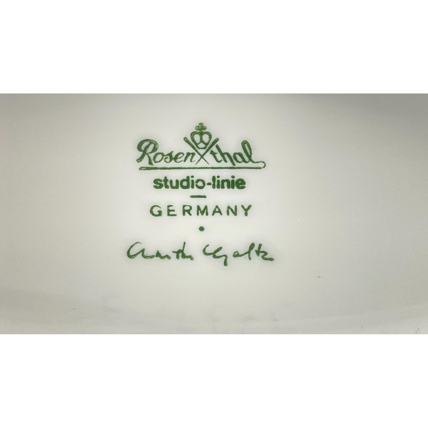 A small collection of German ROSENTHAL STUDIO LINIE china to include a vase (19cm), a small vase with tulip pattern (8cm), a white vase (14cm), a white vase with a wide lip (10cm), a vase with geometric pattern (13cm), plus a small Classic Rose vase with blue cherries from the ROSENTAHAL GROUP (11cm)