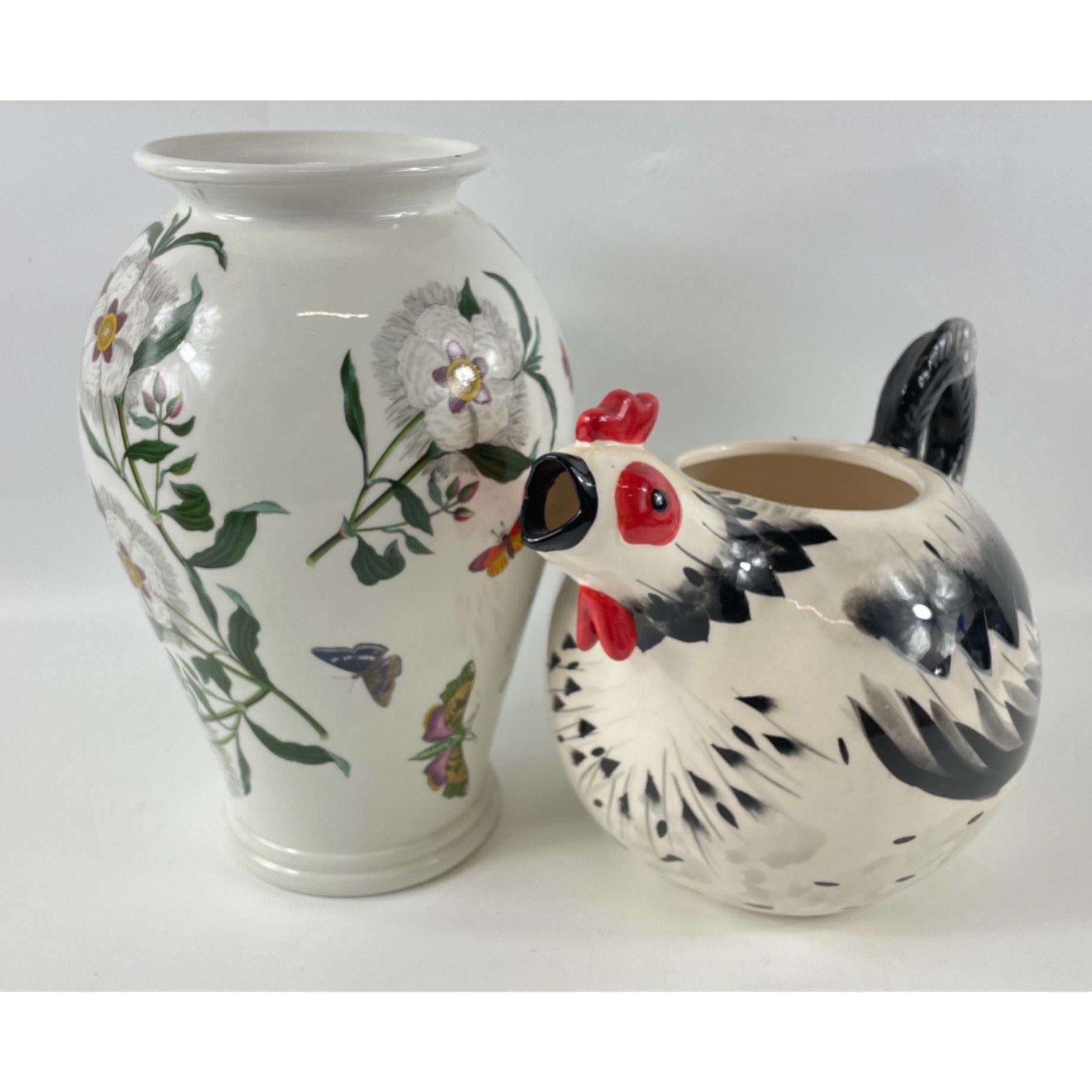 Two pieces of decorative China to include PORTMEIRION flora and fauna vase (H: 26cm) and R Roosters by Galla teapot (lid missing) in form of a roosterApprox 2 pieces