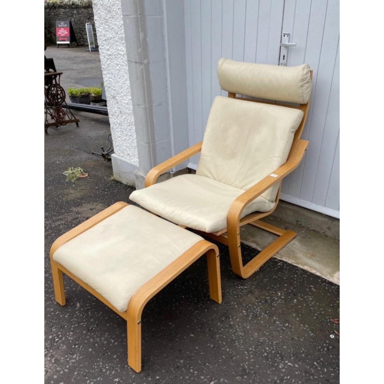 A standard size IKEA cream leather style relaxer chair and matching footstool - cost new £220 approx