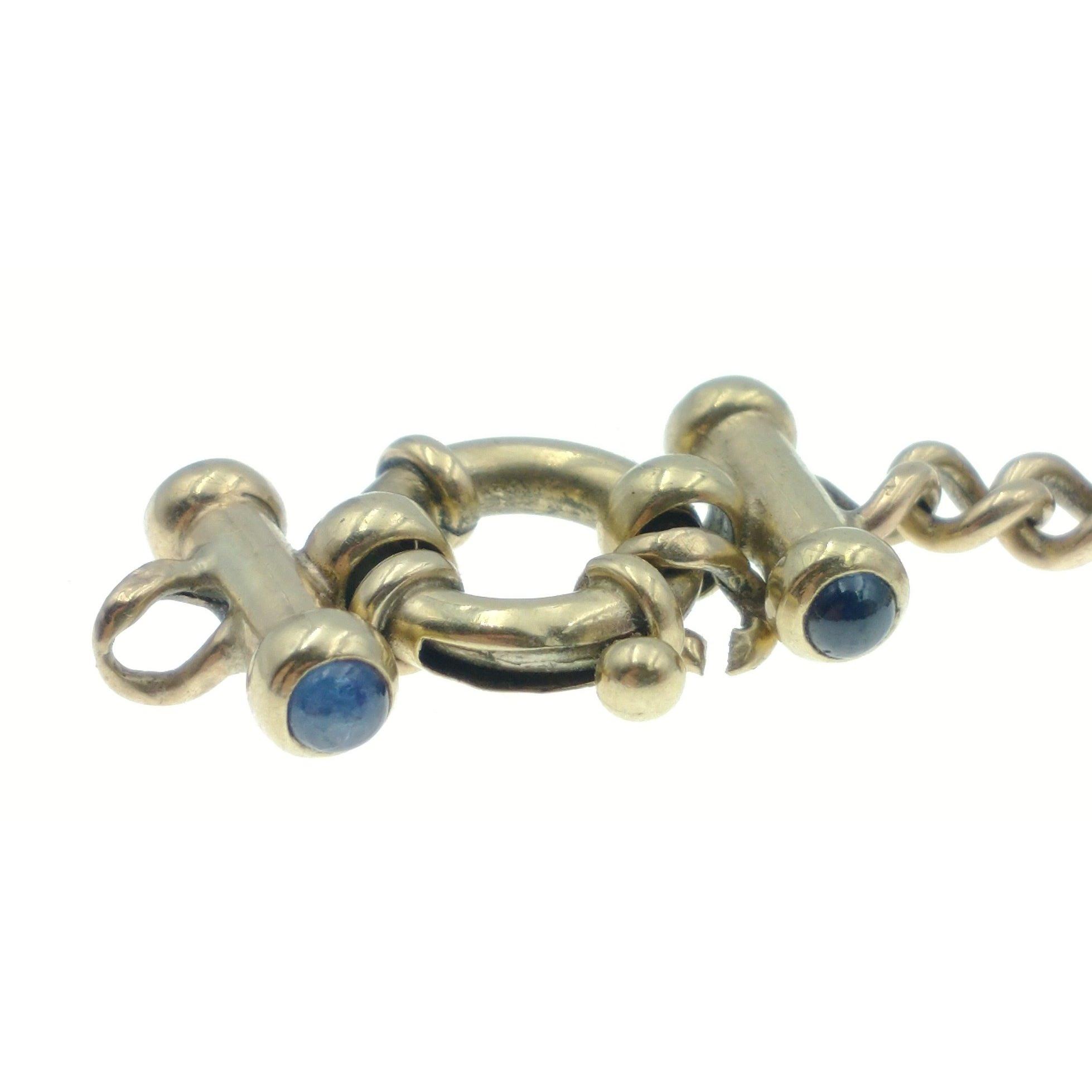 A 375 stamped yellow gold bracelet with feature inter-linking feature with four small blue stones - this bracelet requires a small repair - nice quality! - gross weight 3.69g approxApprox 1 pieces