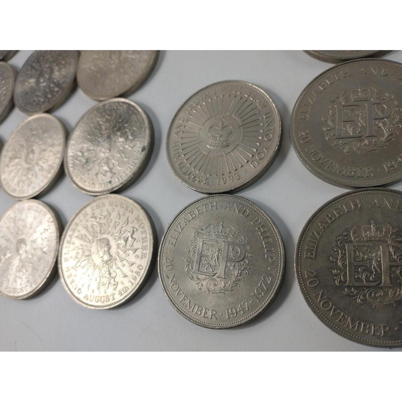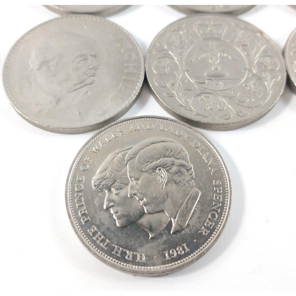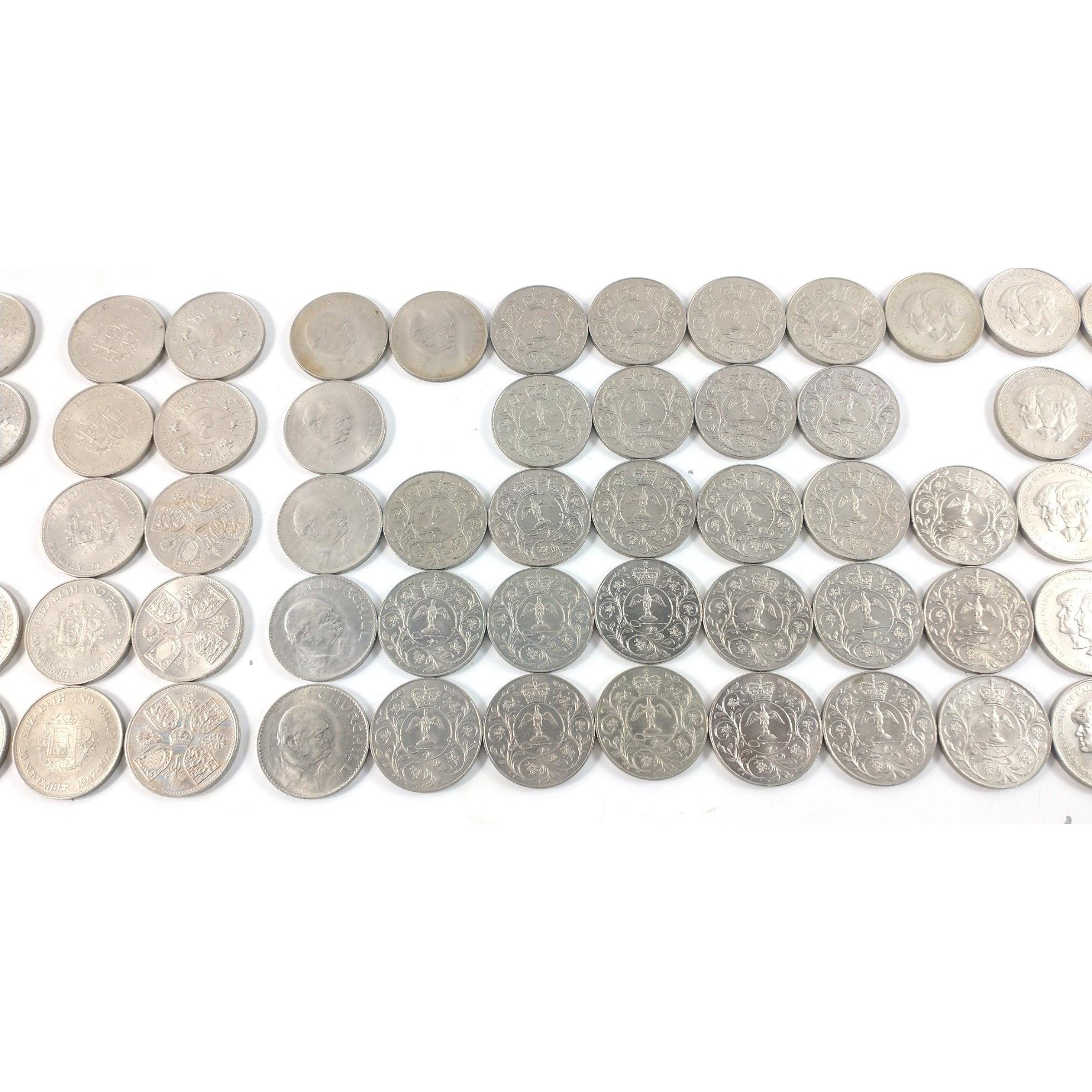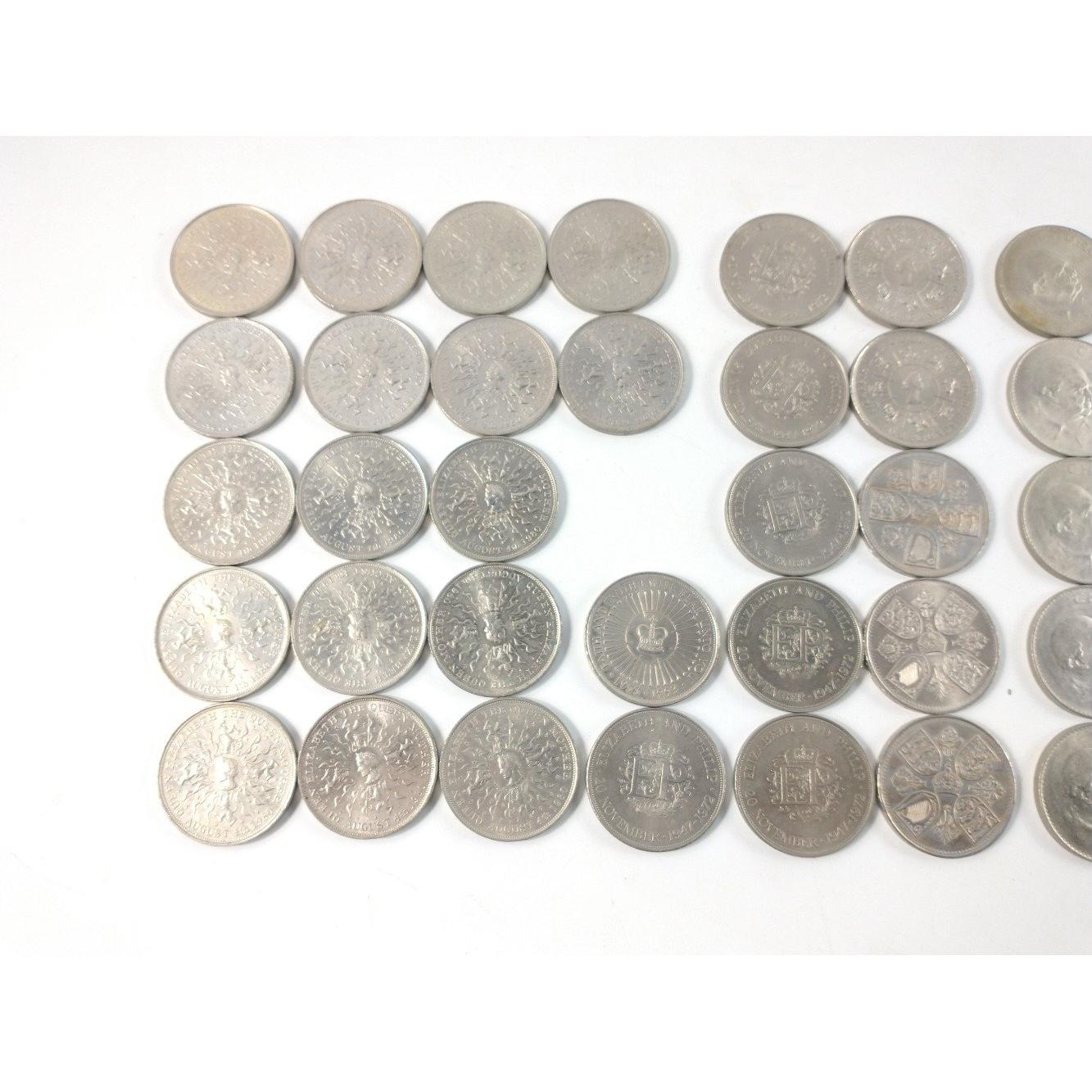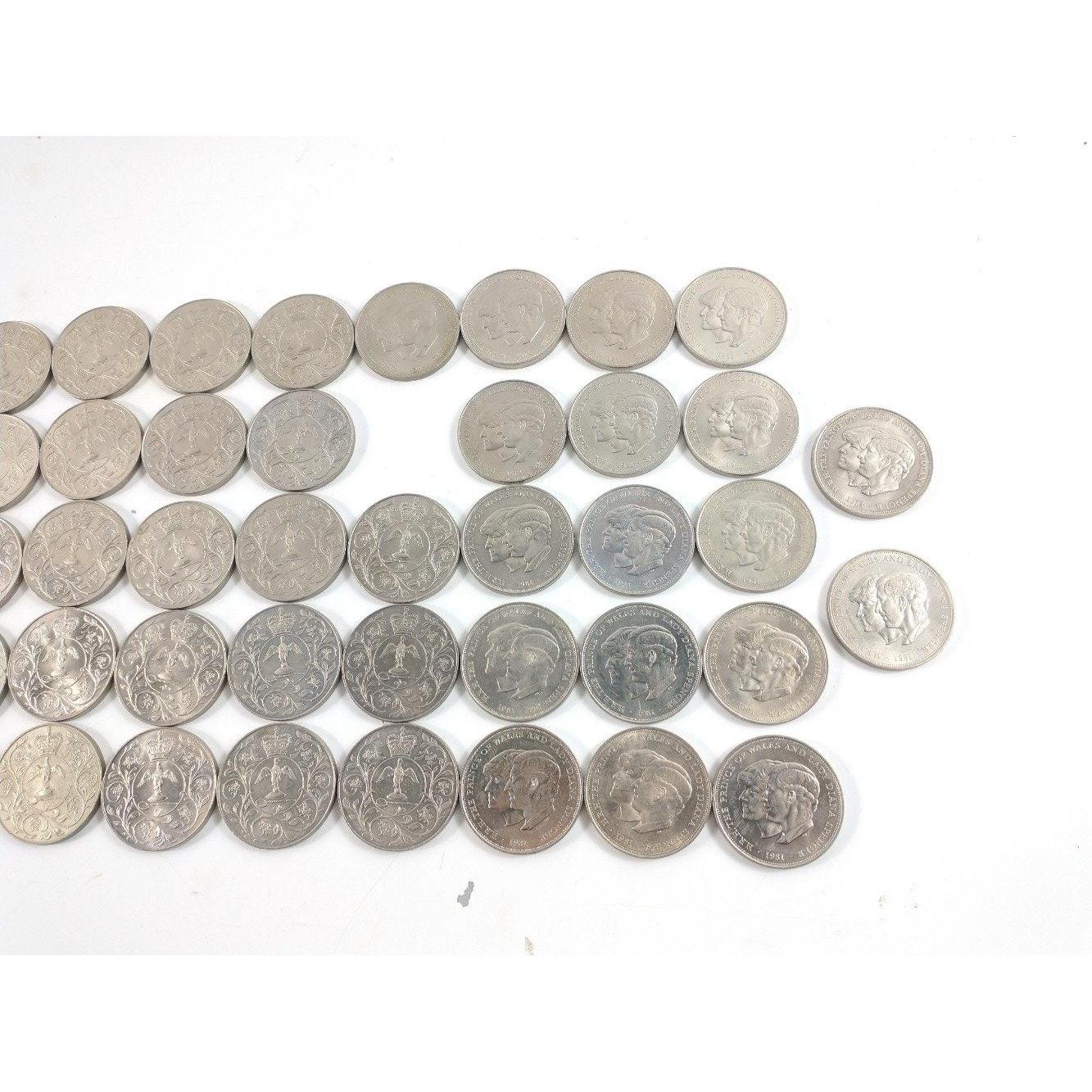 Bags of money! a huge haul of £5.00 coins to include 6 Churchill, 26 1977 Jubilee coins, 18 Charles and Diana 1981 coins, 6 Elizabeth and Philip silver wedding coin, 3 1953-93 coins, 3 5 shilling coins, 17 Elizabeth QM 80th birthday coins
