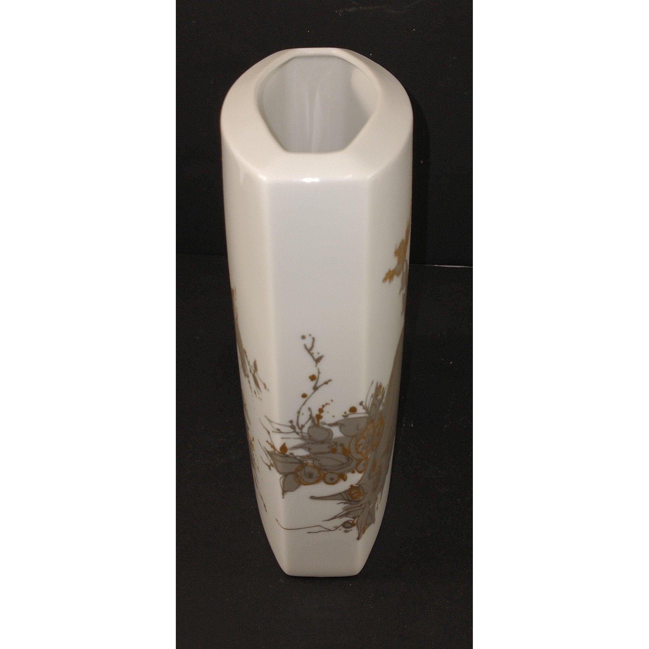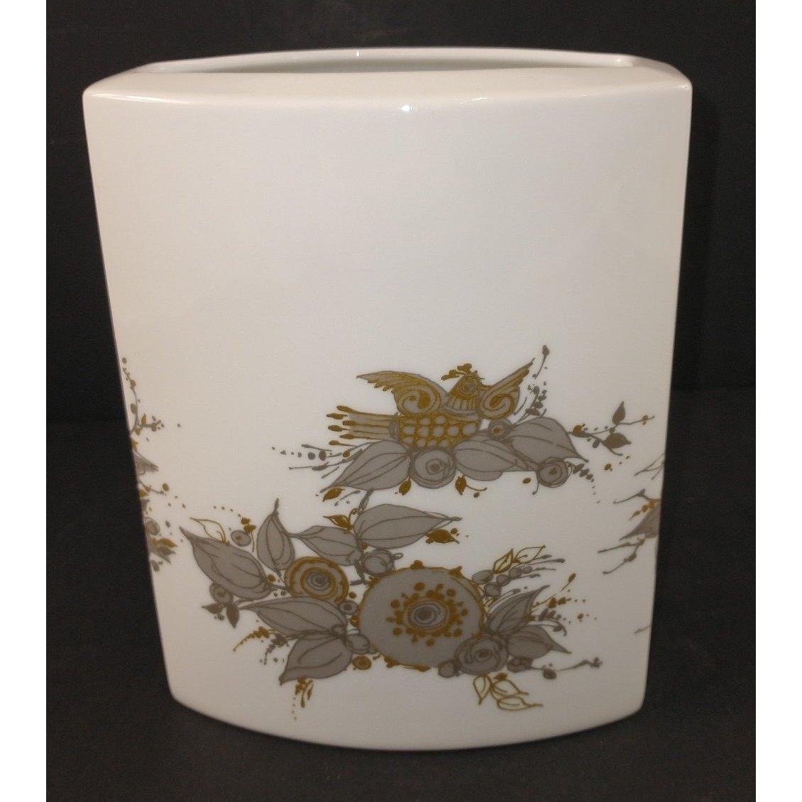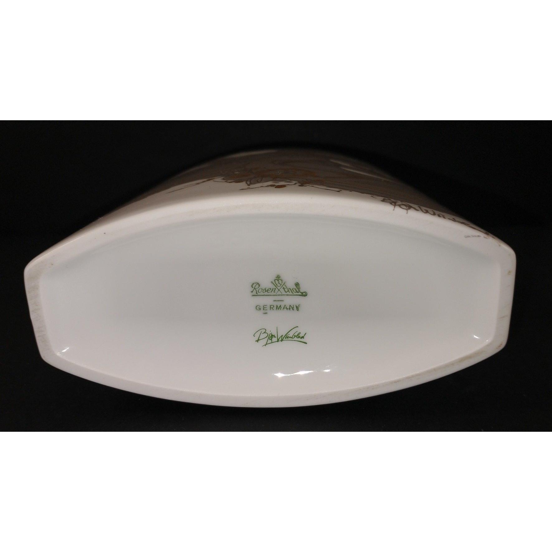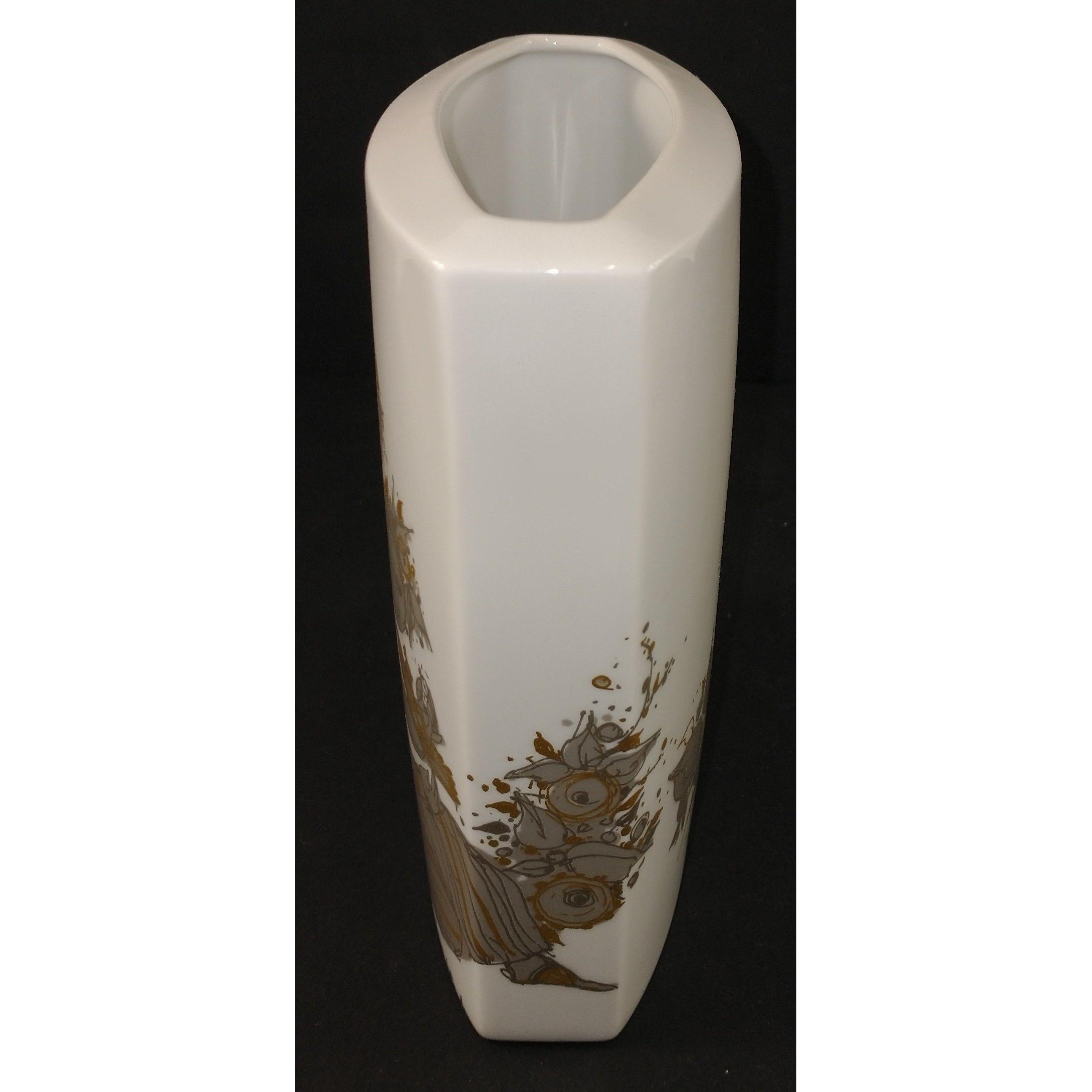 A collectable vintage ROSENTHAL vase signed by BJORN WIINBLAD with a grey and gilt design of 2 ladies stands 17cm high