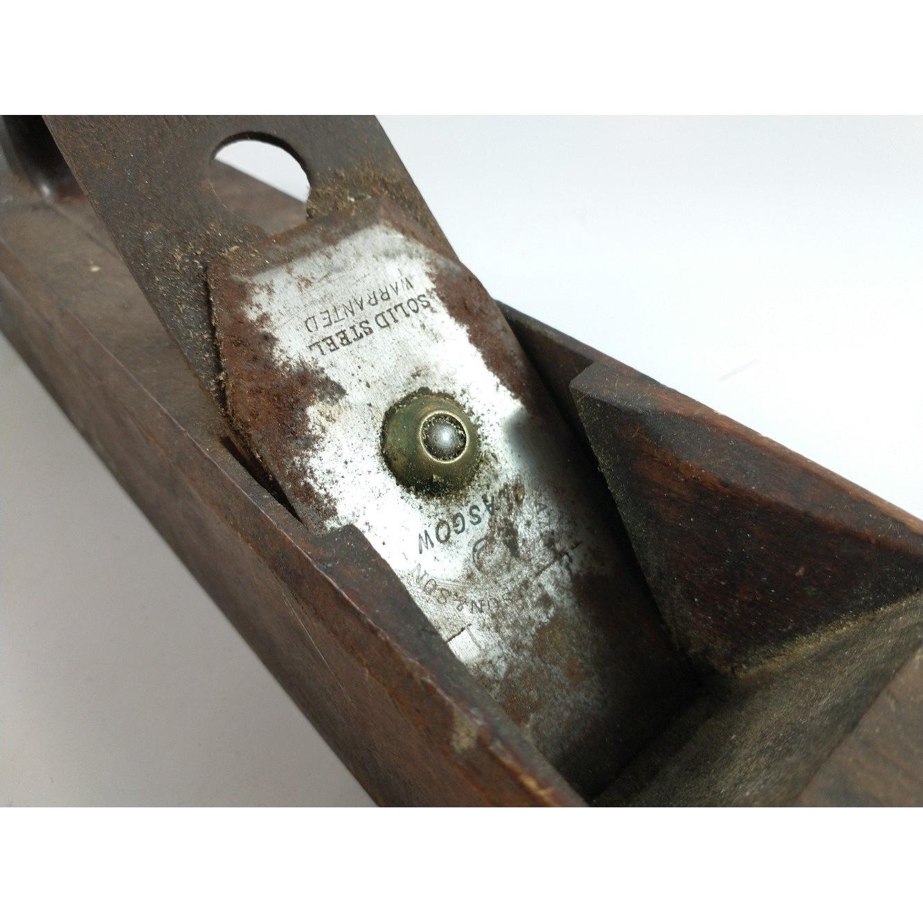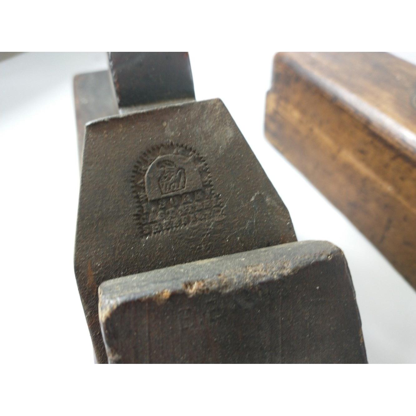 A collection of three antique wooden planes, two large sized dimensions 57cm long each, and one medium GLASGOW manufactured sized plane, dimension 44cm long approx, and an early STANLEY No 78 plane dimensions 25cm long x 12.5cm tall(base to top of handle) and lastly an old wooden headed hammer