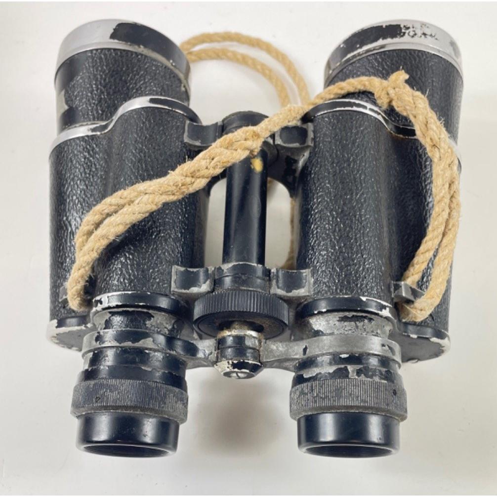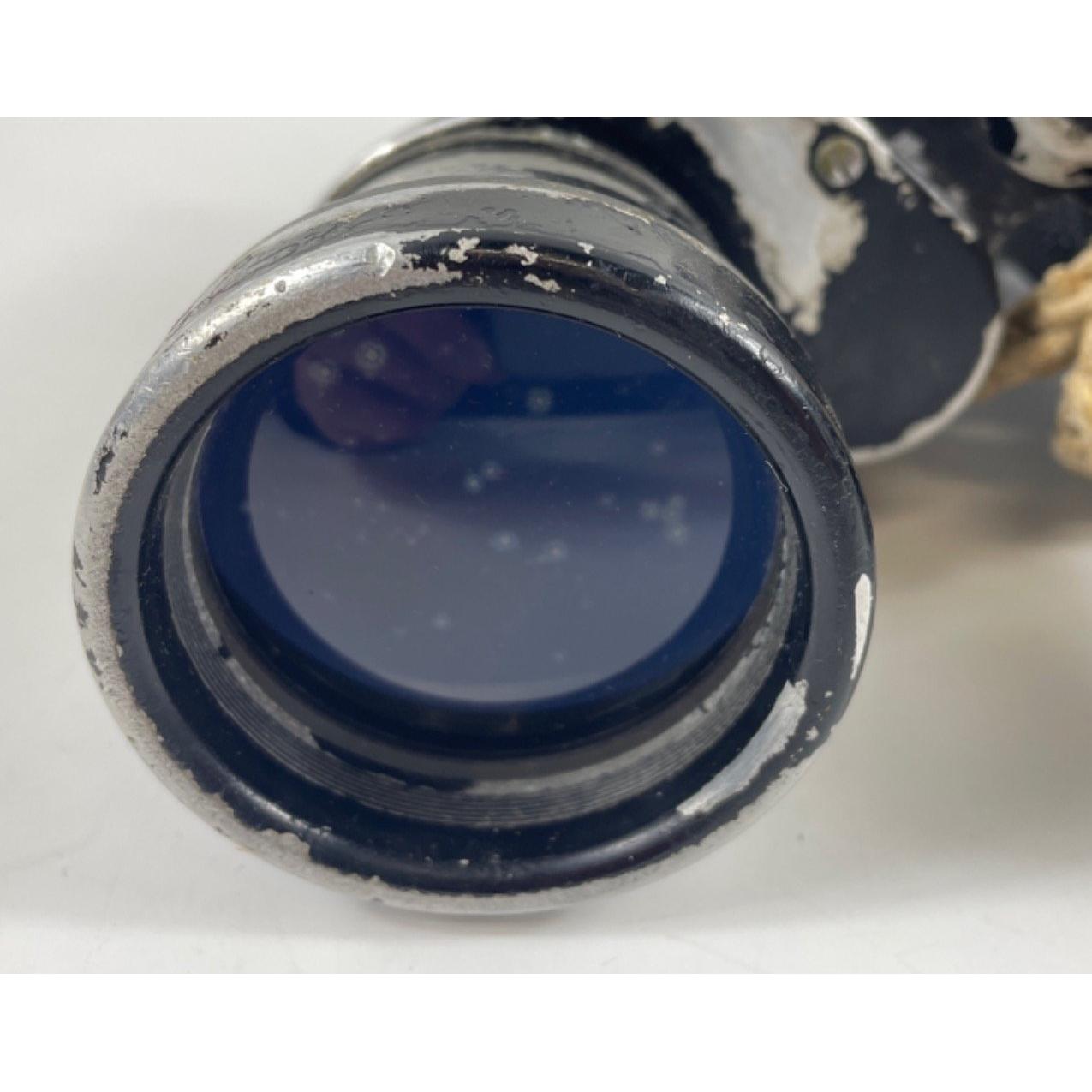 A pair of old field binoculars in a case - in a worn condition with the maker and strength details worn-away with use - but still an impressive set of binocularsApprox 2 pieces