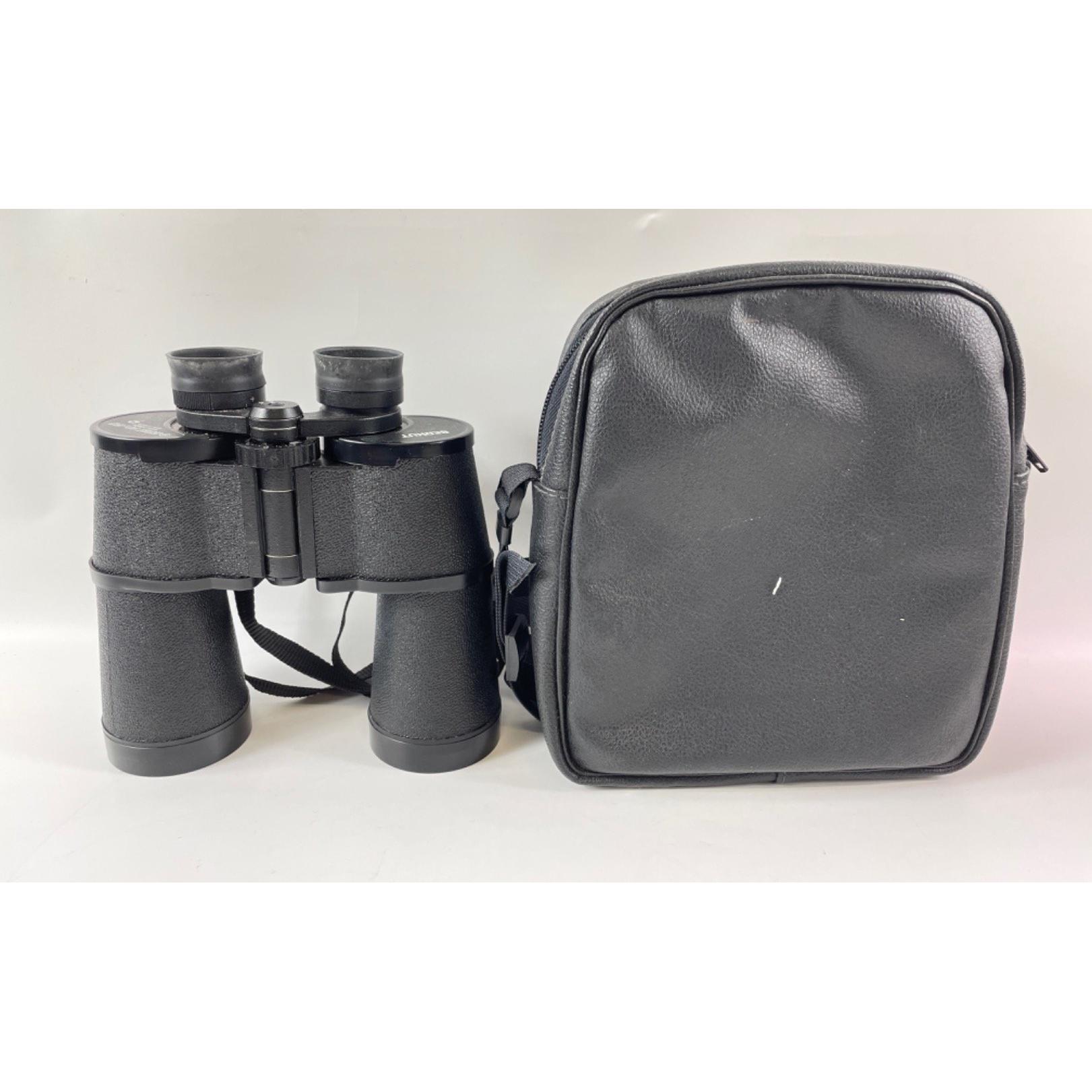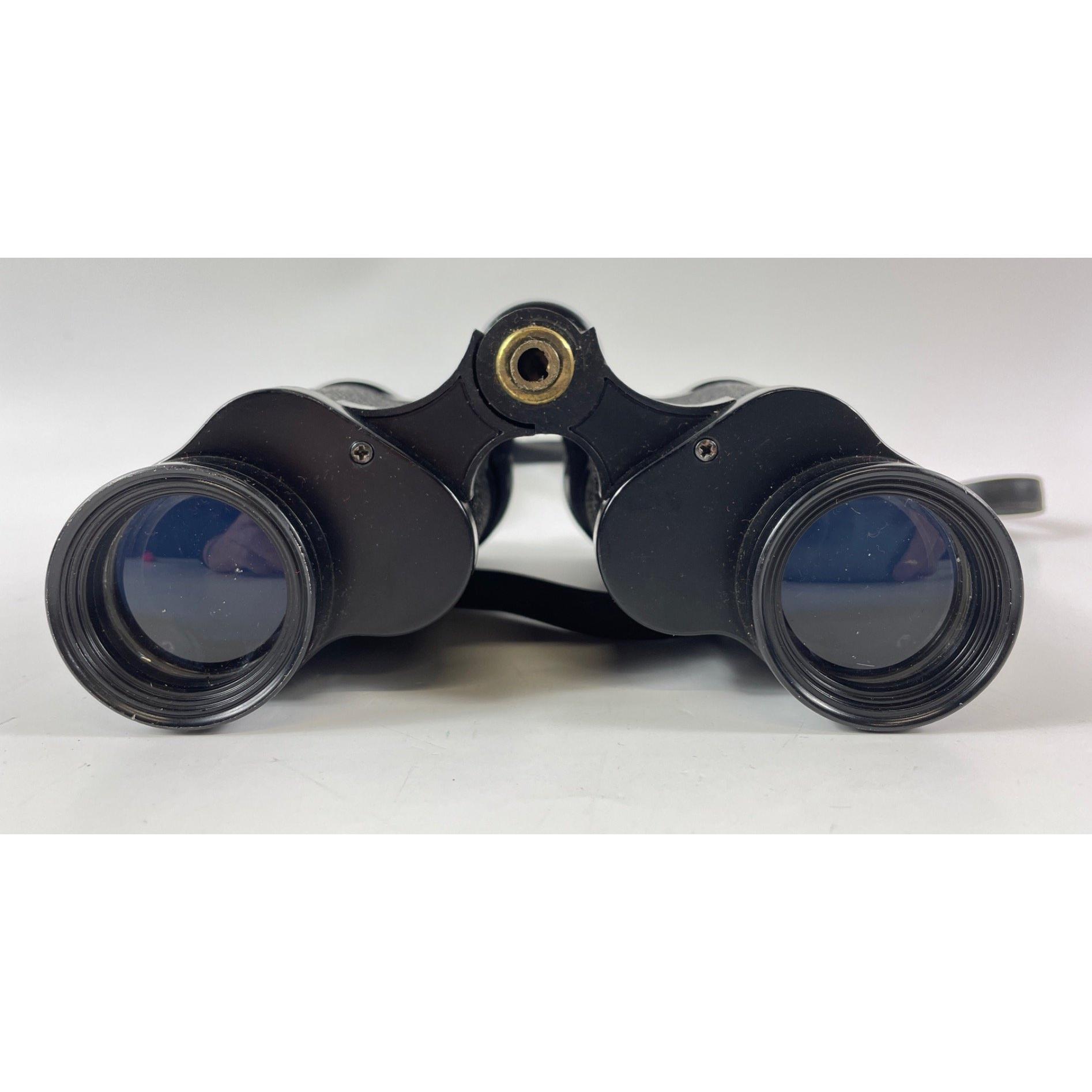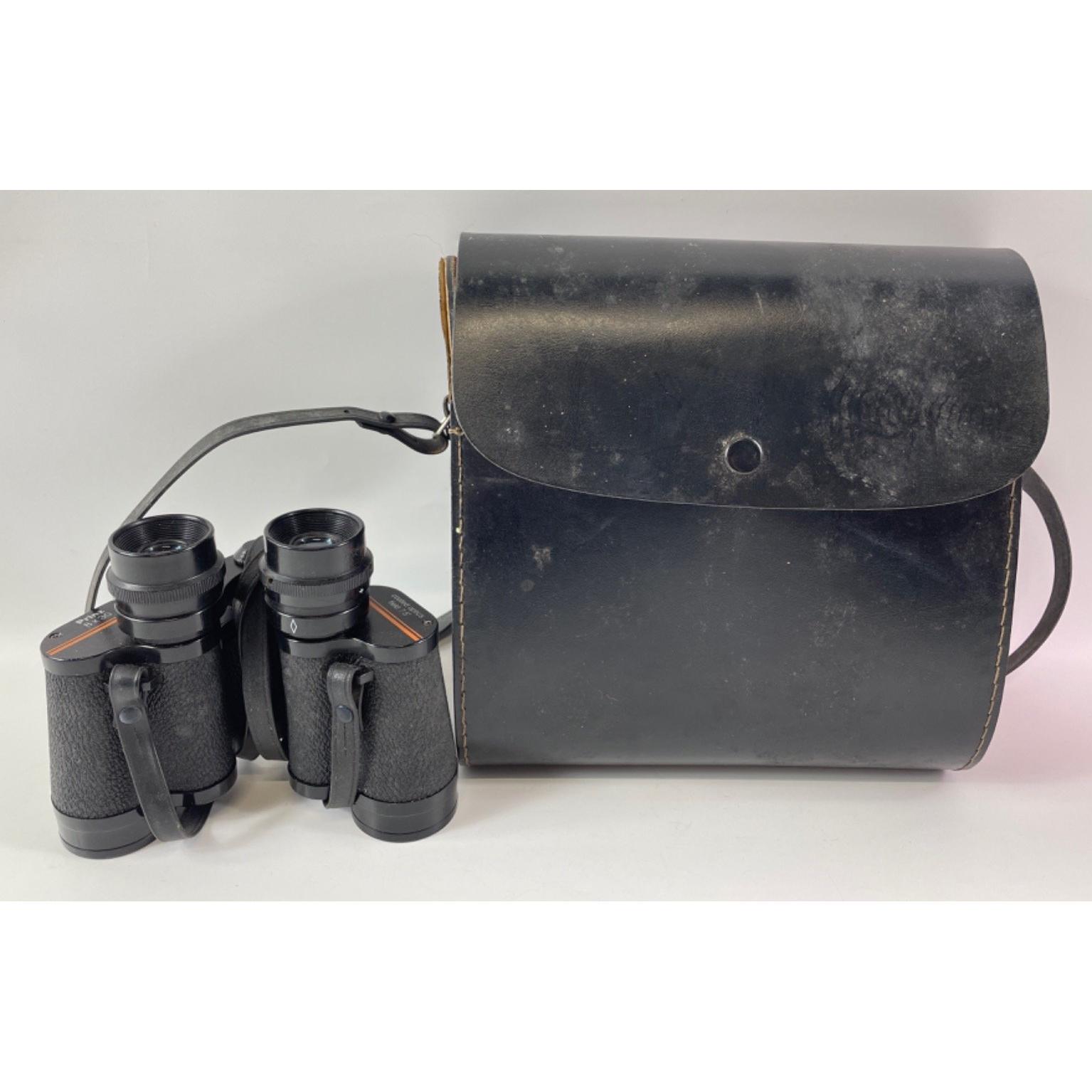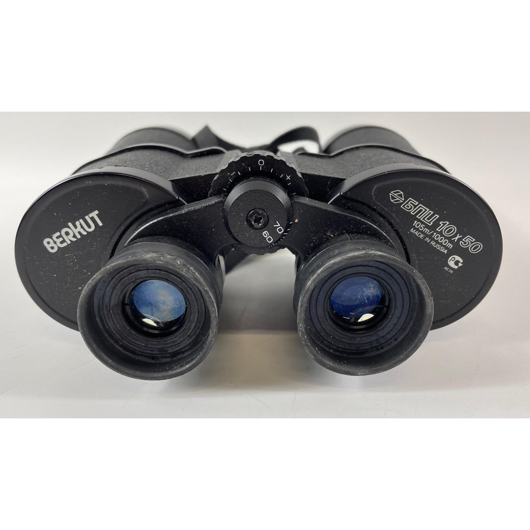 A pair of BERKUT 10 x 50 Russian Federation Binoculars in a black protective carry-case dimensions 19cm height x 18cm width approx, also a pair of PRINZ 8x30 binoculars within a case (not original case)