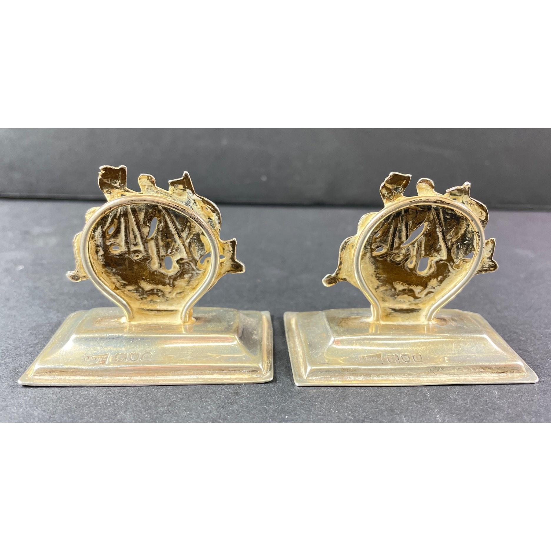 A pair of silver hallmarked, London 1900, place card holders with a design of a sailing ship made by MAPPIN & WEBB, length 5.5cm, gross weight 62gApprox 2 pieces