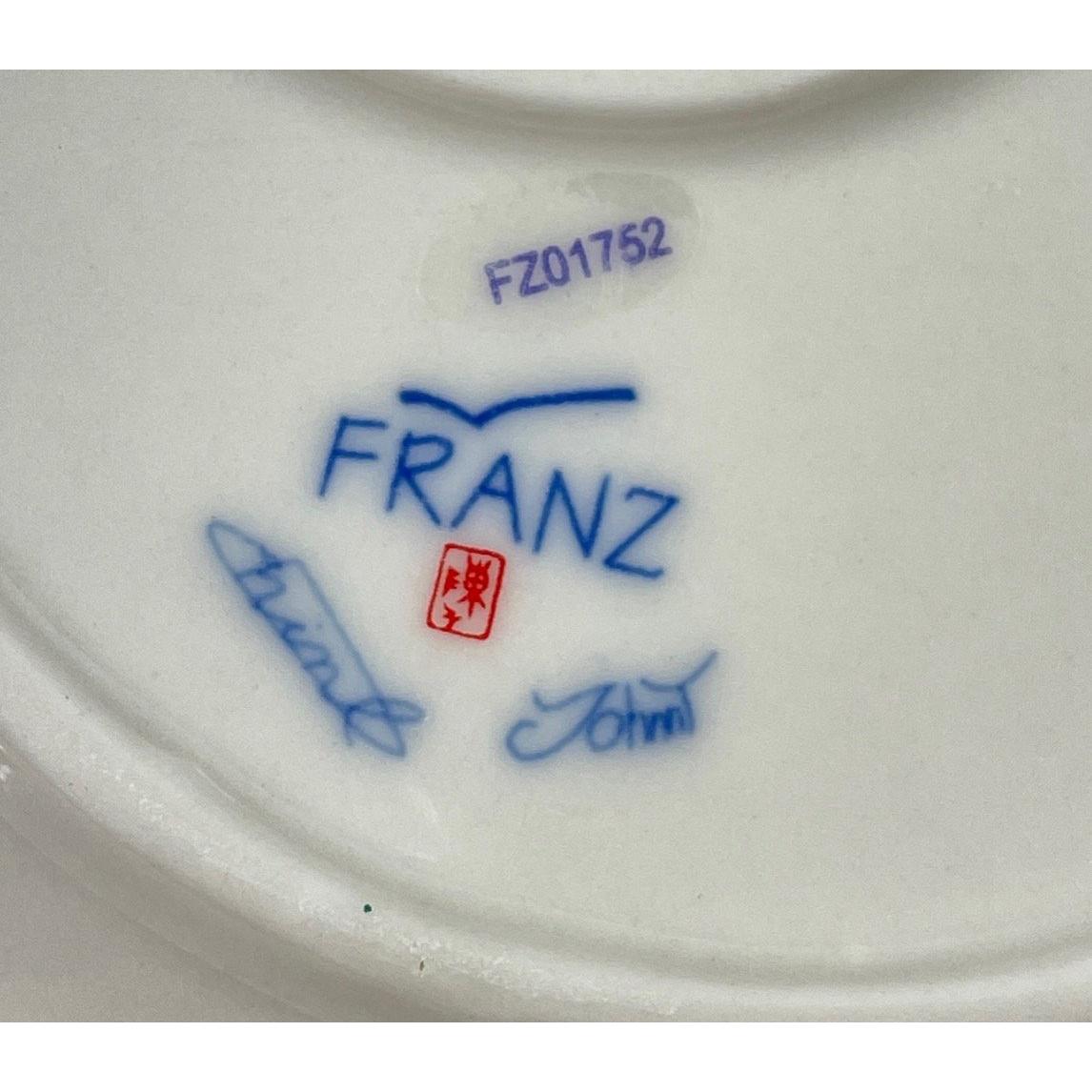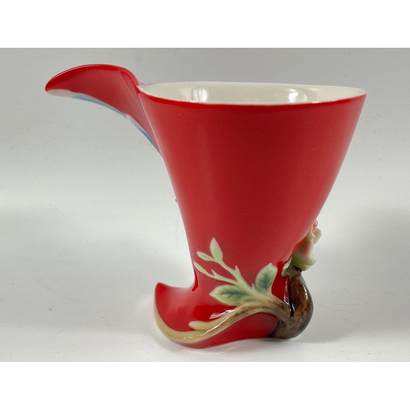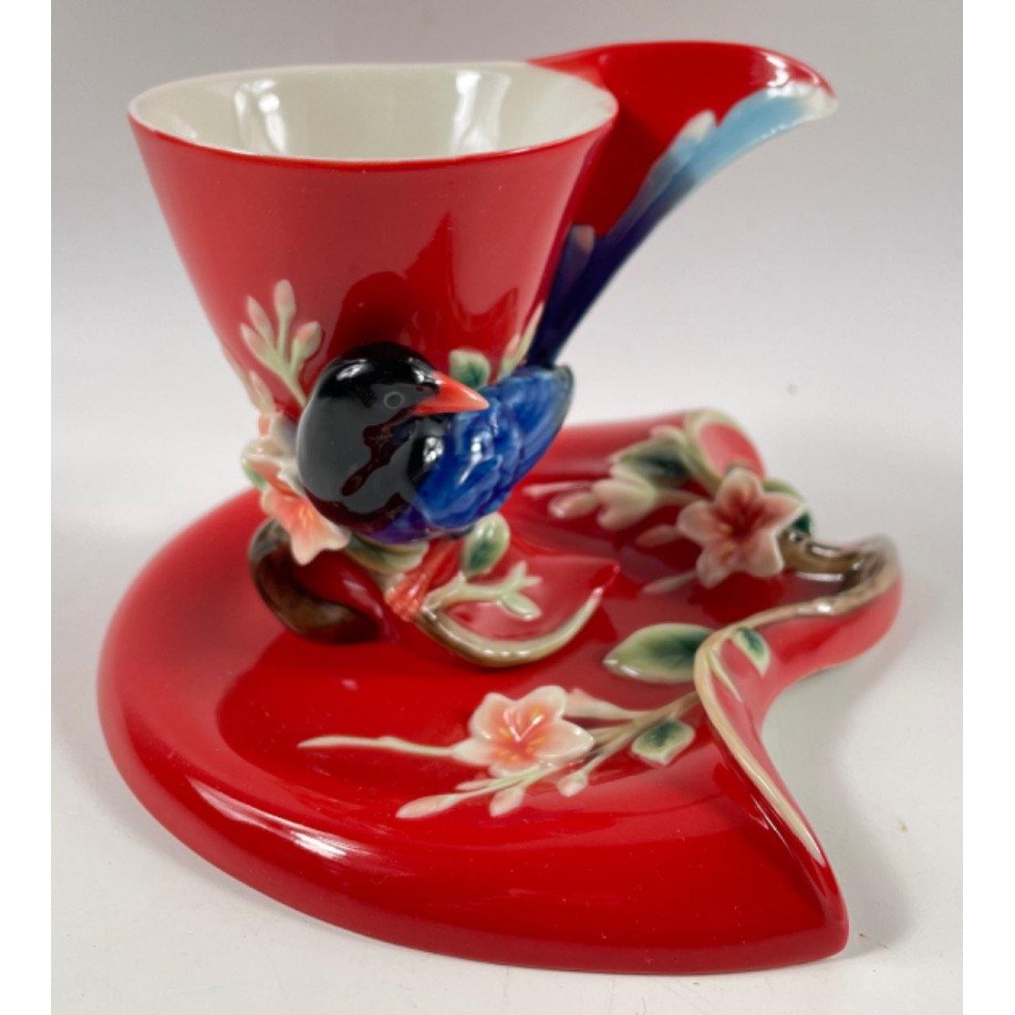 Top quality from the FRANZ PORCELAIN COLLECTION - a blue magpie design sculptured porcelain cup/saucer set (FZ01752) Dimensions (L x W x H Inch): 5-5/8 x 5-5/8 x 3-3/4Approx 1 pieces