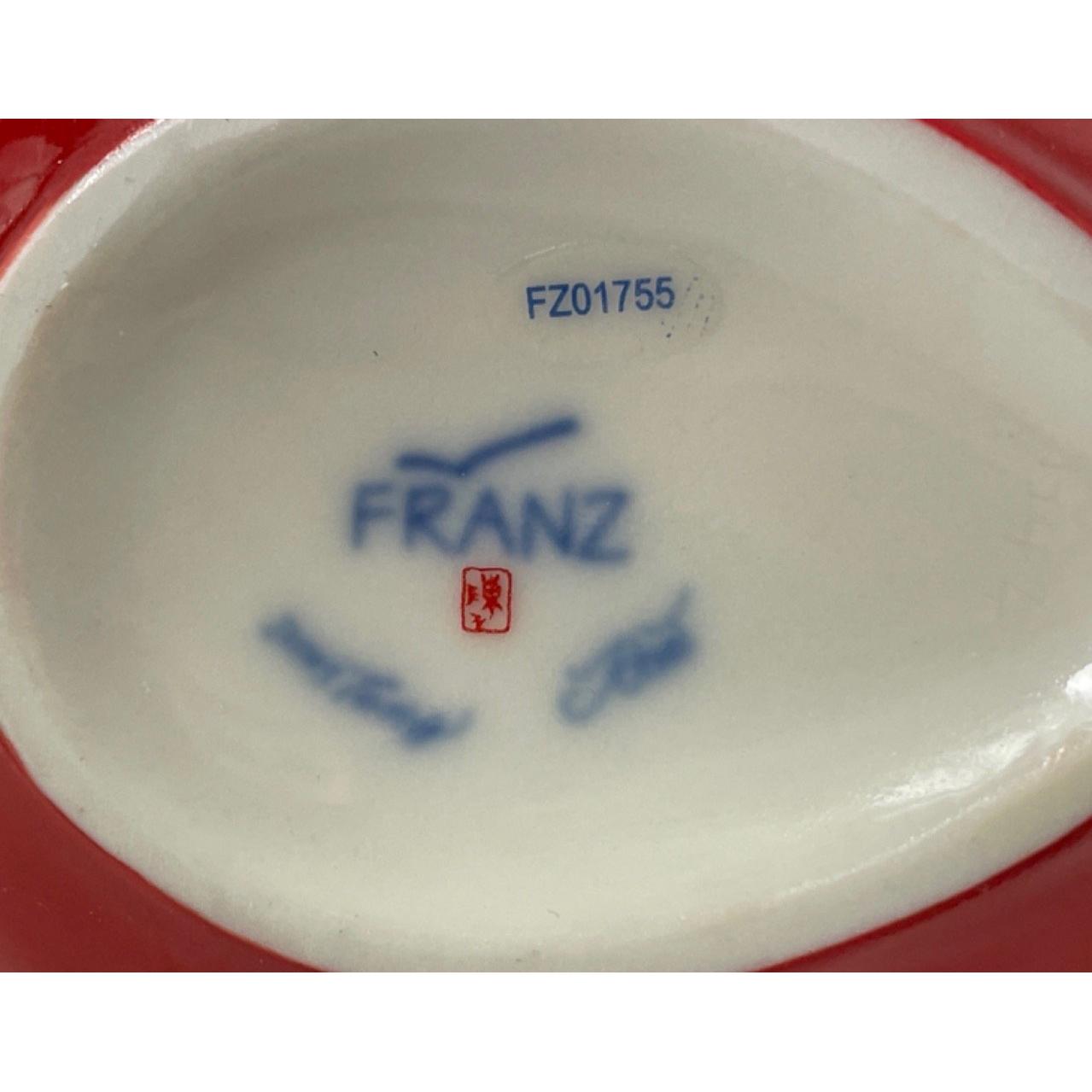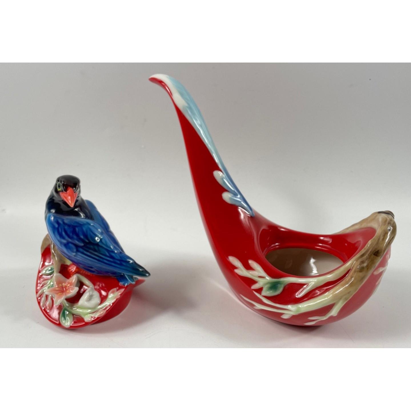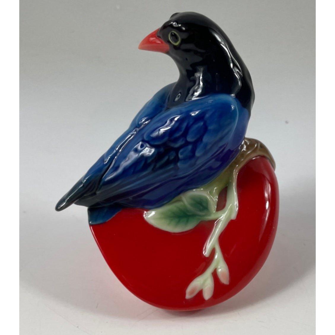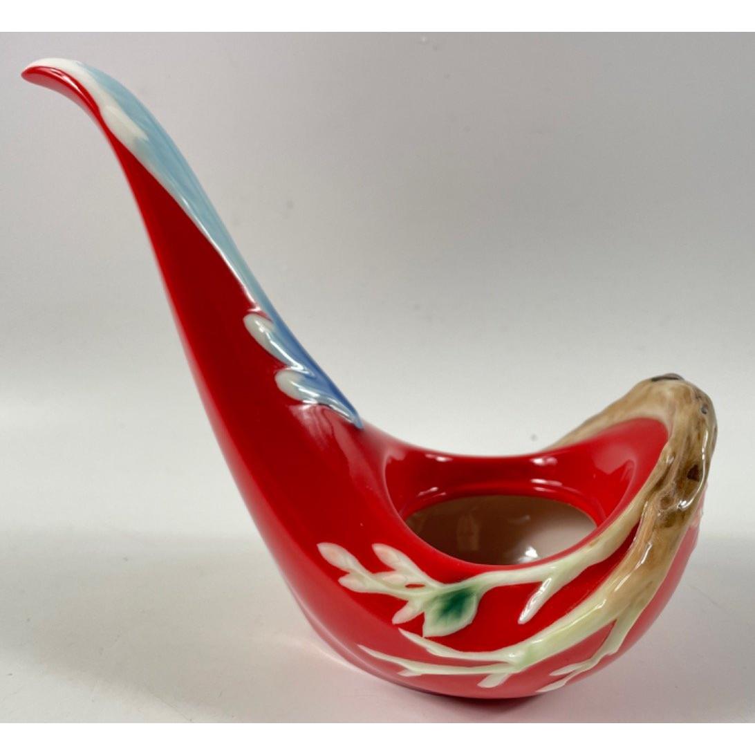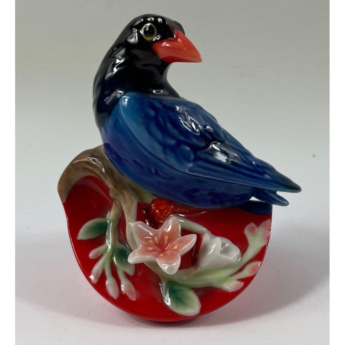Top quality from the FRANZPORCELAIN COLLECTION - a blue magpie design sculptured porcelain sugar jar (FZ01755) with cover Dimensions (HxWxD in inches) 5.38 x 3.13 x 5.88 InchesApprox 1 pieces