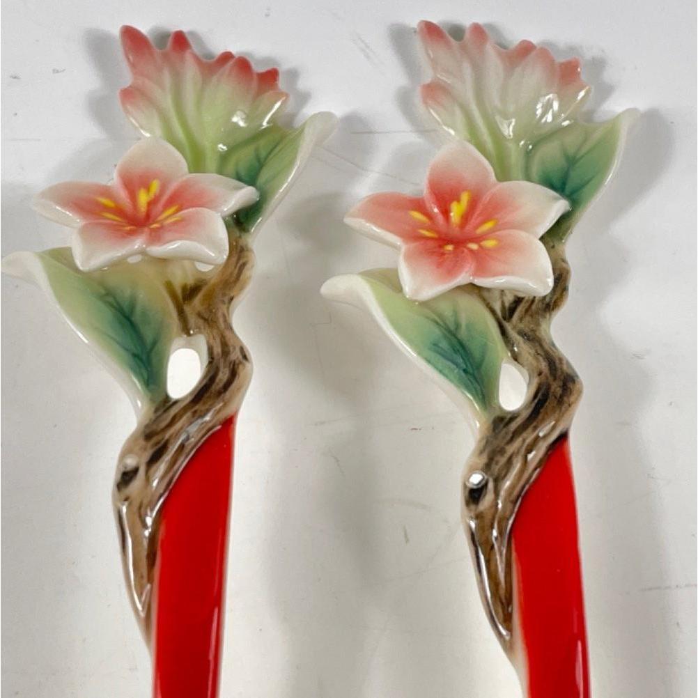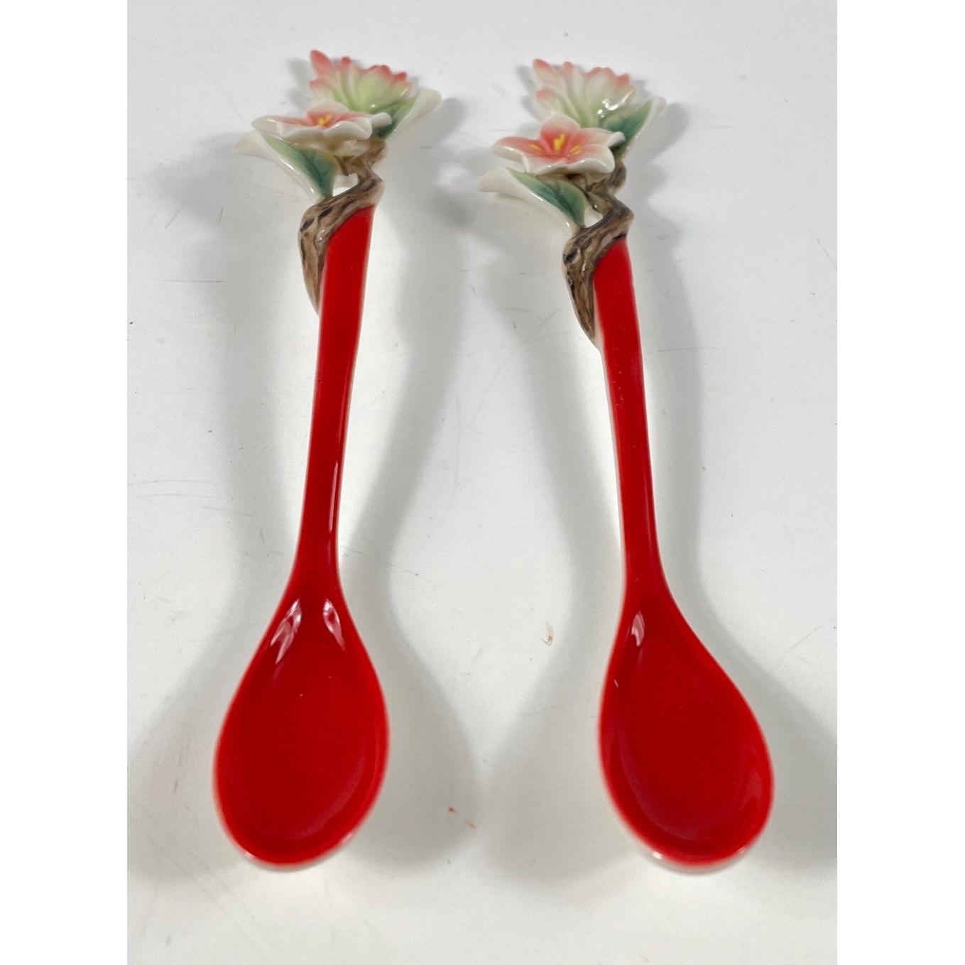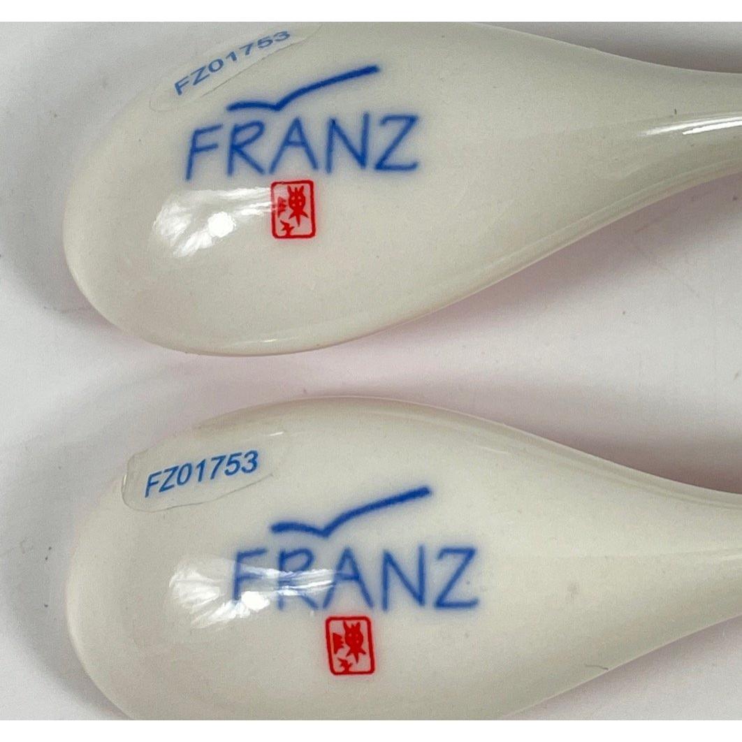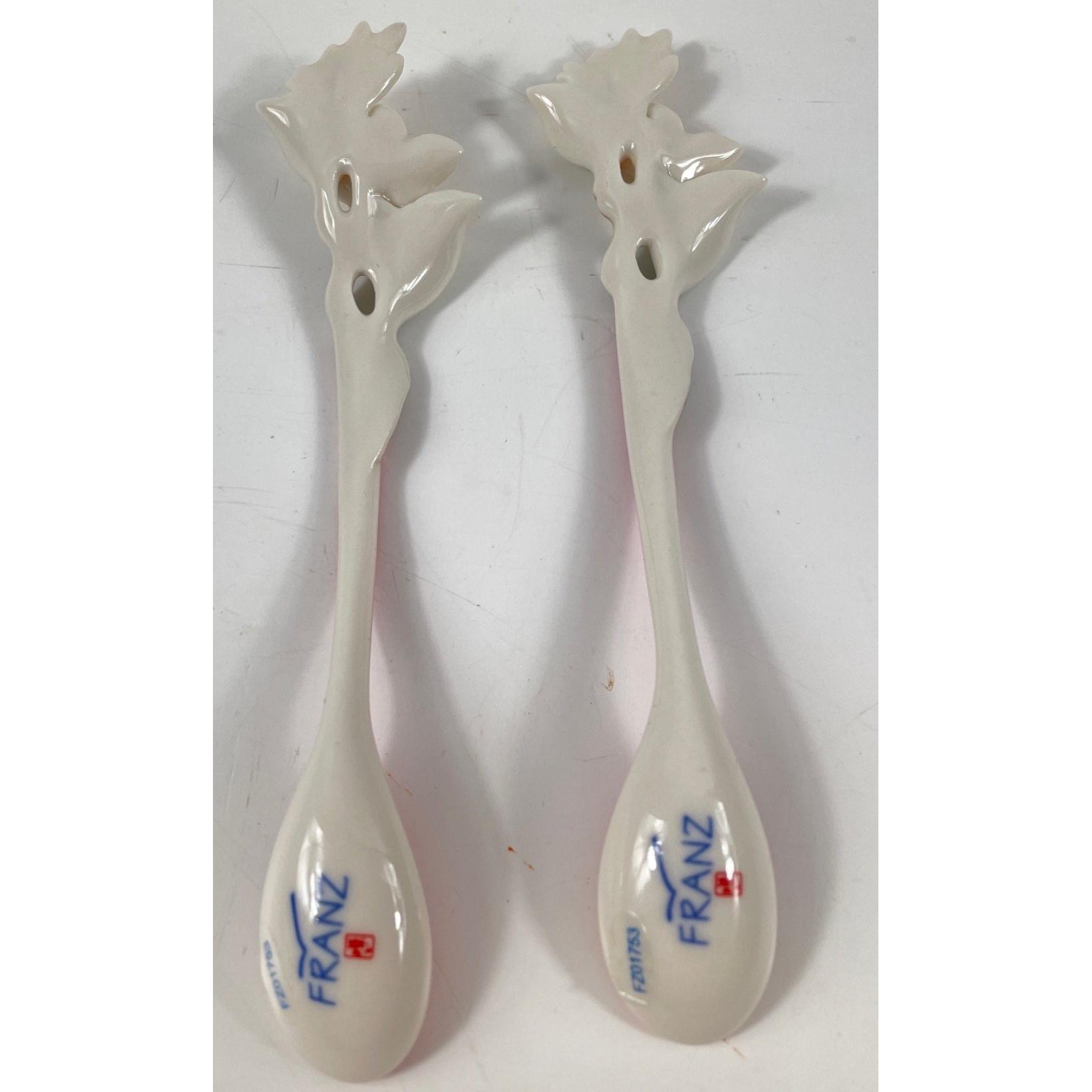 Top quality from the FRANZPORCELAIN COLLECTION - two blue magpie design sculptured porcelain spoons (FZ01753) Dimensions: 5-3/8 L Inch Approx 2 pieces