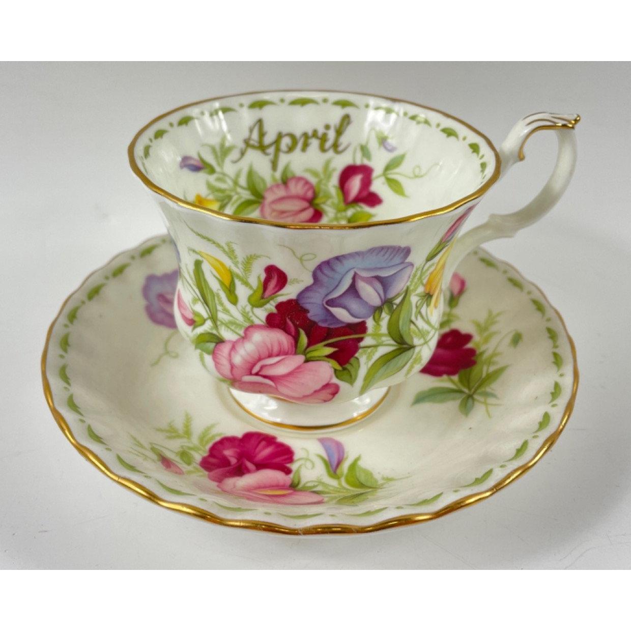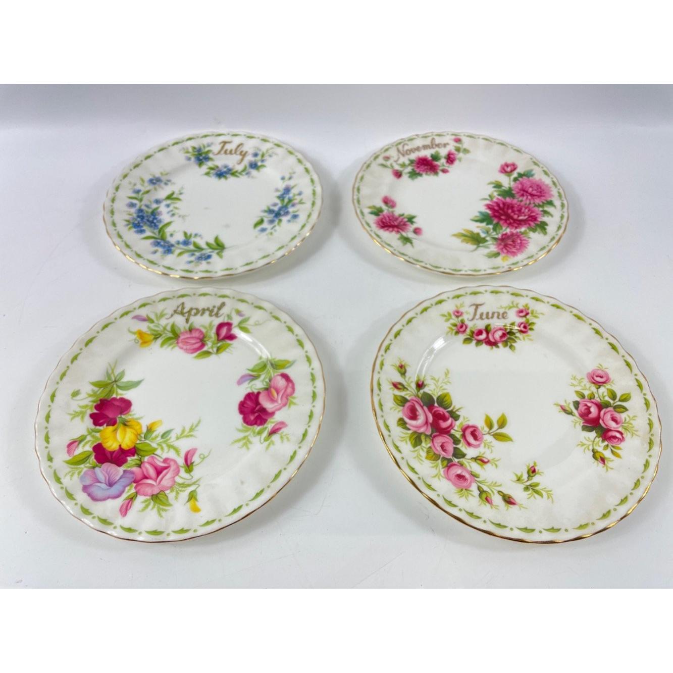 ROYAL ALBERT part Flowers of the Month Series, 4 tea plates saucers and cups of the months APRIL/JUNE/JULY and NOVEMBER also 6 Paragon tea plates.Approx 18 pieces