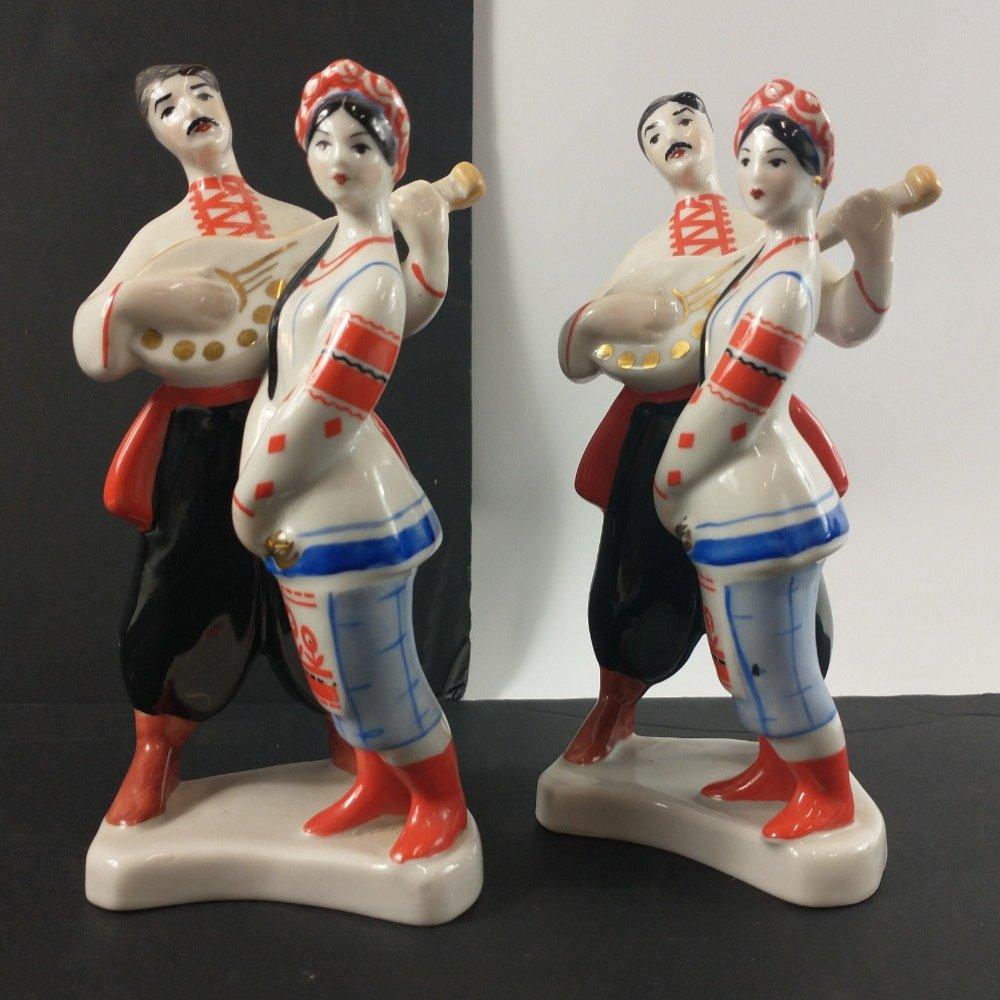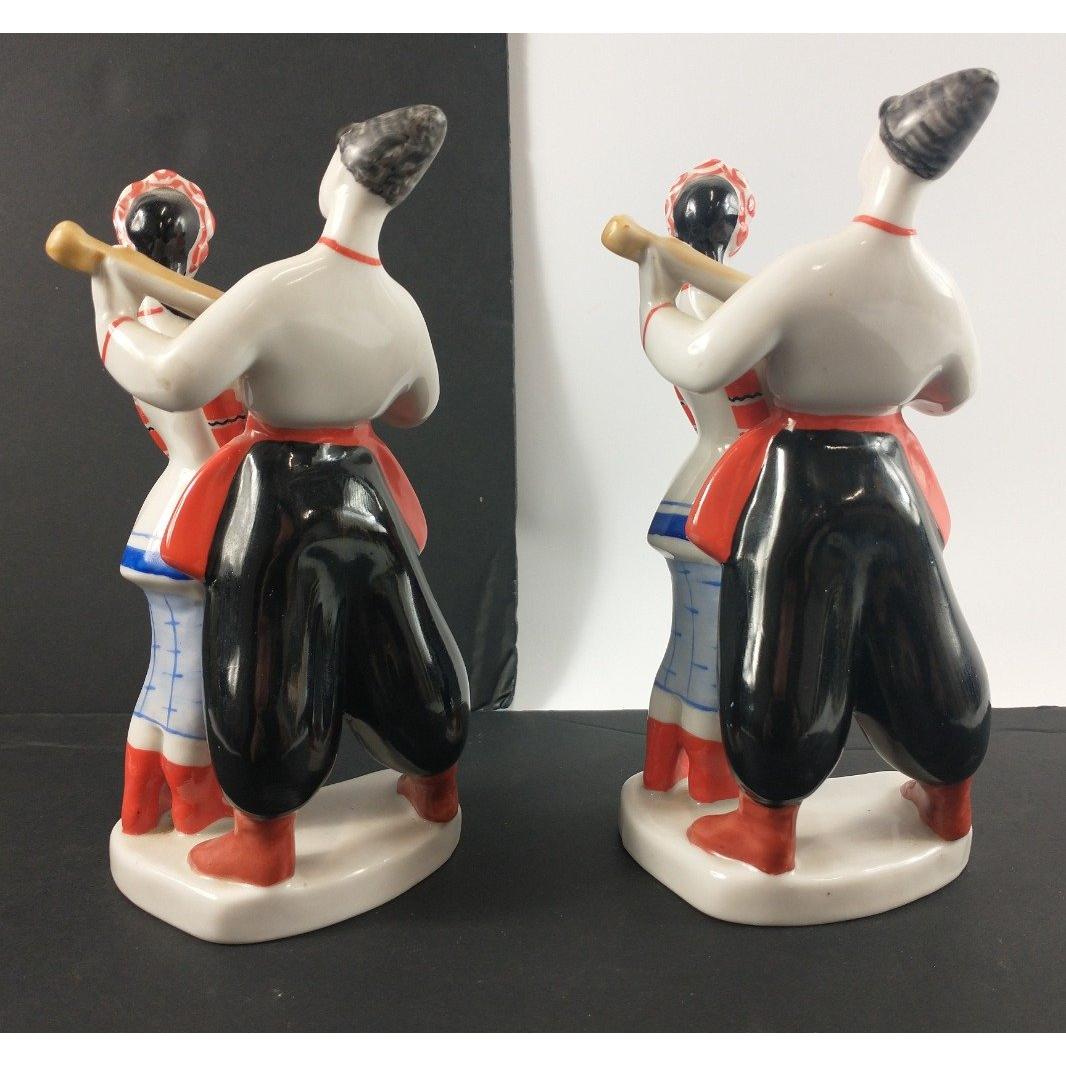 A vintage pair of USSR figurines with man playing the mandolin each stands 18cm tall