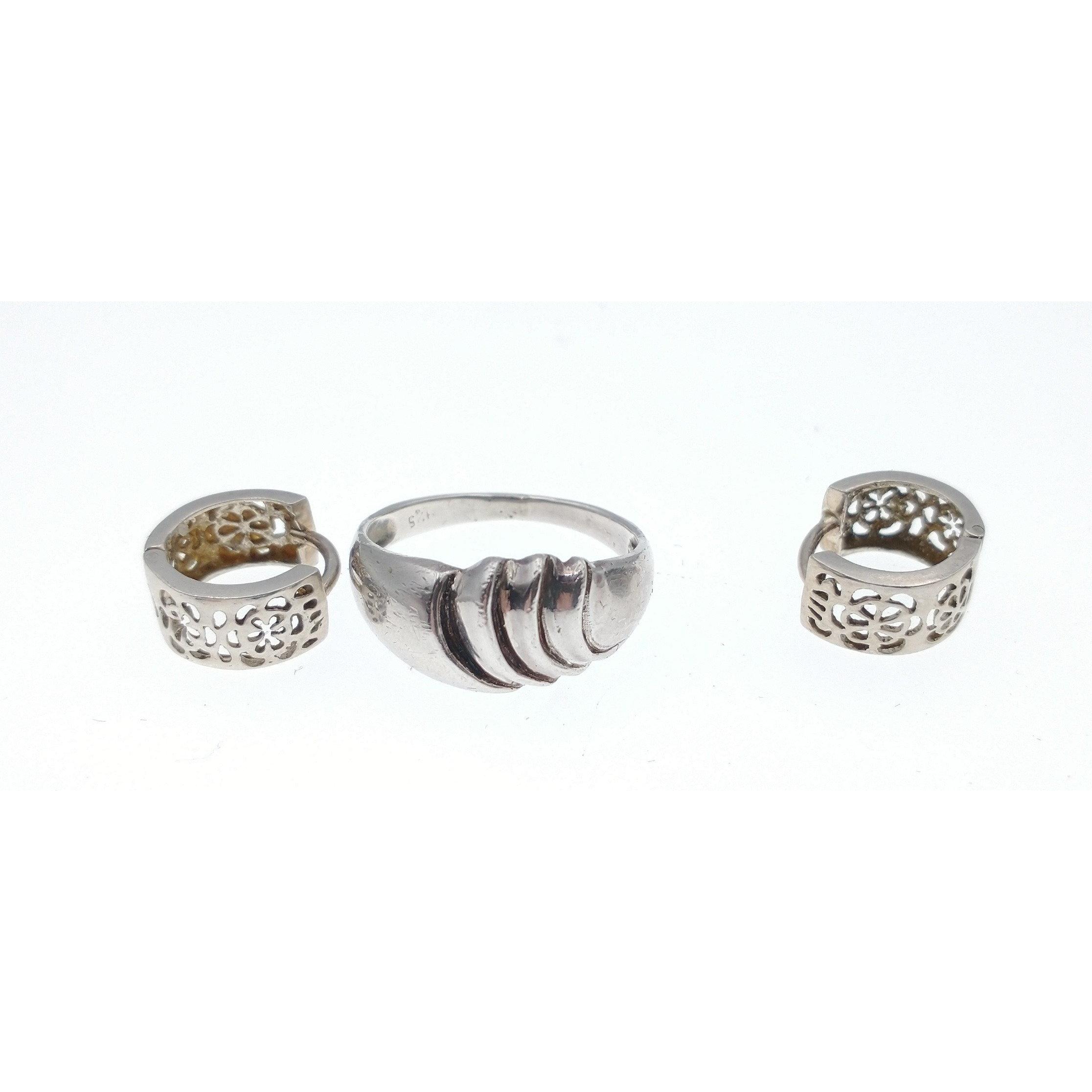 A ring stamped 925 size P/Q plus a pair of hoop earrings gross weight 5.6gApprox 1 pieces