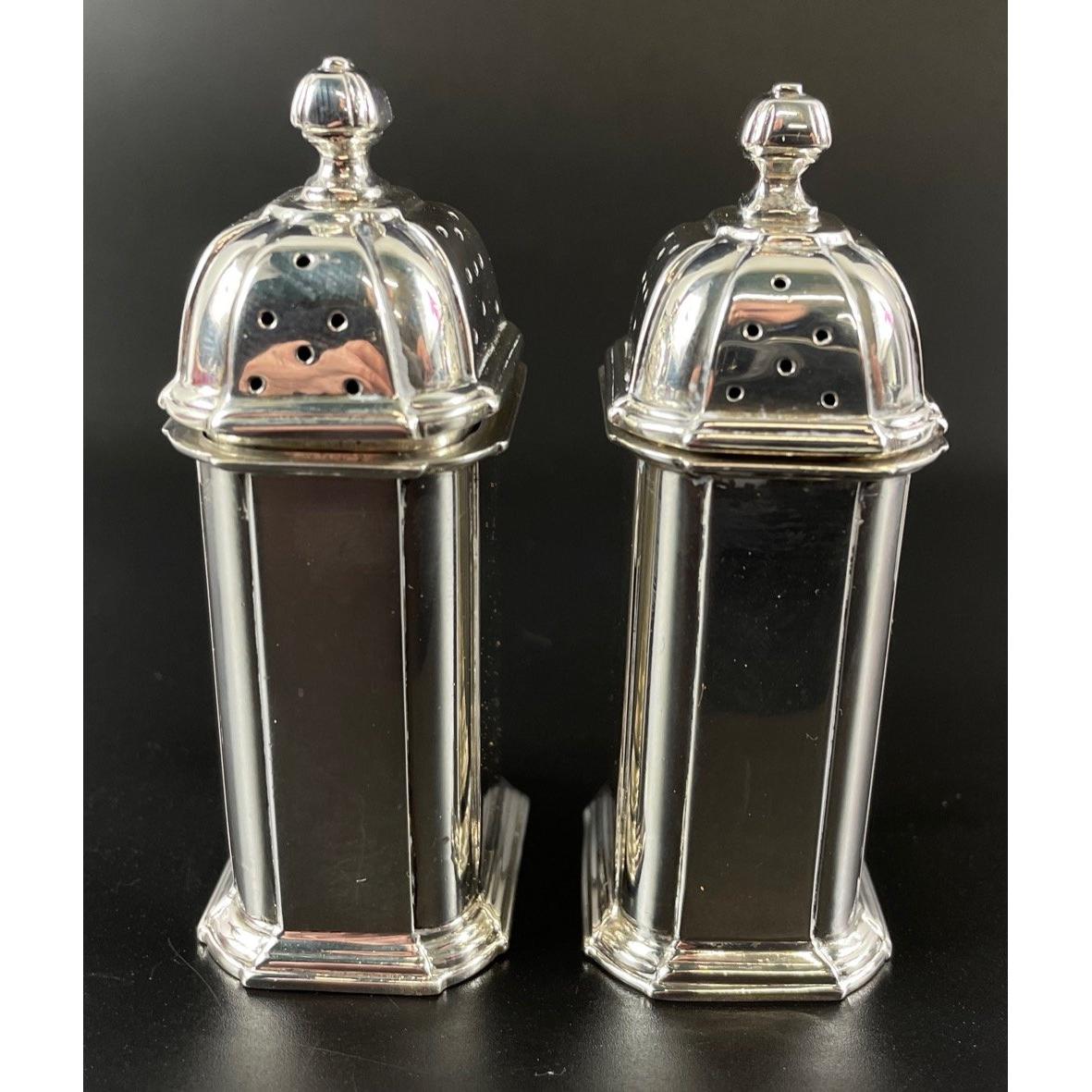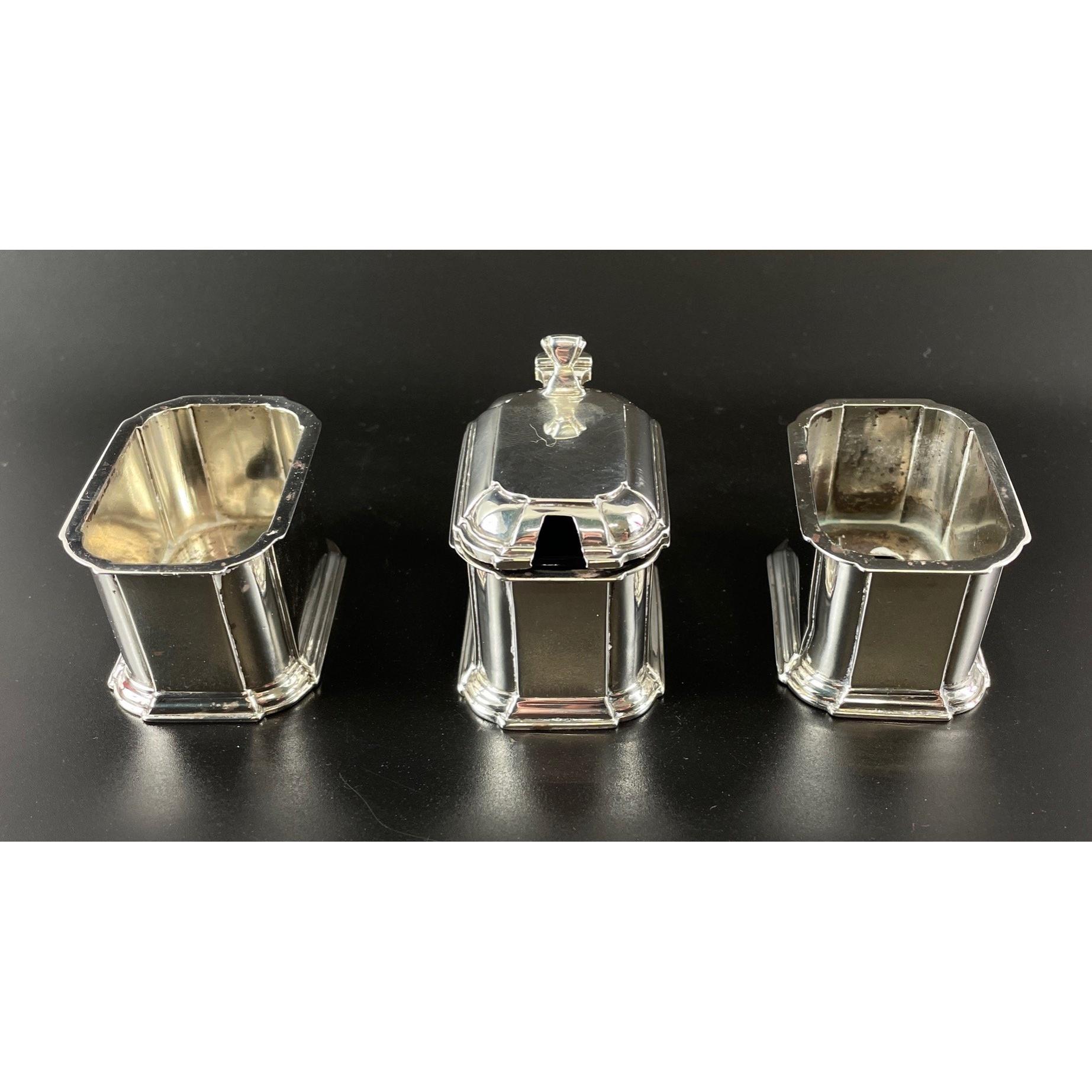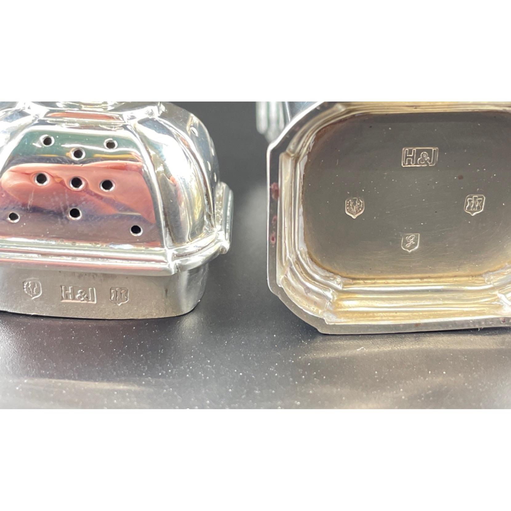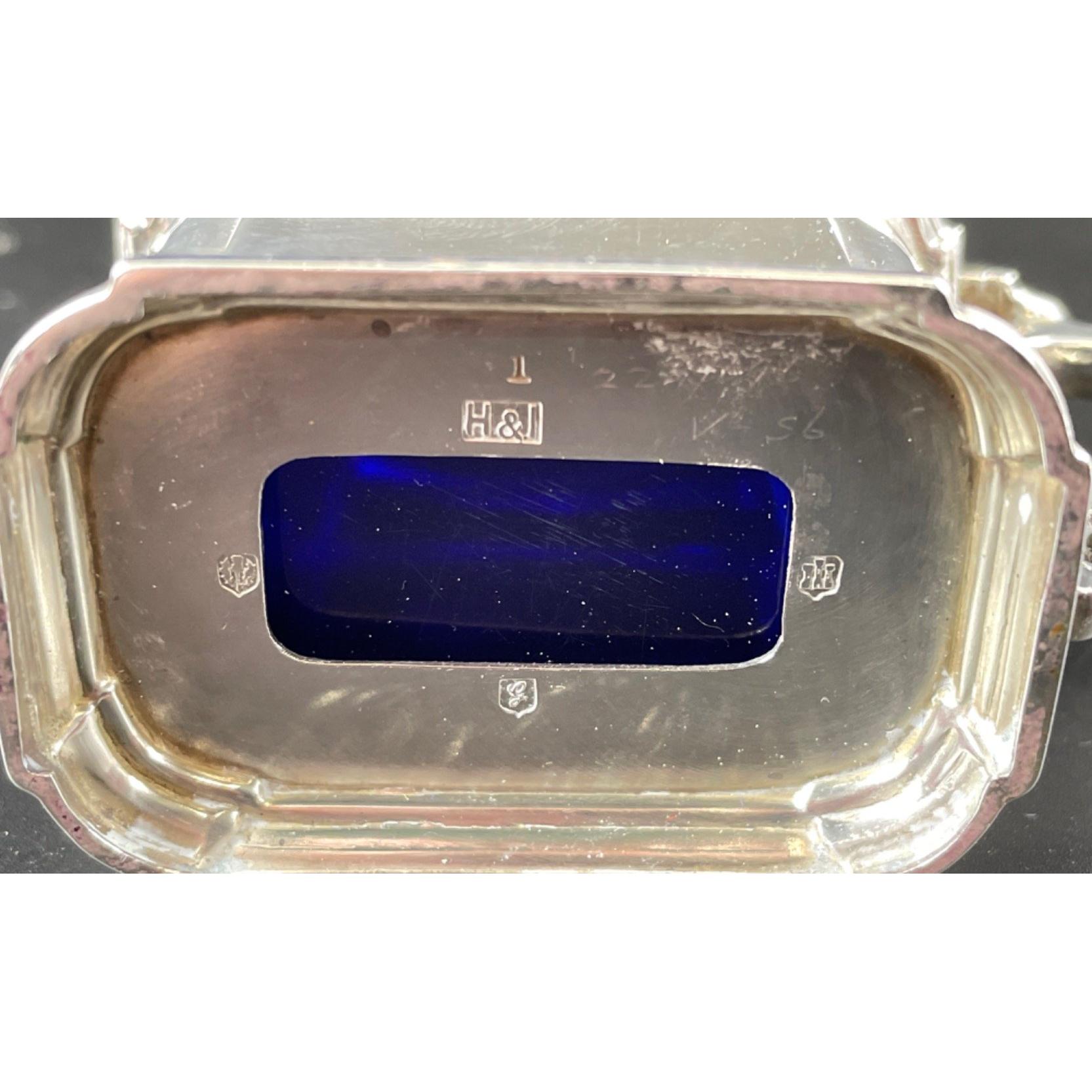 Stunning Hamilton & Inches of Edinburgh solid silver late Art Deco style Cruet set . All pieces carrying a full set of Edinburgh Hallmarks for 1937. The fitted box and contents are in superb condition. Some of the spoons are replacements, there are two blue glass liners which interchange between all four pots.