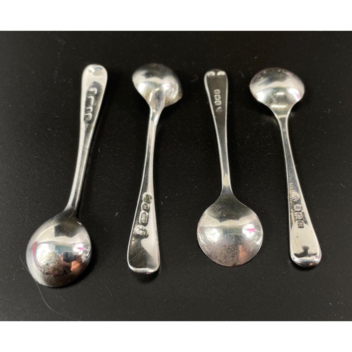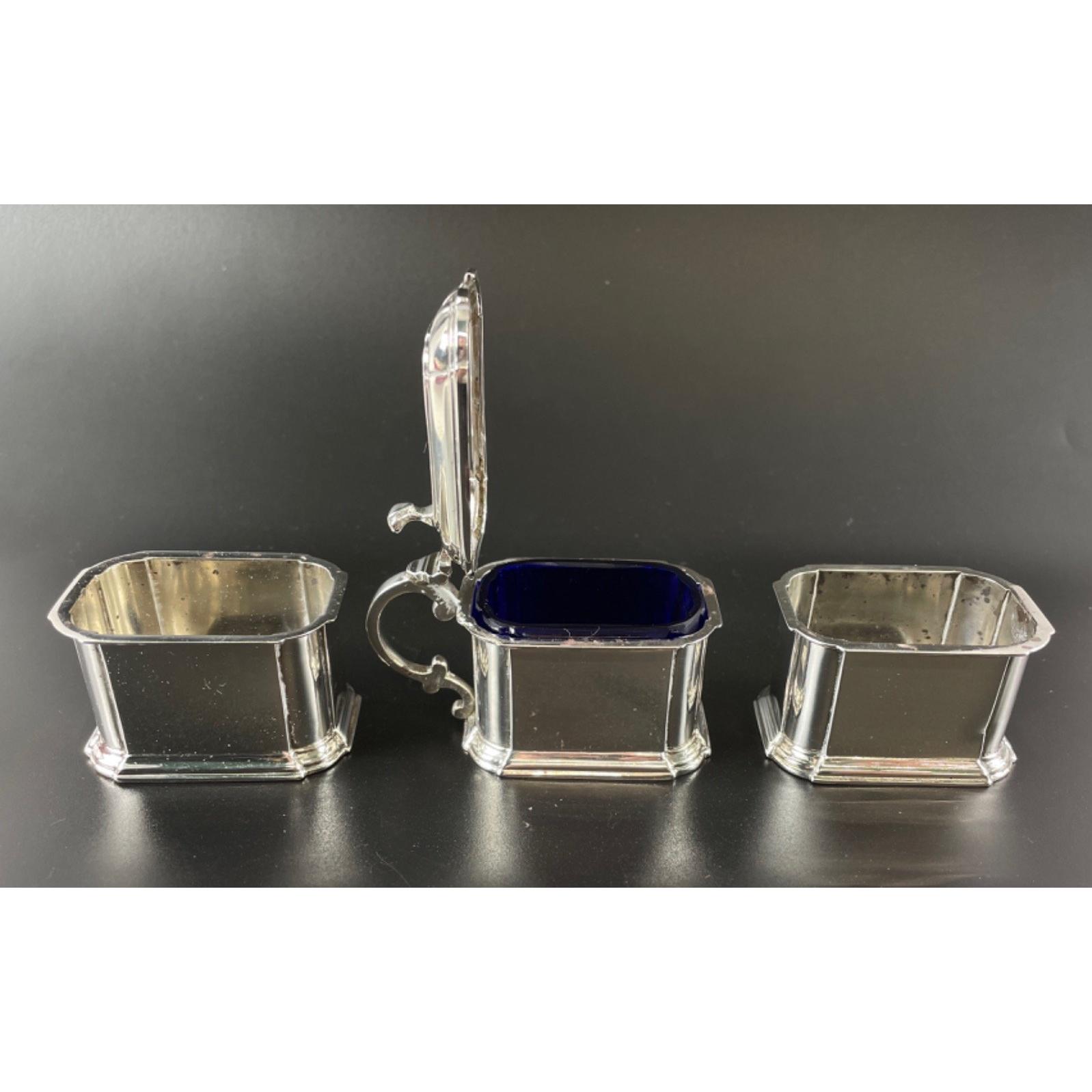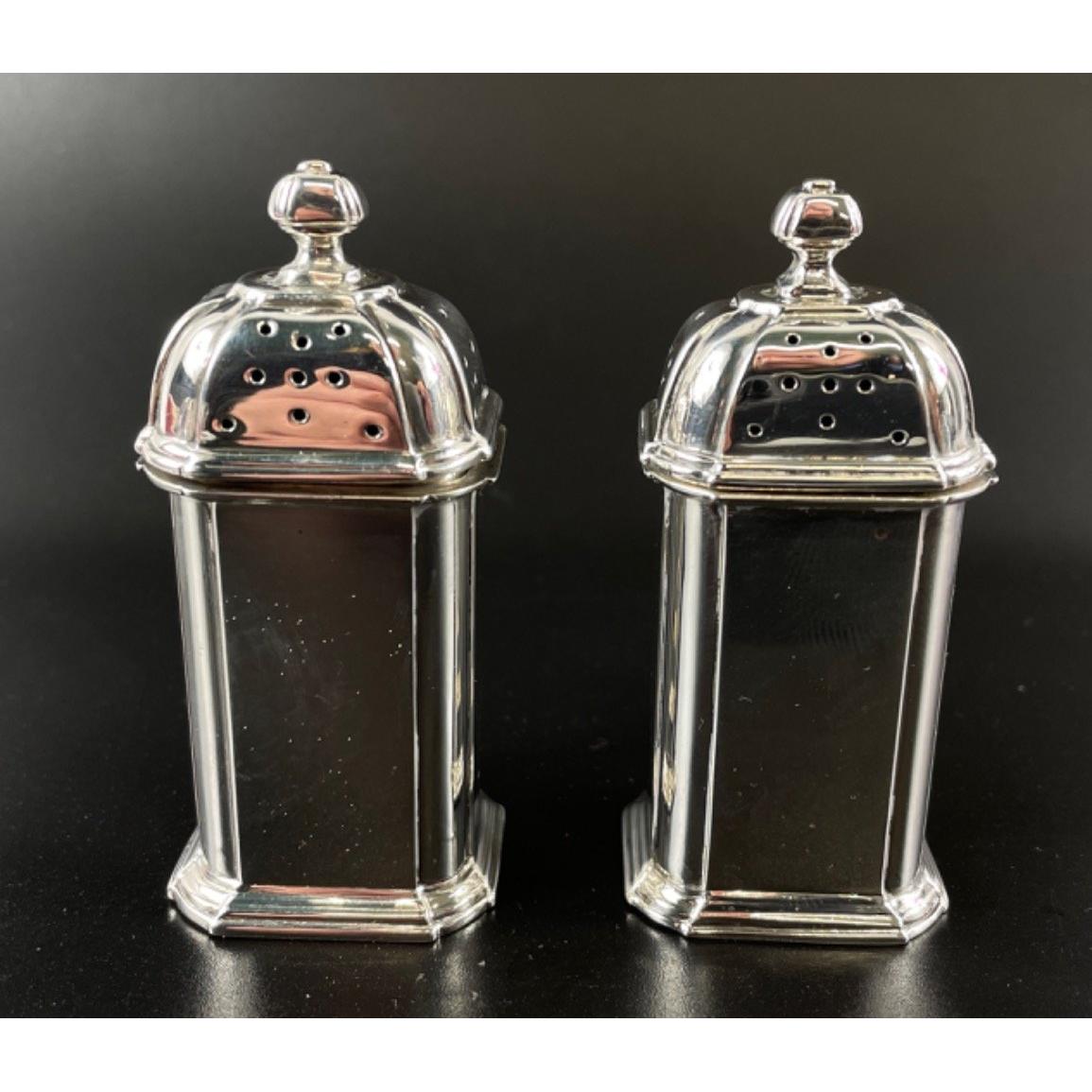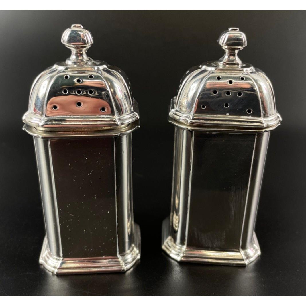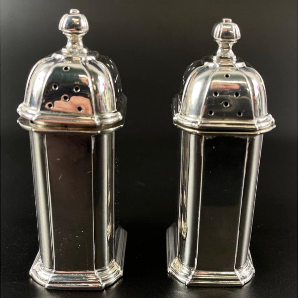 Stunning Hamilton & Inches of Edinburgh solid silver late Art Deco style Cruet set . All pieces carrying a full set of Edinburgh Hallmarks for 1937. The fitted box and contents are in superb condition. Some of the spoons are replacements, there are two blue glass liners which interchange between all four pots.