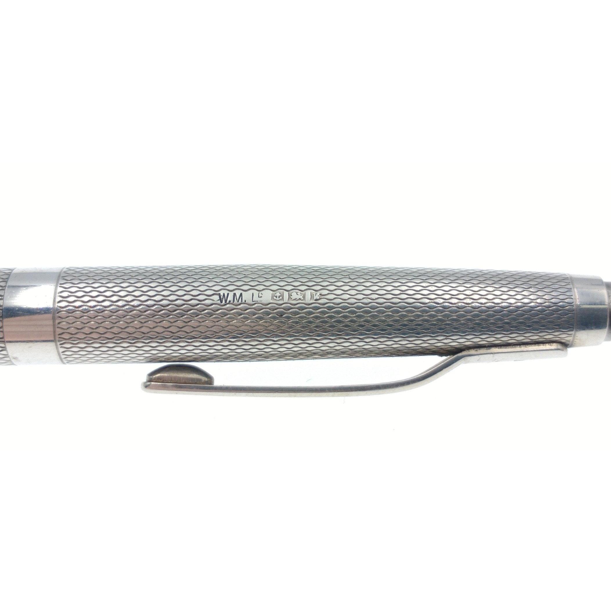 Wm.Manton of Birmingham solid Silver 0.925 Ballpoint Pen. Carries full hallmarks for 1971. Excellent condition, no dents or scratches. Cartouche is uninscribed, engine turned engraving to body.