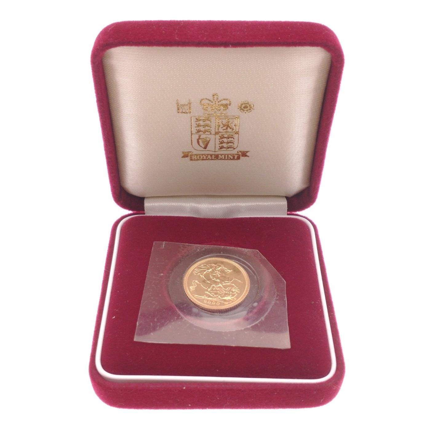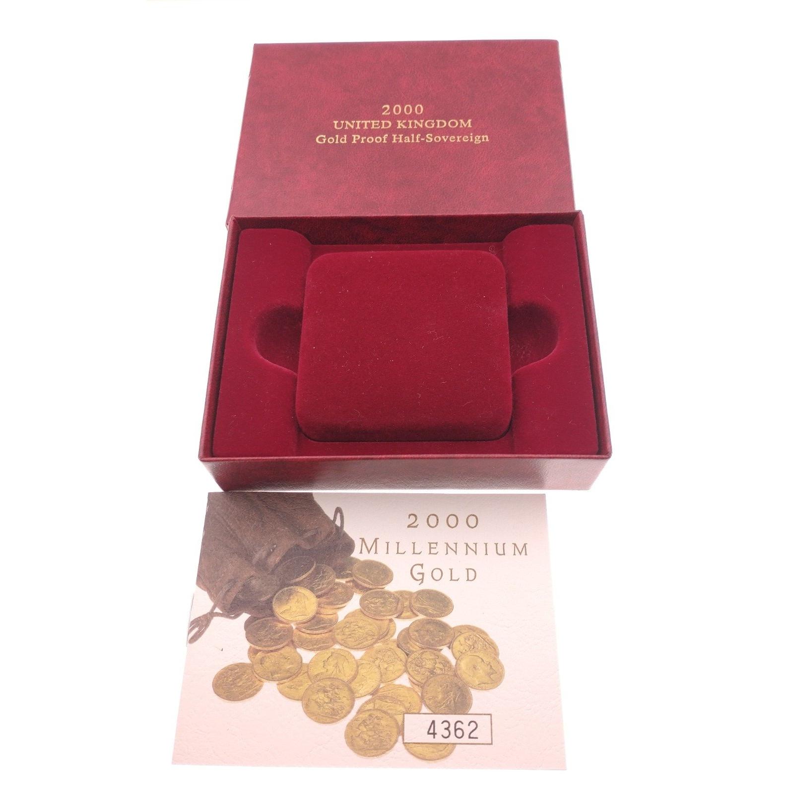 2000 UK Gold Half Sovereign in Royal Mint presentation case with certificate. Coin is still in plastic of issue,Proof condition. The Ltd. Ed. Certificate has a personalised penned inscription.