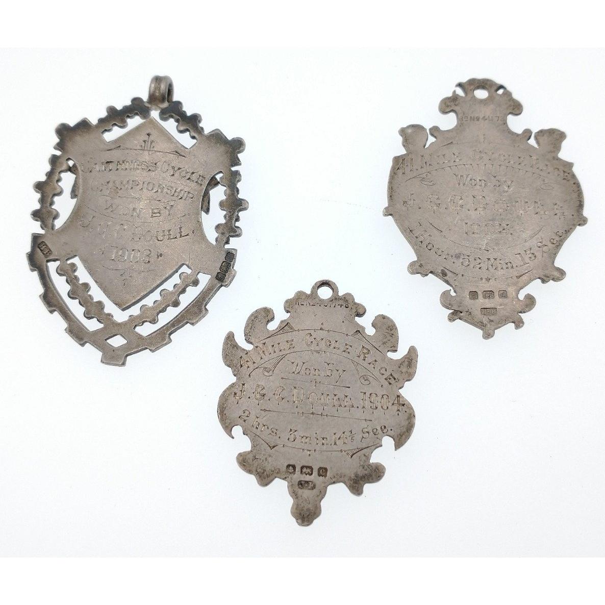 Trio of Larger Silver Medals all relating to early 1900 Bicycle races. All won by J.G.C. Doull. Includes Caithness 1903, Scottish Highland Interest. Largest is 5cm. Total weight 44.5g approx gross, all with full Hallmarks.