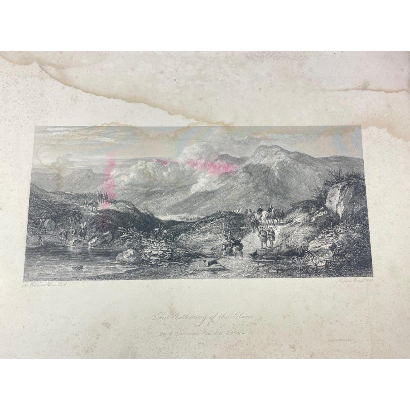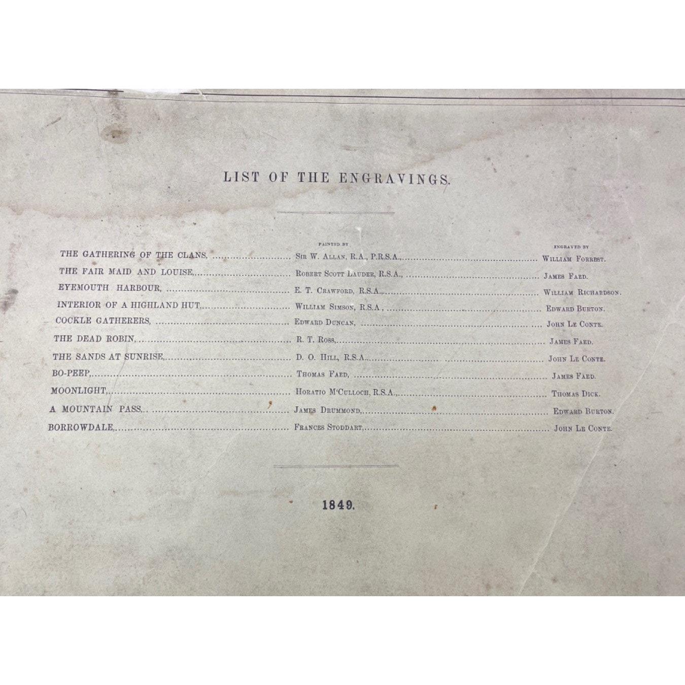 Folio of Etchings 1849. Eleven Engravings presented to the Members of The Royal Association For The Promotion Of The Fine Arts in Scotland. Complete and rare but with condition issues, edges are worn and there is staining to some