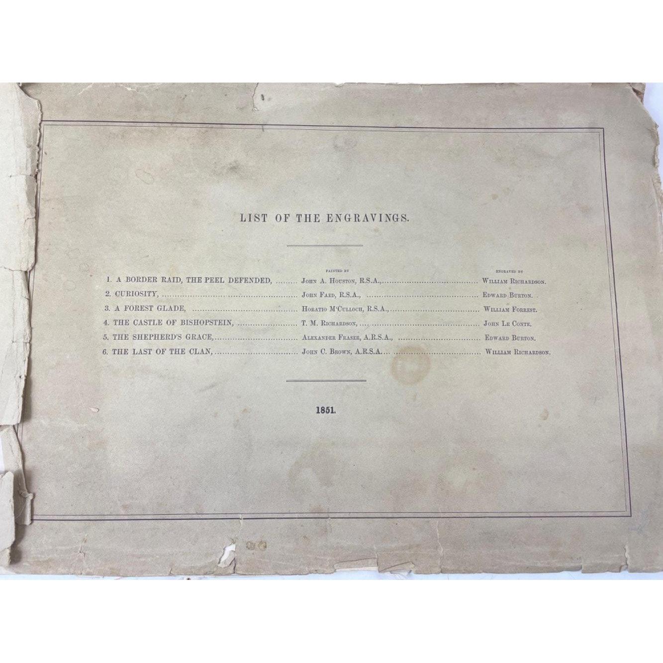 Folio of Etchings 1851. Six Engravings for the members of The Royal Association For Promotion Of The Fine Arts In Scotland. Complete and rare but with condition issues, edges are worn and there is staining to some