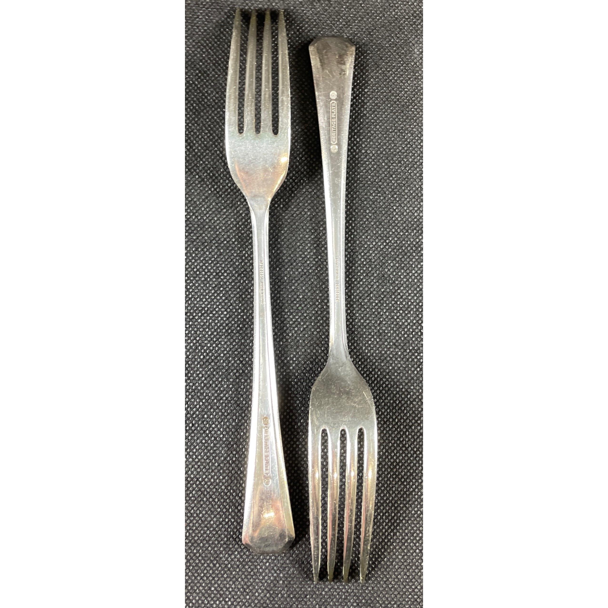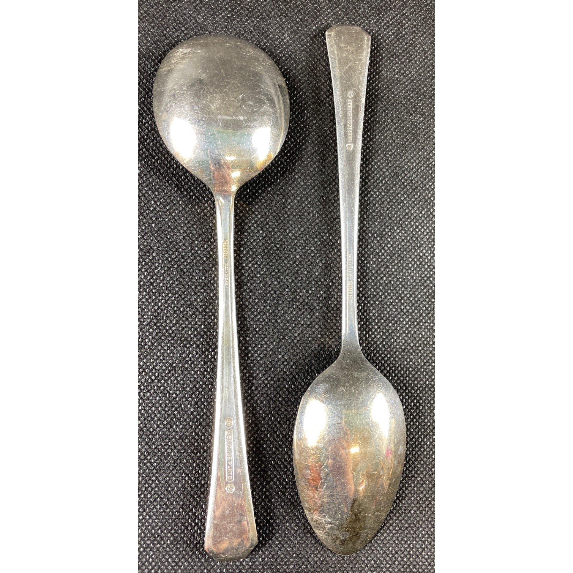 Twelve each of HERITAGE PLATE hotel quality soup spoons (18cm), forks (20cm), spoons (18.5cm), plus 6 McPHERSON BROS knives (22cm), 6 ARDEN PLATE dessert forks (12cm), and 6 WINDERMERE coffee spoons (11cm)