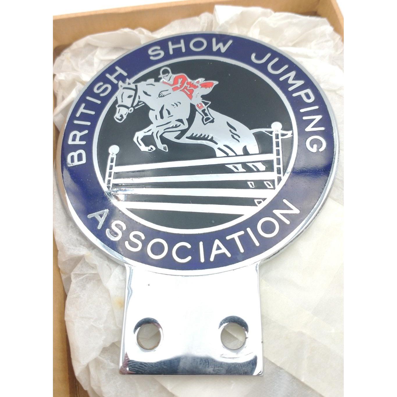 Two car badges - an AA badge (no 4C08285) (11cm) and a British Show Jumping Association badge (8cm) with fasteningsApprox 2 pieces