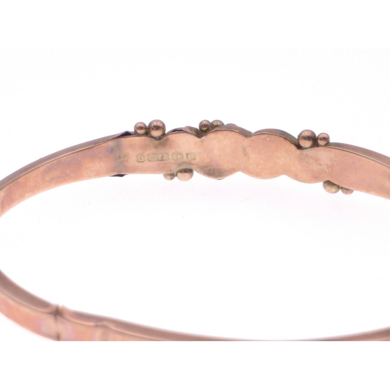 A VICTORIAN snap-shut 375 Birmingham Hallmarked bangle - bangle is cracked and will require repair if to be worn - weight 5.30g approx and 6.5cm diameter Approx 1 pieces