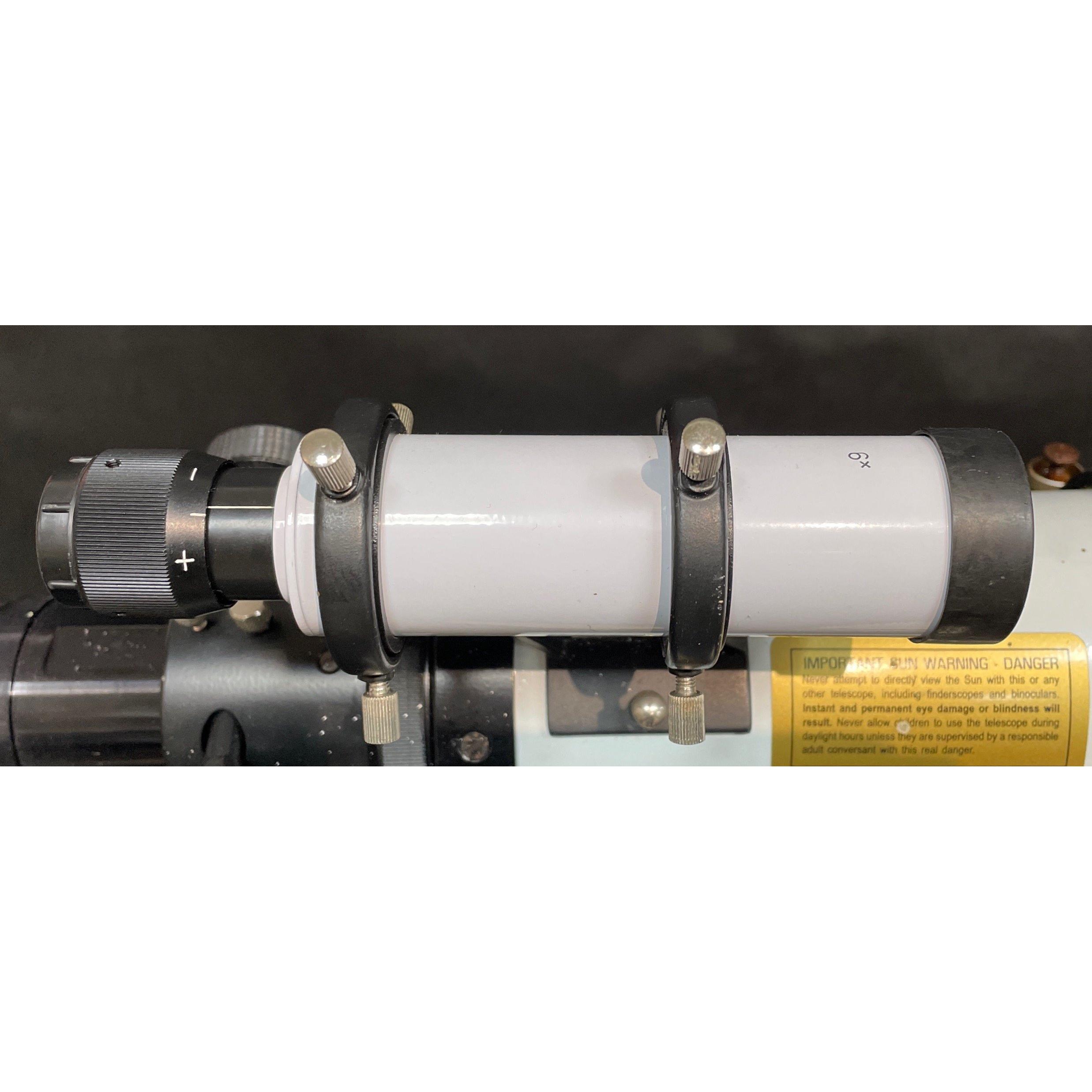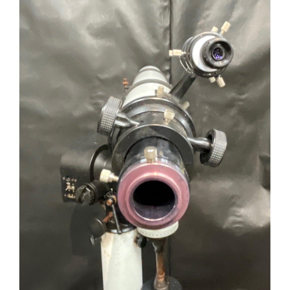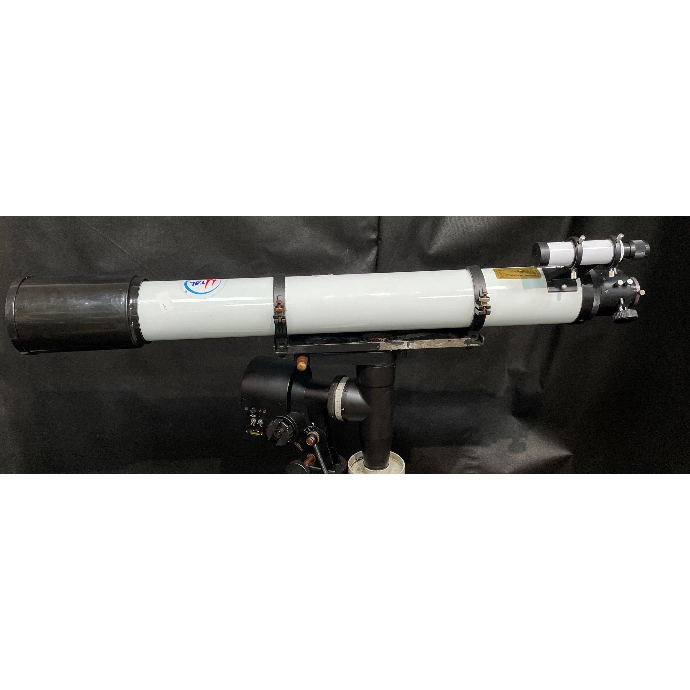 TAL Refractor Telescope (model TAL 100RS) complete with rigid tubular mount, optical tube with shade extension appx 11cmD x 1080cmL 780mm H (lowered) with balance weights, eyepiece & finder scope, 2 solar screen fins