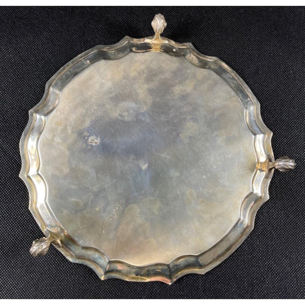 A nice circular SILVER Hallmarked Birmingham scalloped edged tray on three raised feet - dimensions 20.5cm diameter x height 3cm , the tray surface has some light surface scratches - overall weight 217g approx