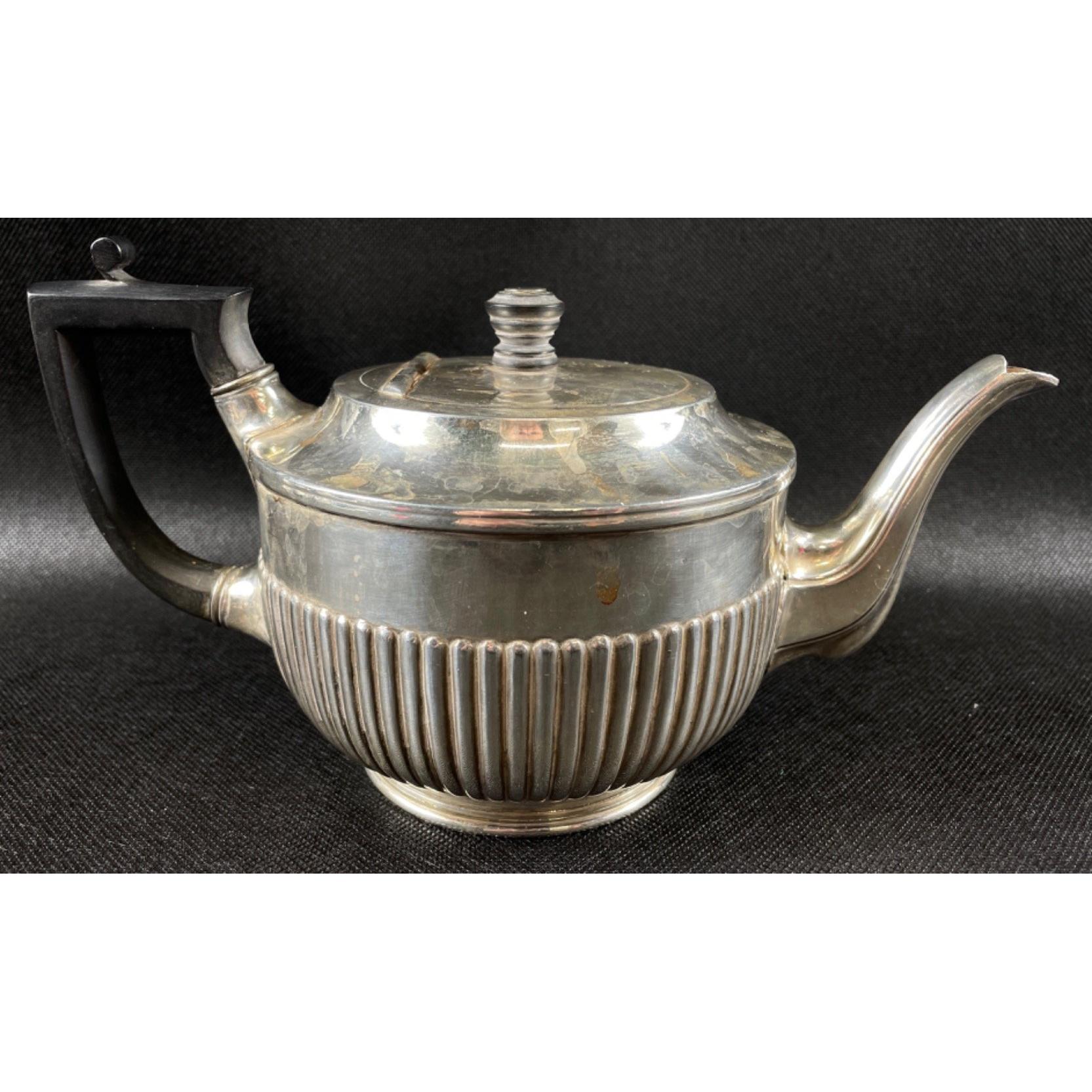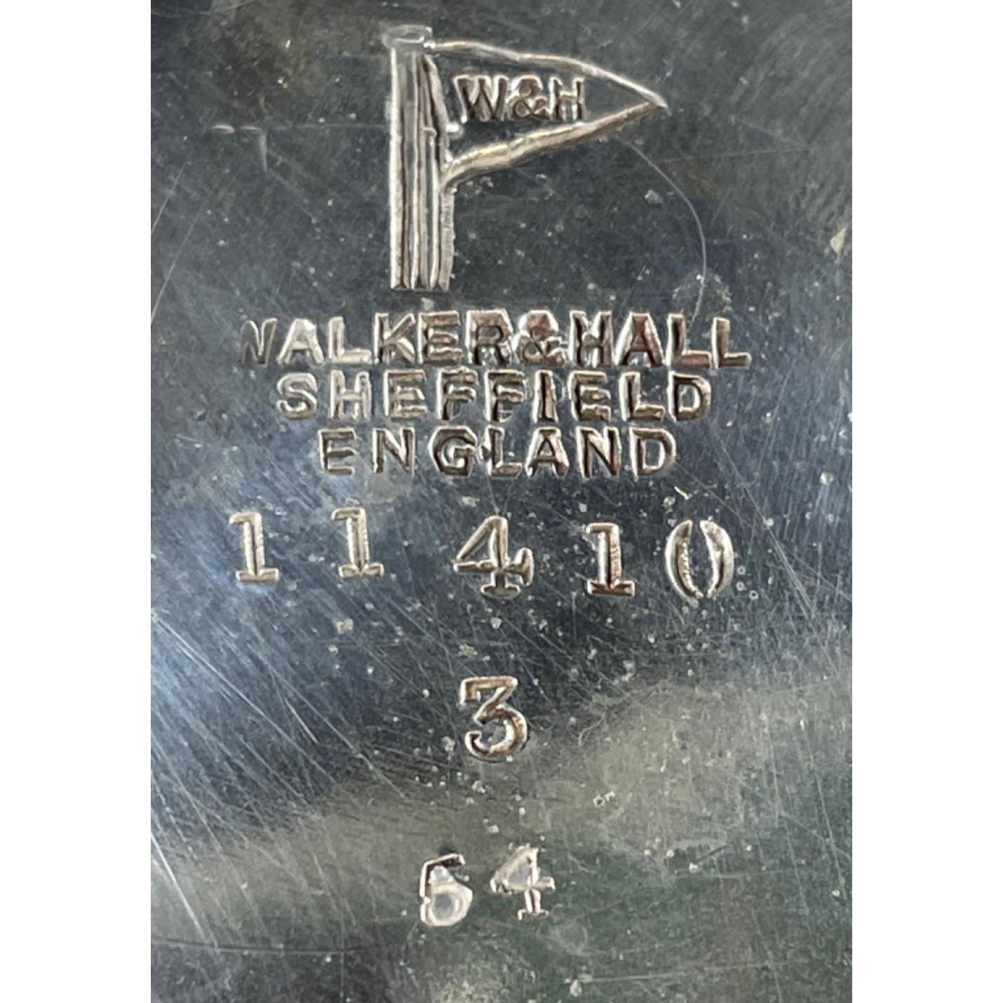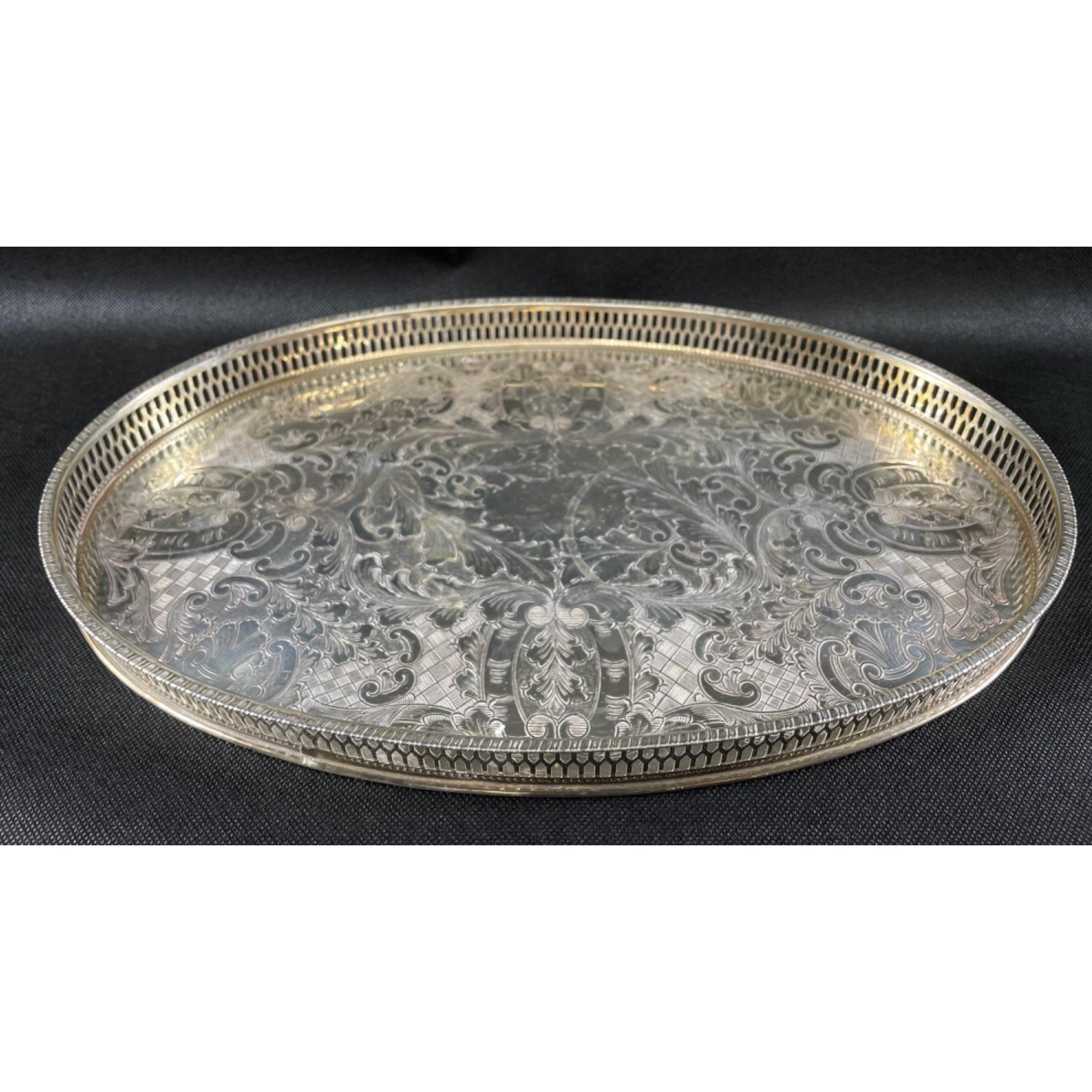 A small WALKER AND HALL vintage teapot, sugar and cream set, teapot stamped 11410 with a VINERS stamped Chased white metal pierced galleried oval serving drinks tray dimensions 38cm x 24cm approx