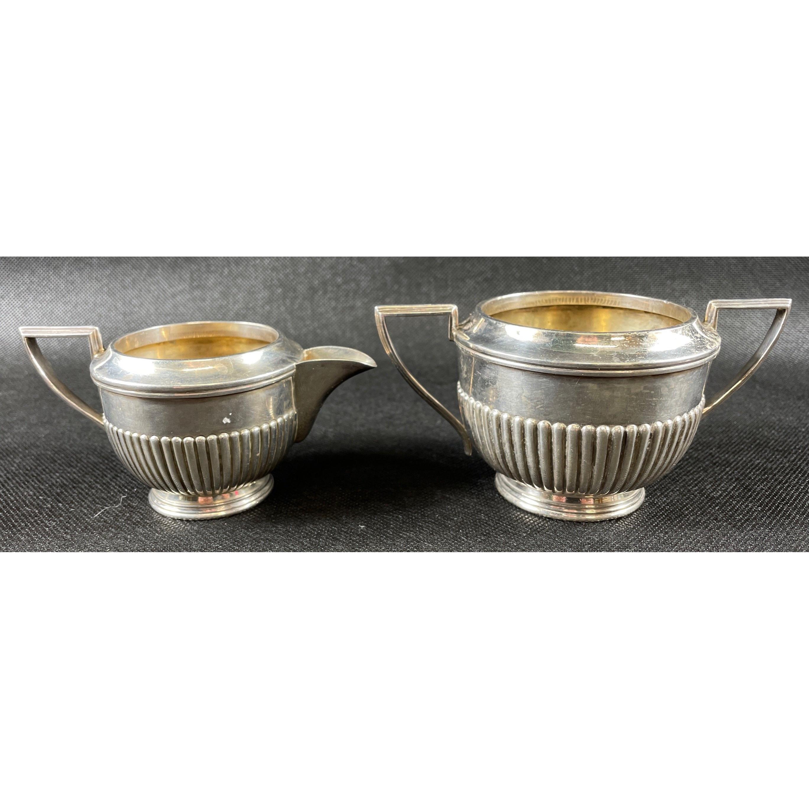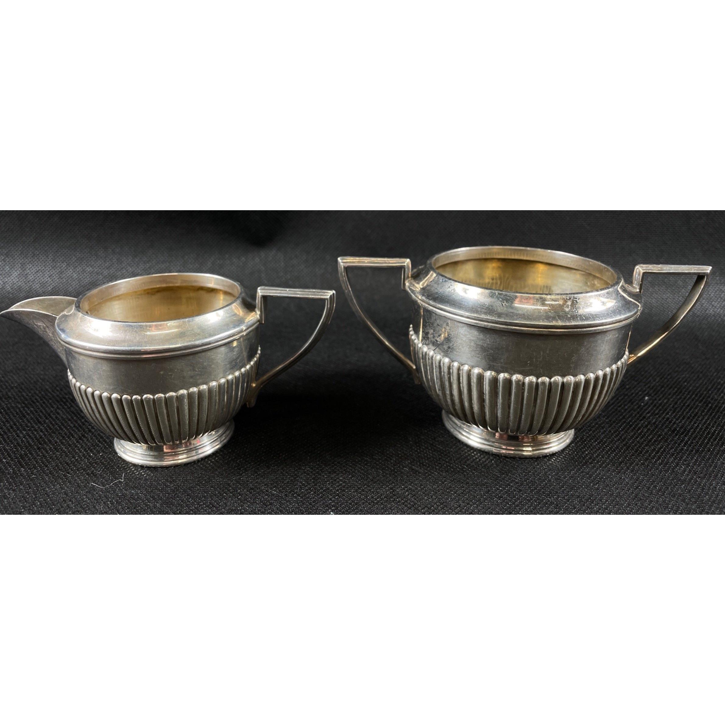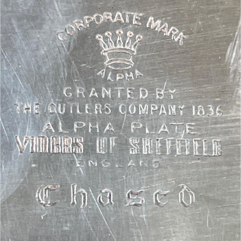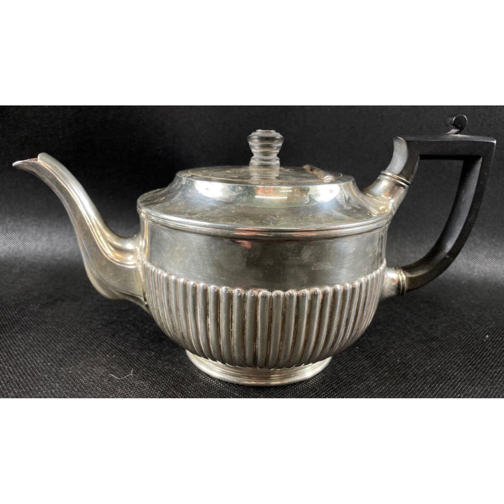 A small WALKER AND HALL vintage teapot, sugar and cream set, teapot stamped 11410 with a VINERS stamped Chased white metal pierced galleried oval serving drinks tray dimensions 38cm x 24cm approx