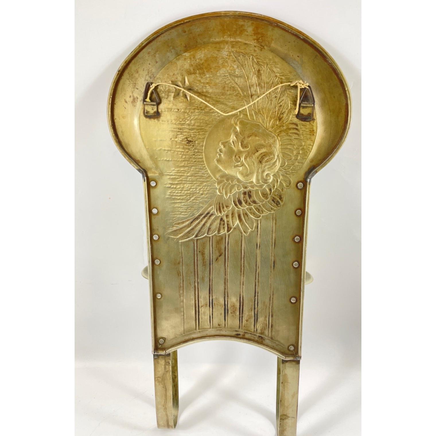 UNUSUAL ! A c1930's ARTS AND CRAFTS inspired pewter-style finish candle wall holder, (complete with two green candles) maker's stamp a capital M within a capital G, the pattern is an angel with wings looking up to a star above - dimensions 60cm tall x 21cm width approx