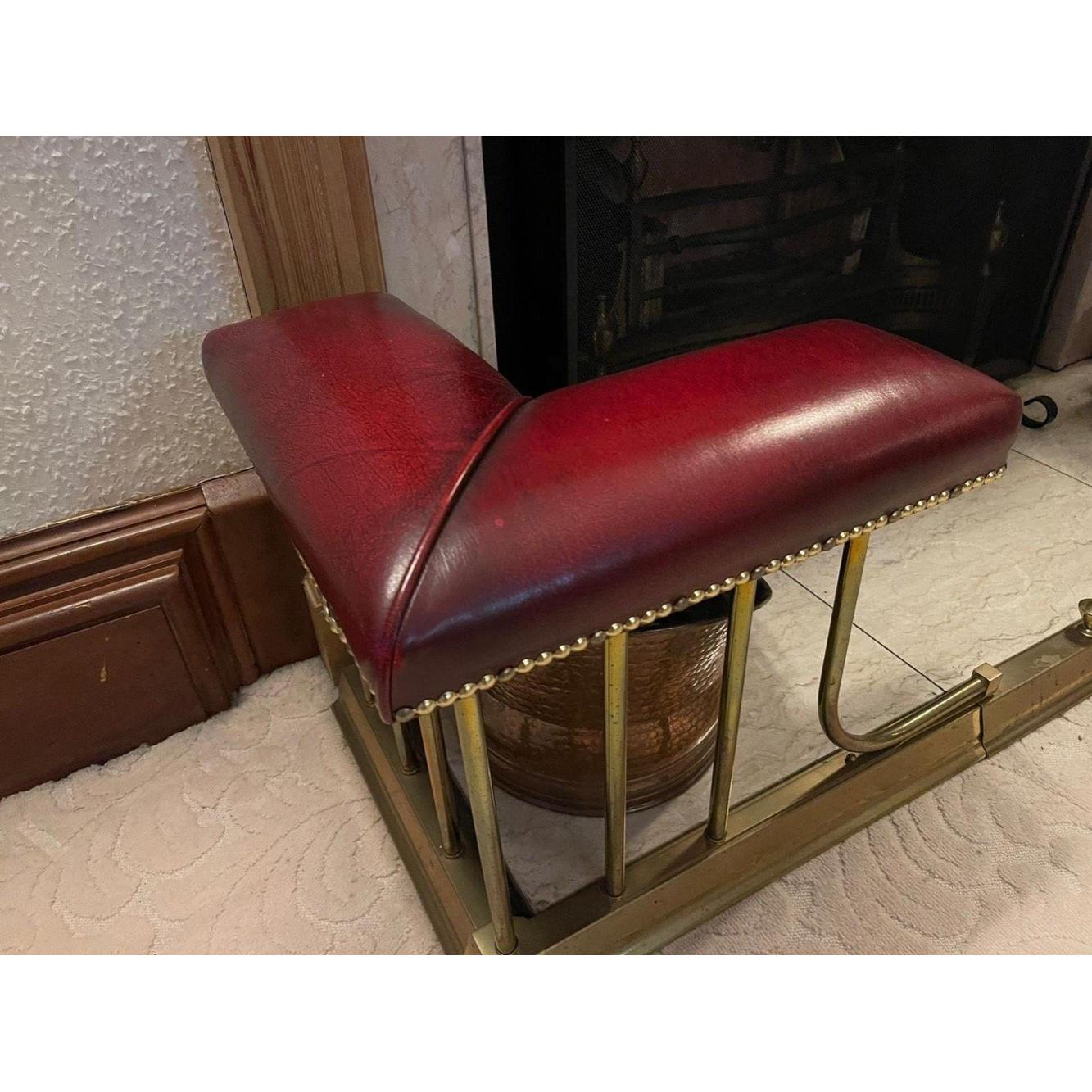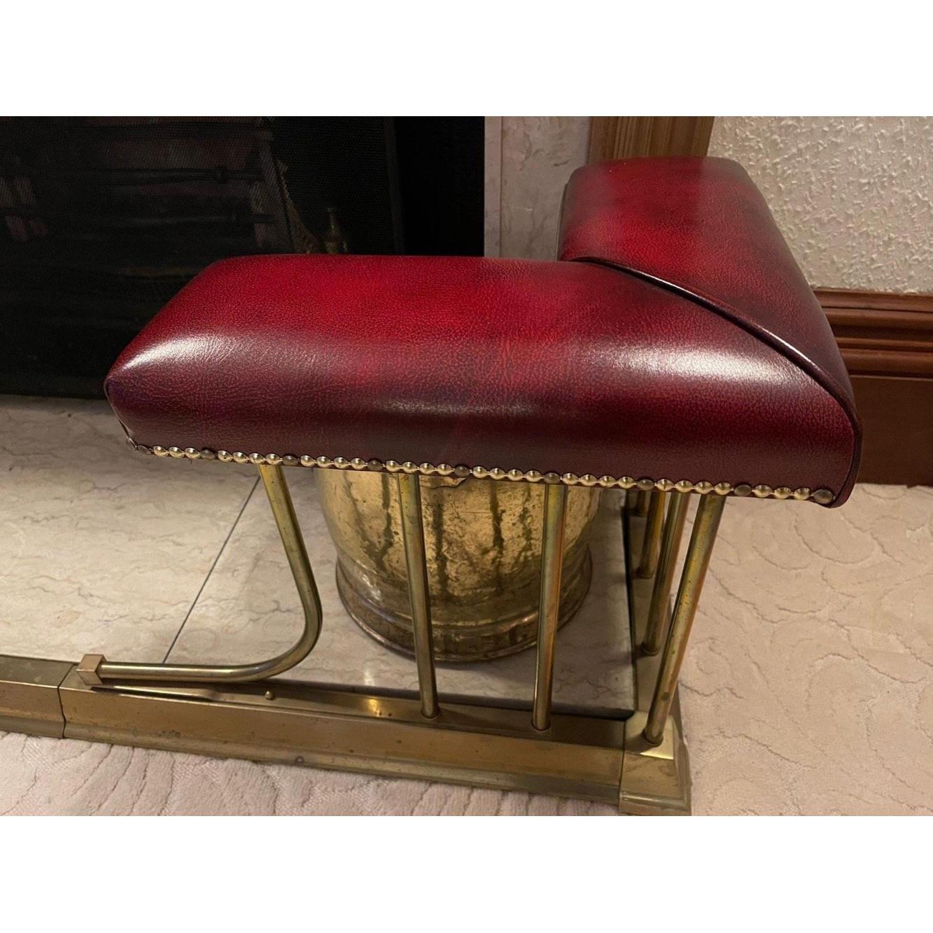 A SUBSTANTIAL EDWARDIAN inspired extendable brass and red leather padded and studded fire fender - dimensions when extended 145cm length x 45cm height x 40cm depthApprox 1 pieces