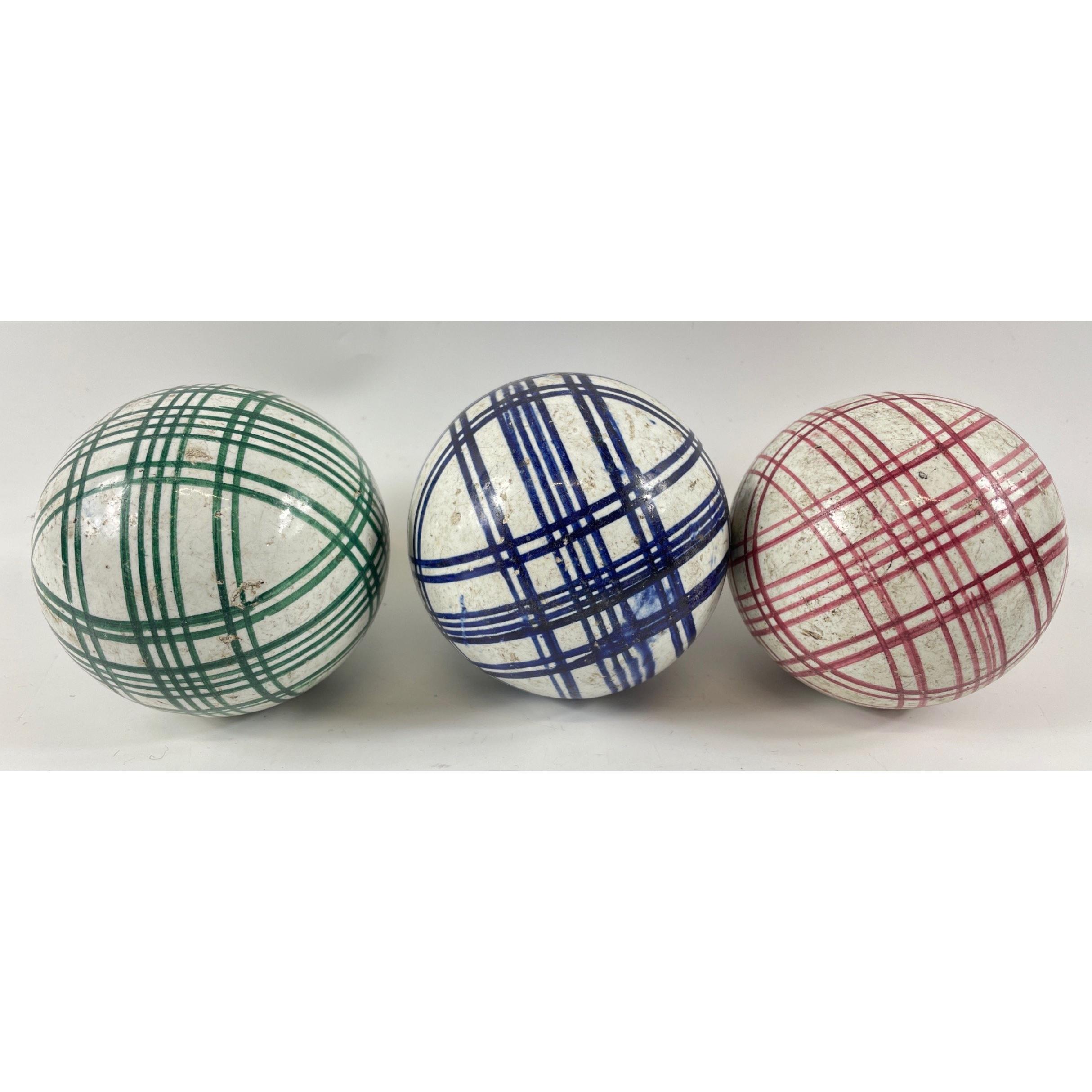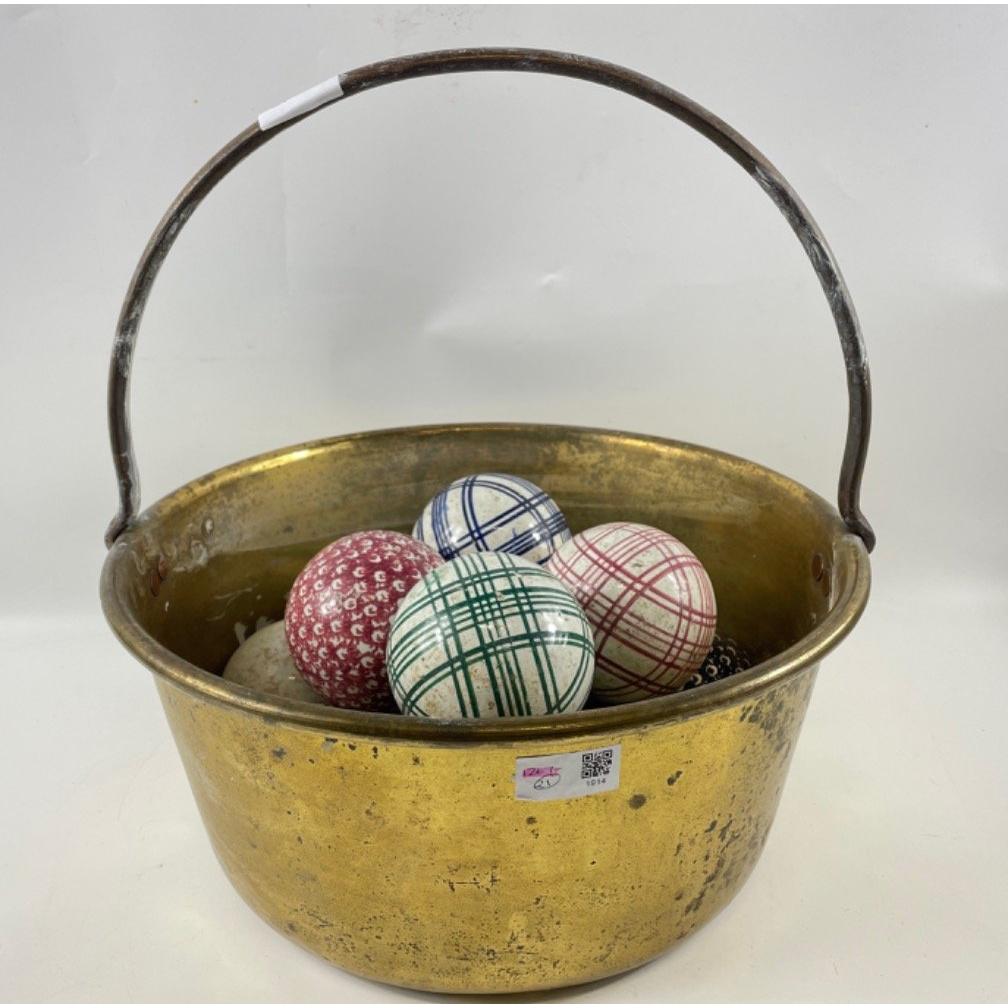 From a traditional Scottish home where in days of yore a set of indoor bowls was kept by the front door, this set of 12 bowls in a used condition, believed to be early WEMYSS, comes within its own substantial brass jelly pan which until recently had stood by a front door for several generations
