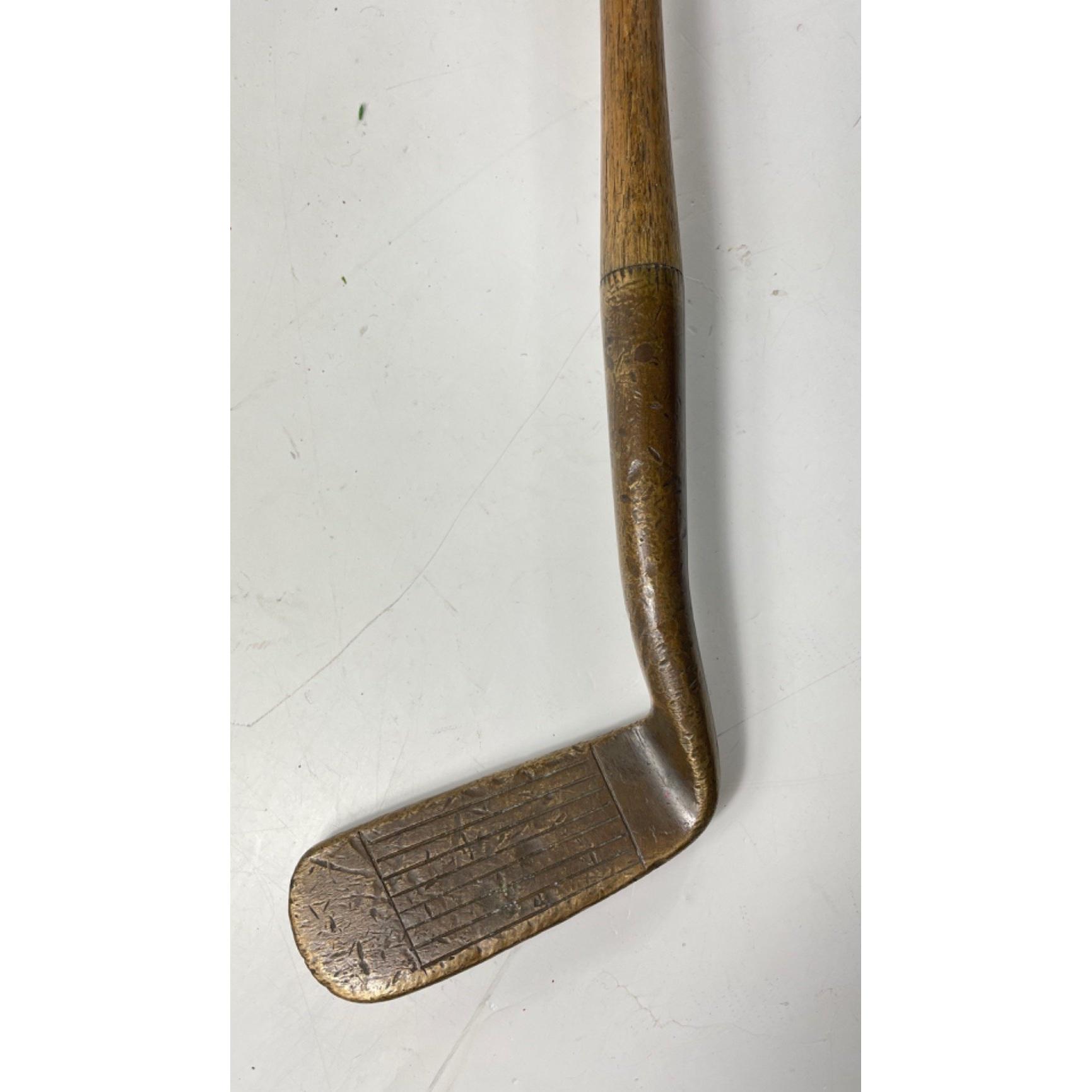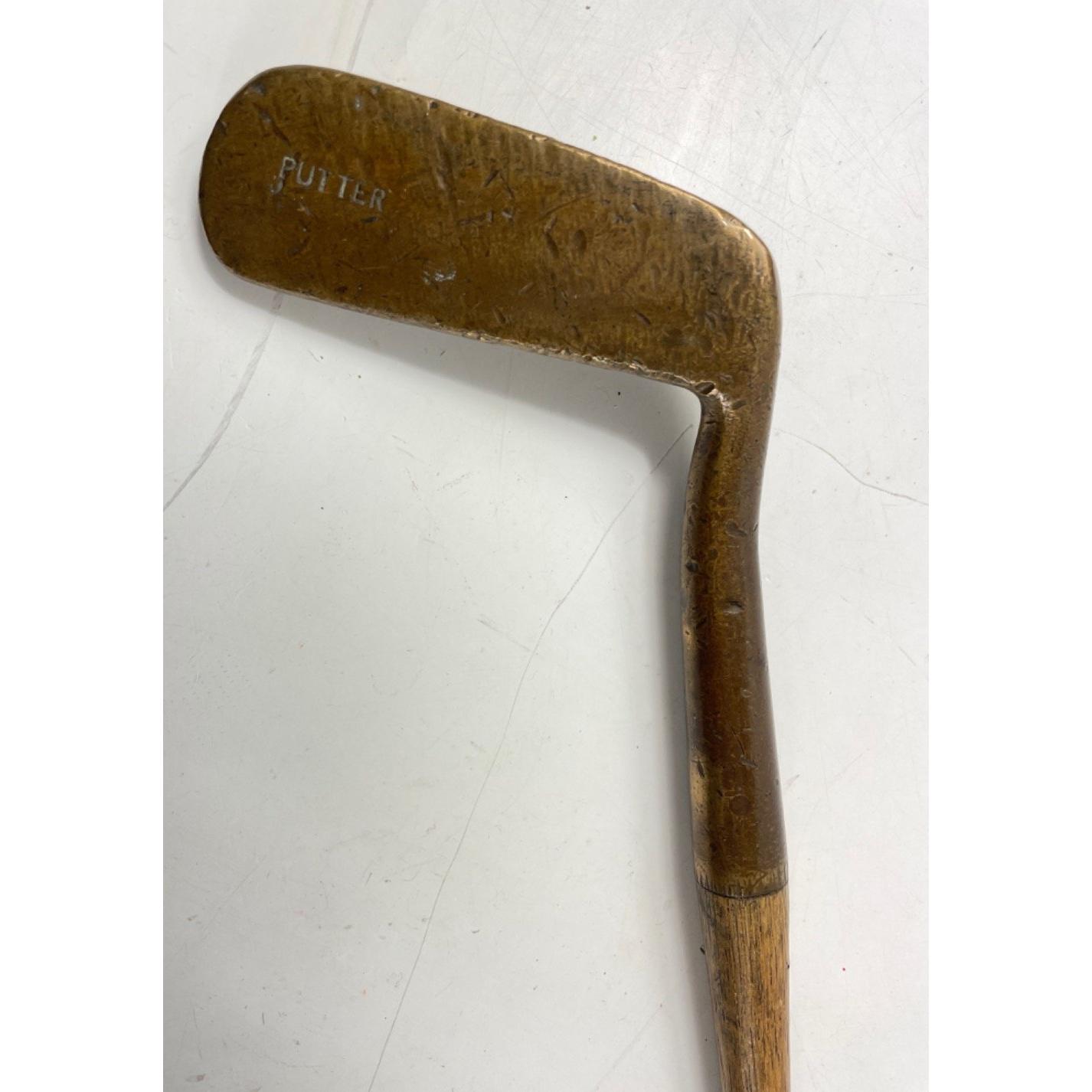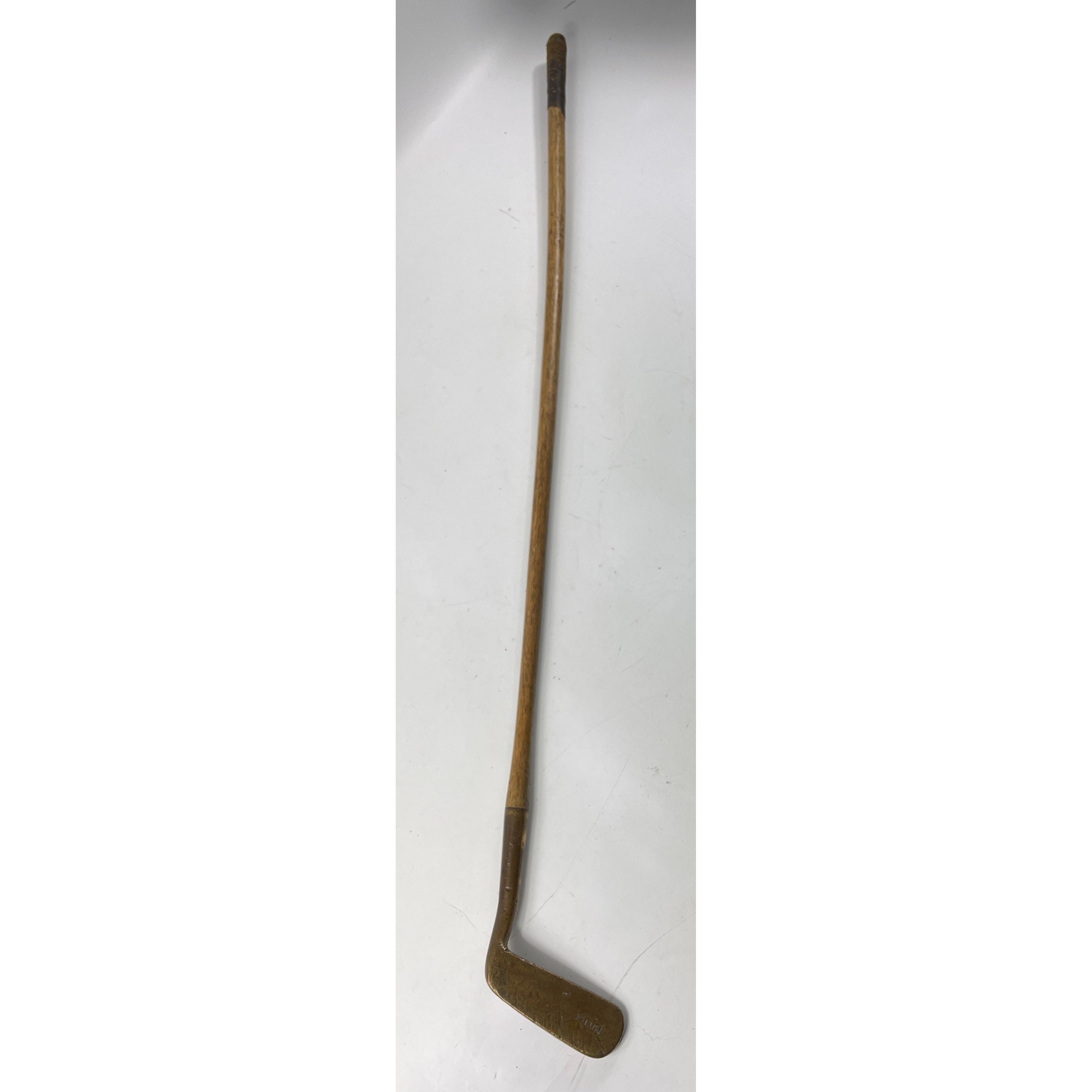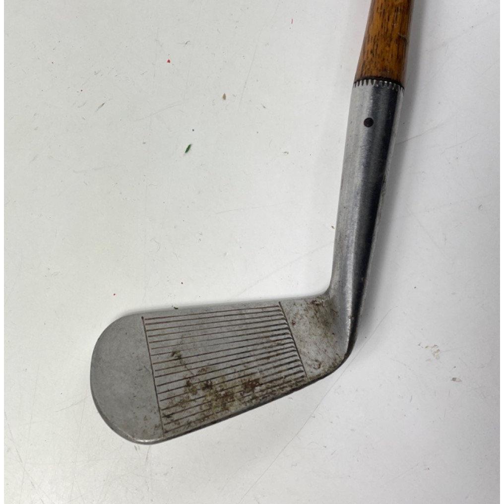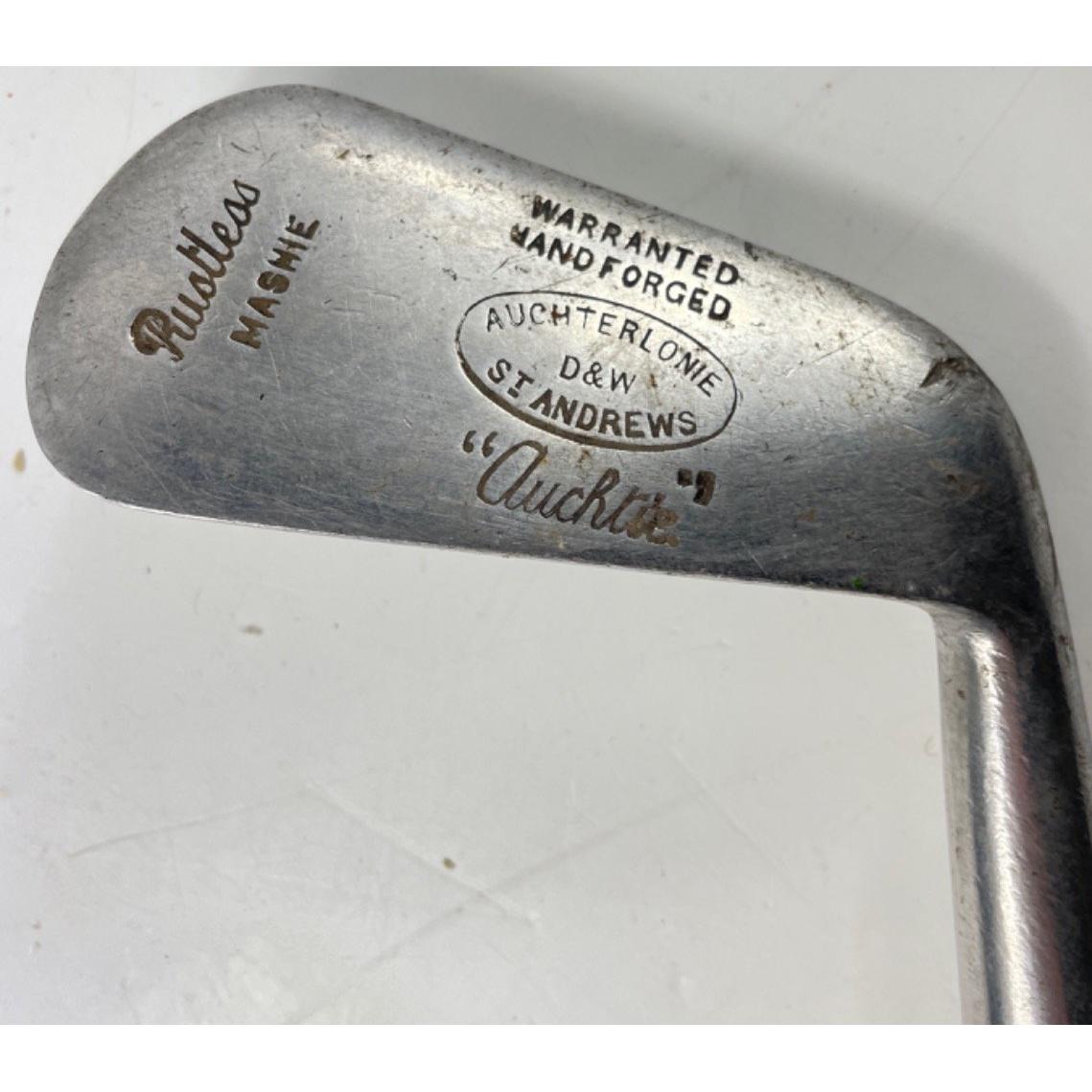 COLLECTABLE CLUBS! A vintage AUCHTERLONIE of ST ANDREWS " AUCHTIE" MASHIE with hickory shaft, a THORNTON & CO ladies putter with hickory shaft, a MAXWELL IRON club with hickory shaft and a brass putter with hickory shaft