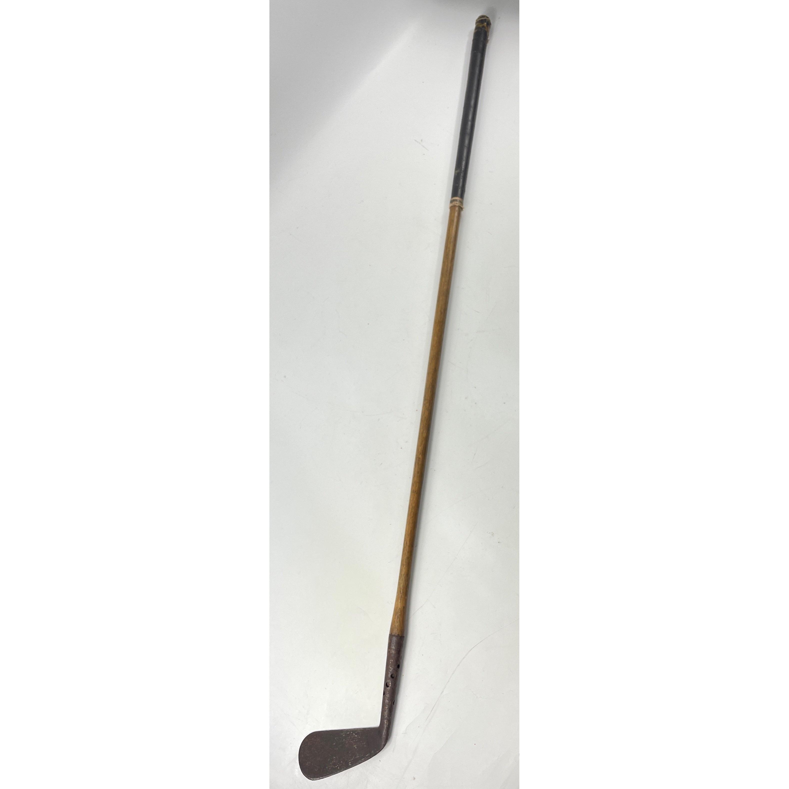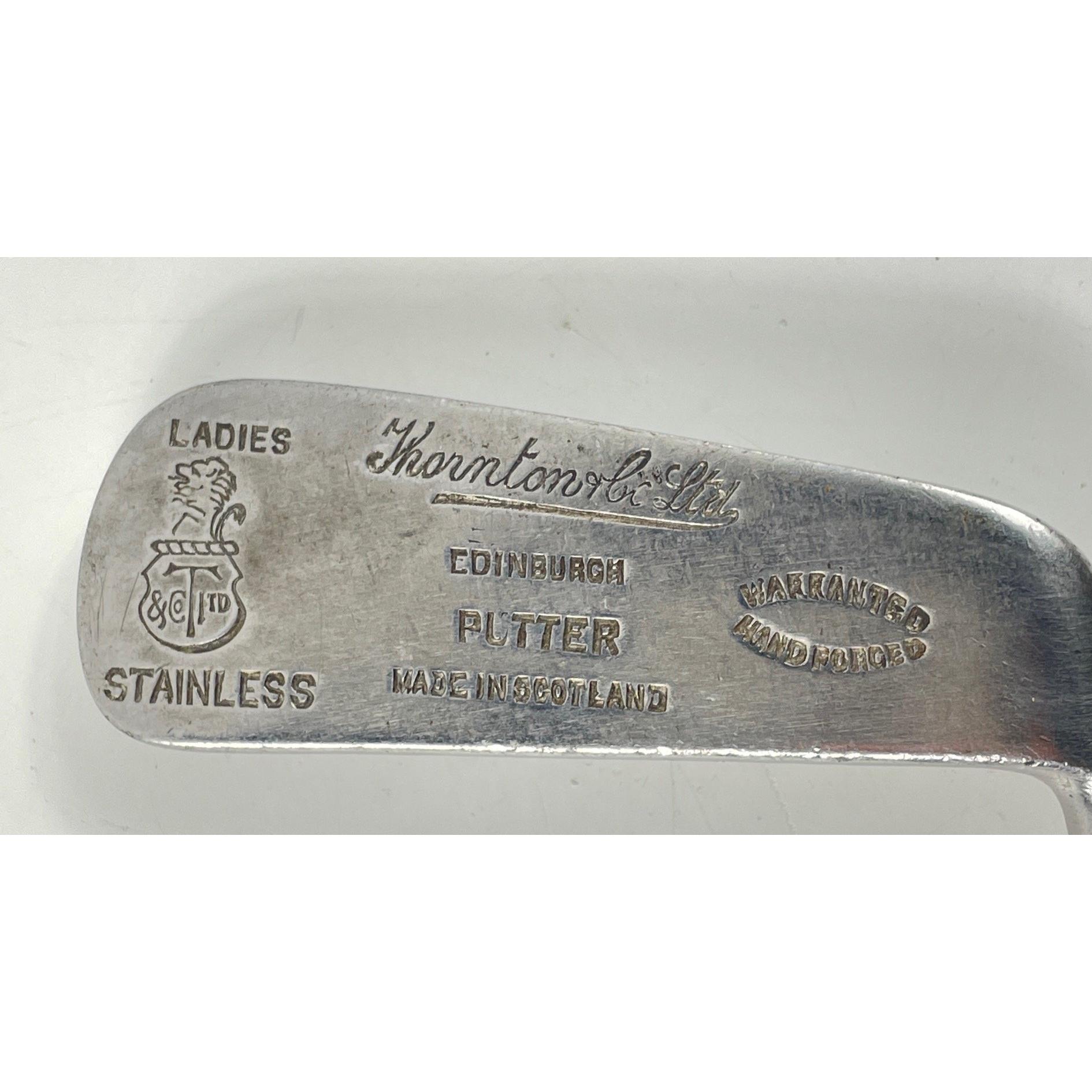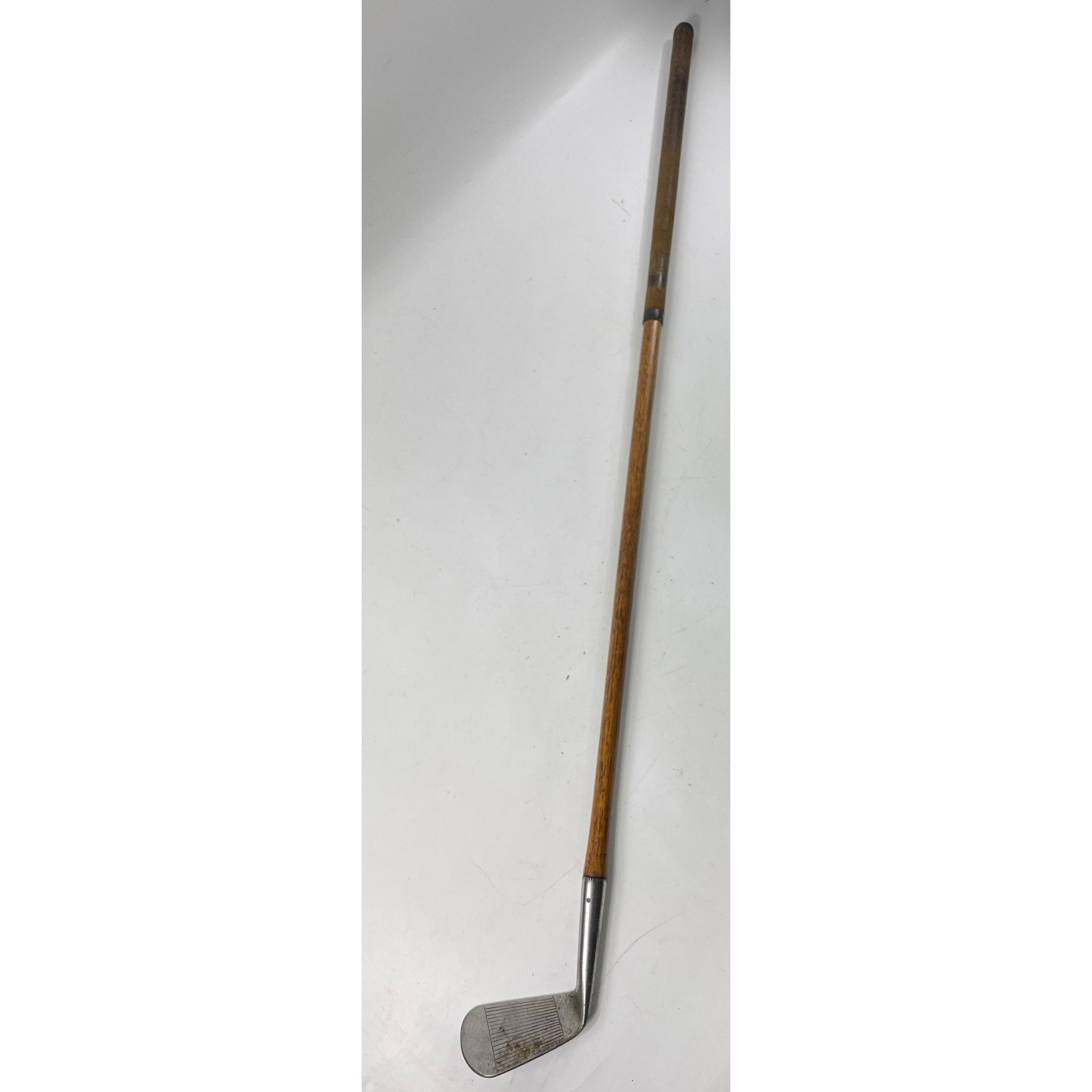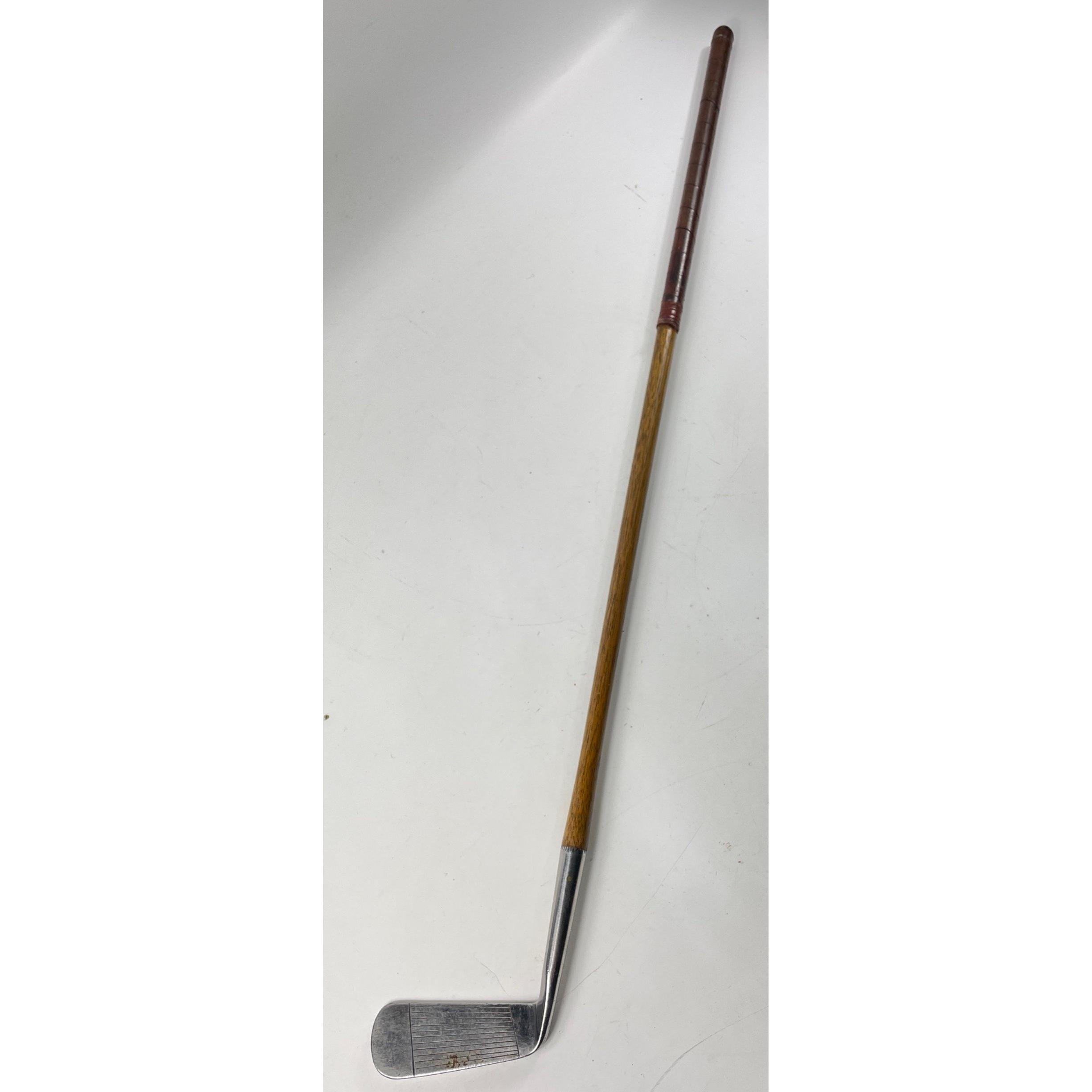 COLLECTABLE CLUBS! A vintage AUCHTERLONIE of ST ANDREWS " AUCHTIE" MASHIE with hickory shaft, a THORNTON & CO ladies putter with hickory shaft, a MAXWELL IRON club with hickory shaft and a brass putter with hickory shaft