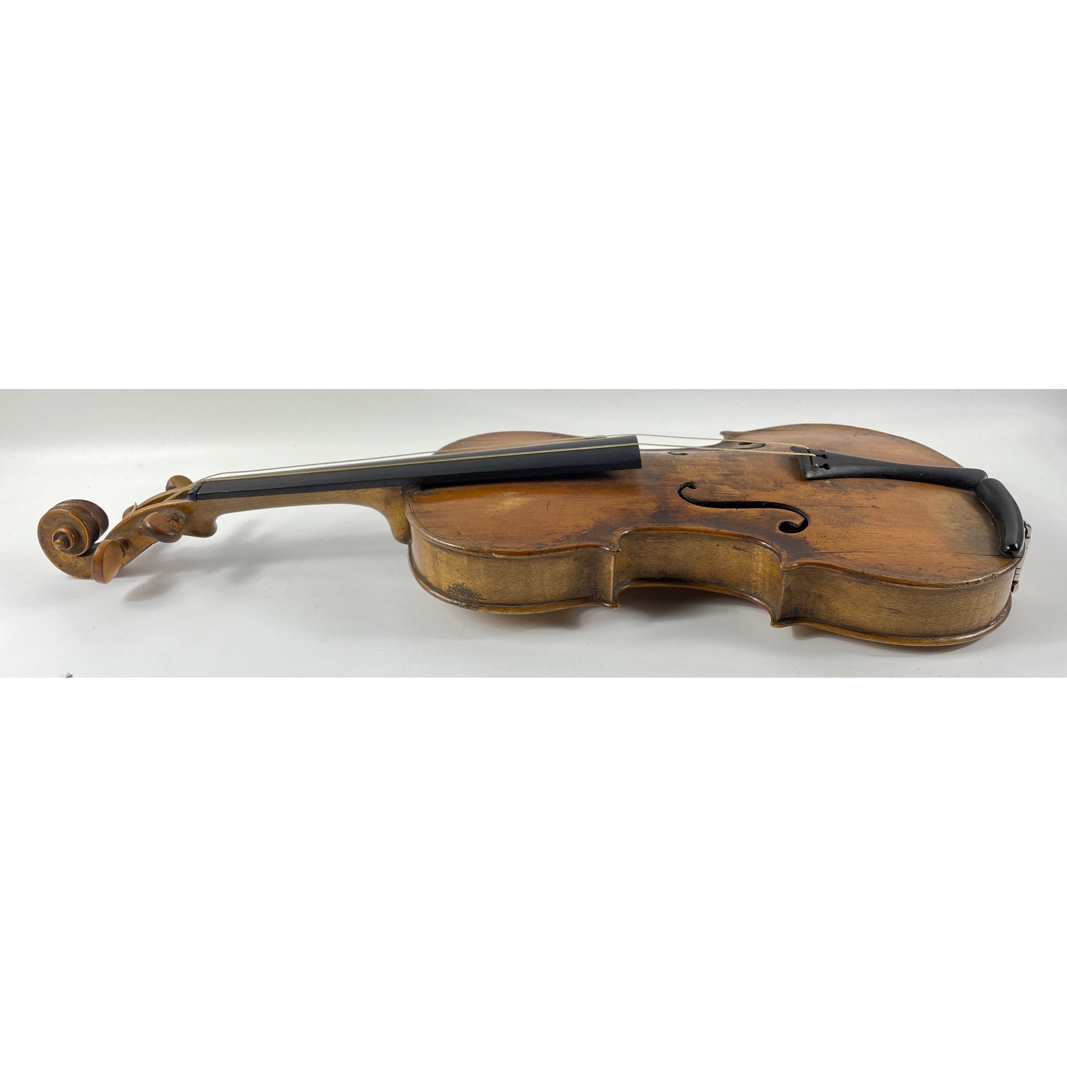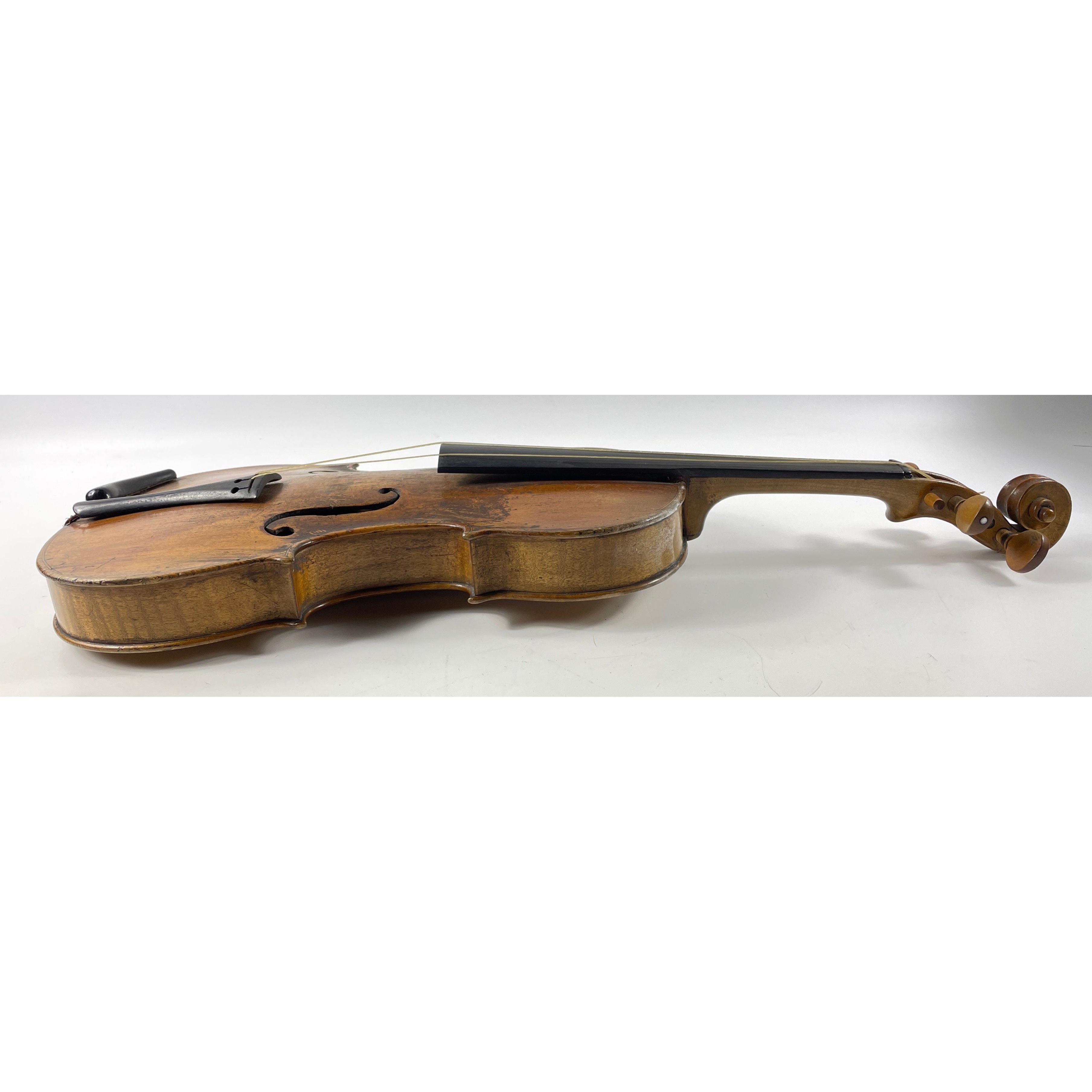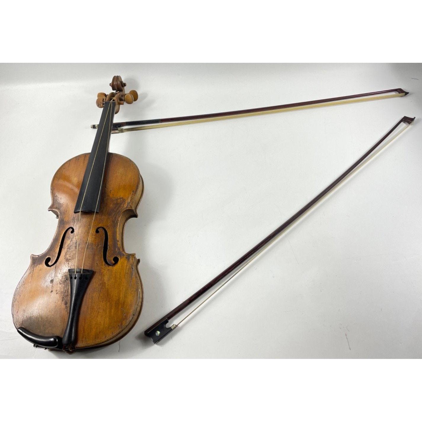 A vintage violin with an internal label reading MATHEW HARDIE, EDINBURGH, 1829, the violin measures 59cm with 2 strings and comes with 2 bows approx 73cm, The violin is housed in a wooden carryng case lined with worn red velvet