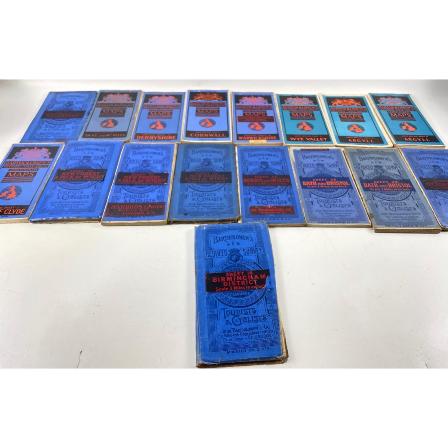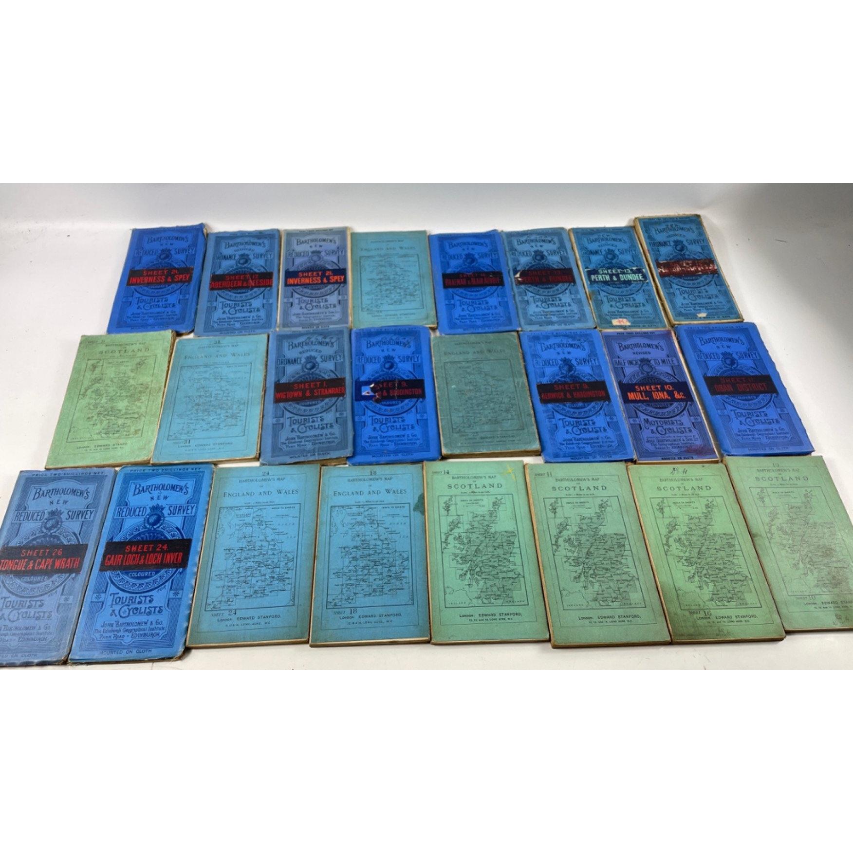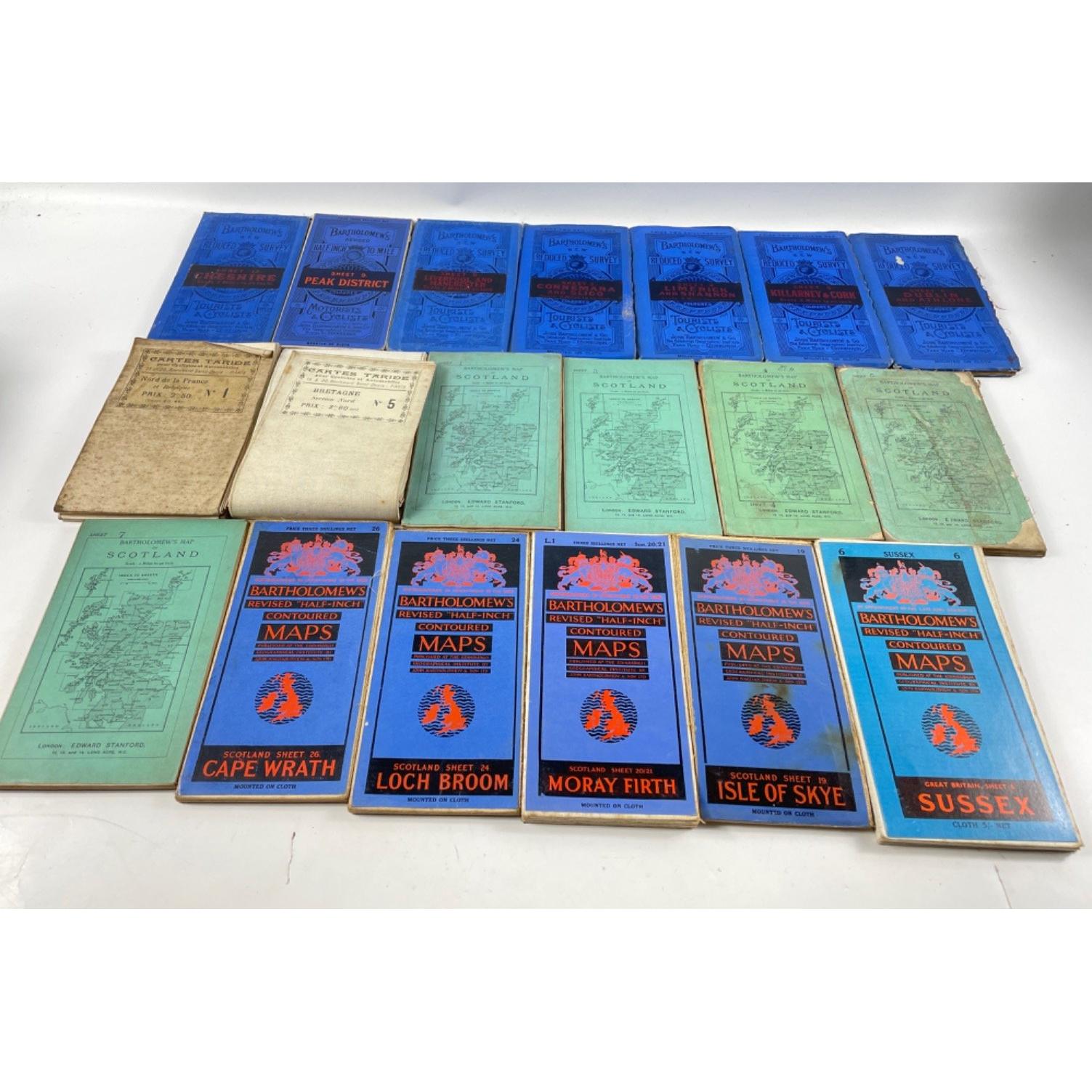 A box full of vintage BARTHOLOMEW'S MAPS including maps of Scotland, England and Wales as well as from the New Reduced Survey for tourists and cyclists
