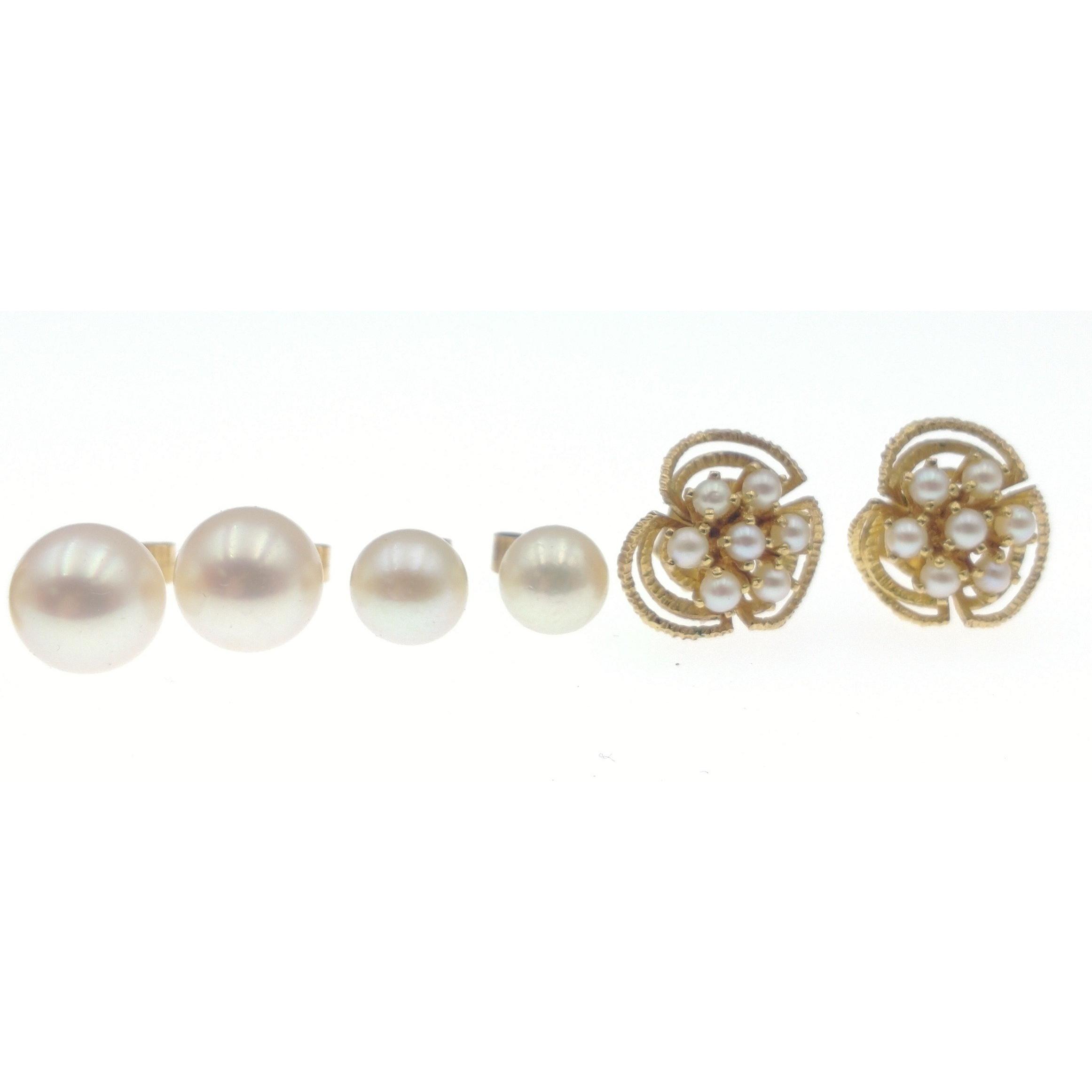 Collection of pearl earrings most stamped 9ct, two pairs yellow metal
