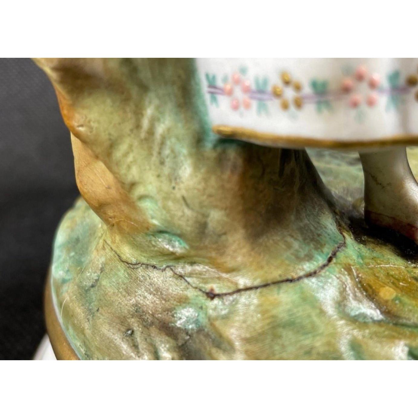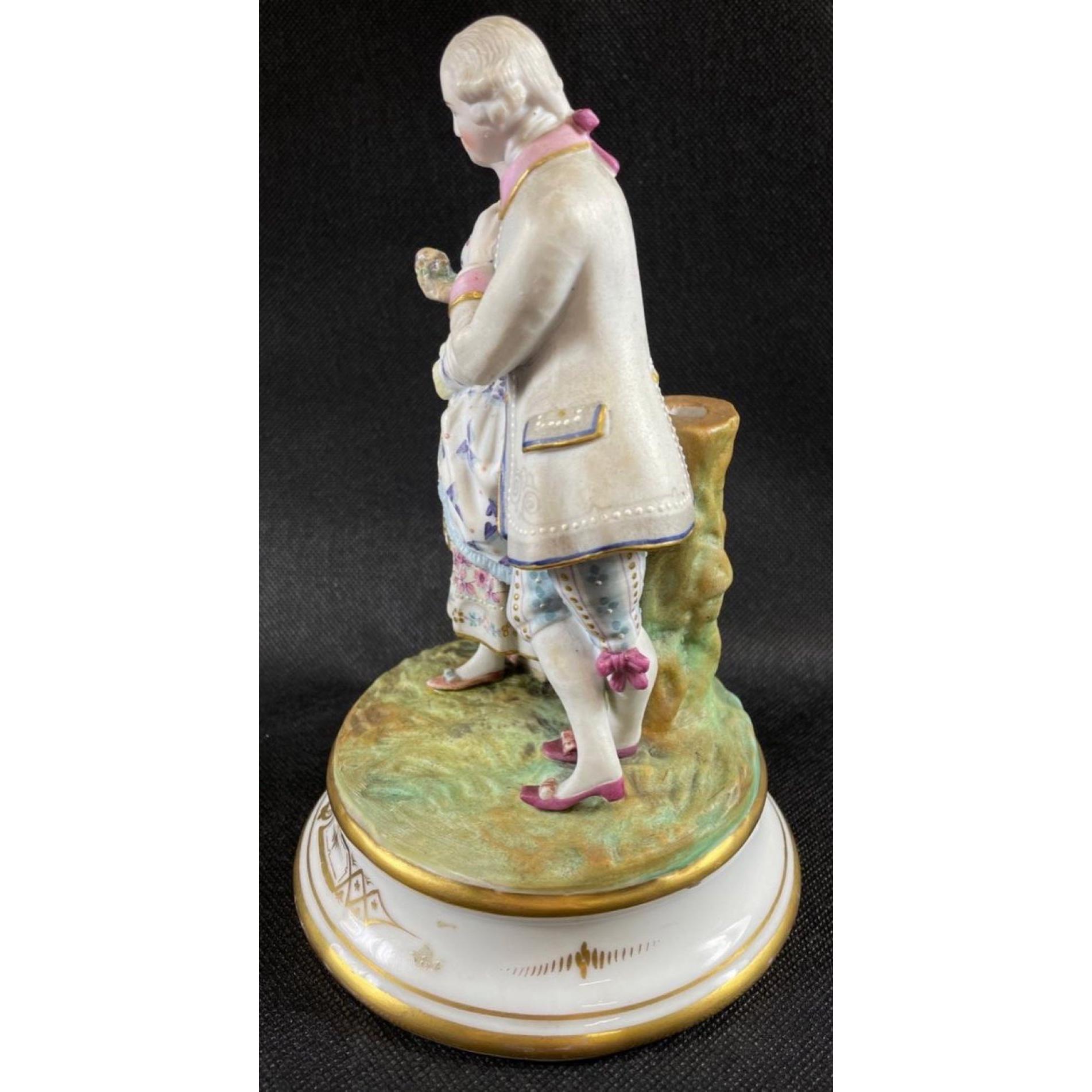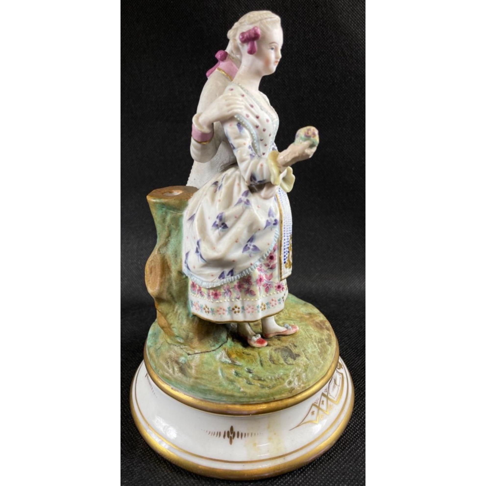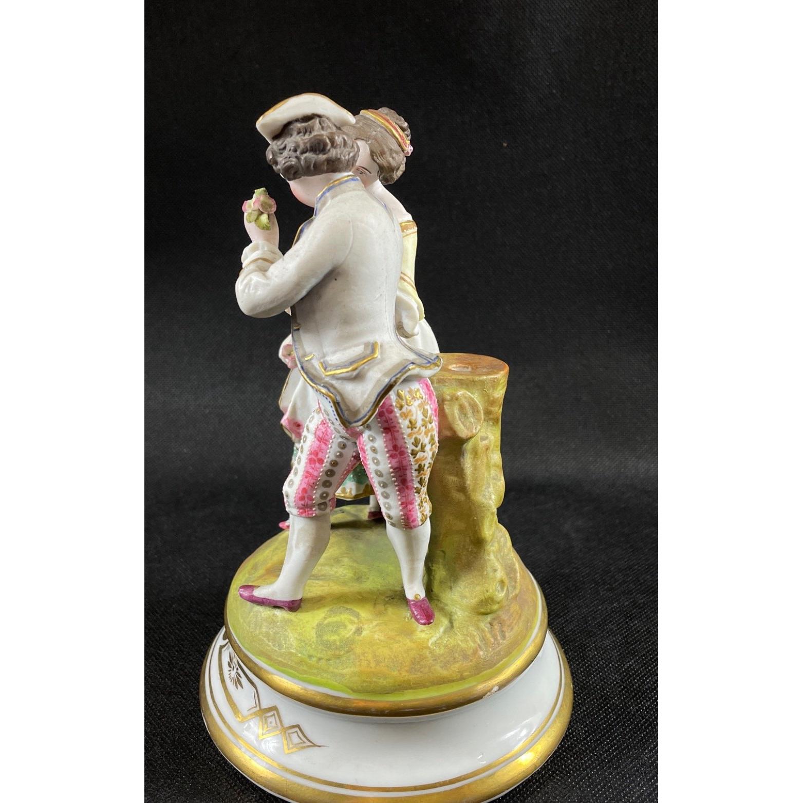 Two decorative figurines of loving couples, no maker's mark, the couple in pink is stamped 168 to base, the other, in blue, is stamped 242, each stands 20cmApprox 2 pieces