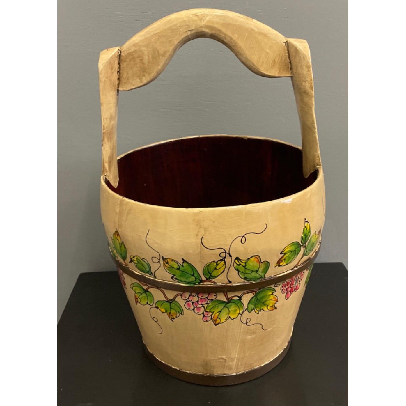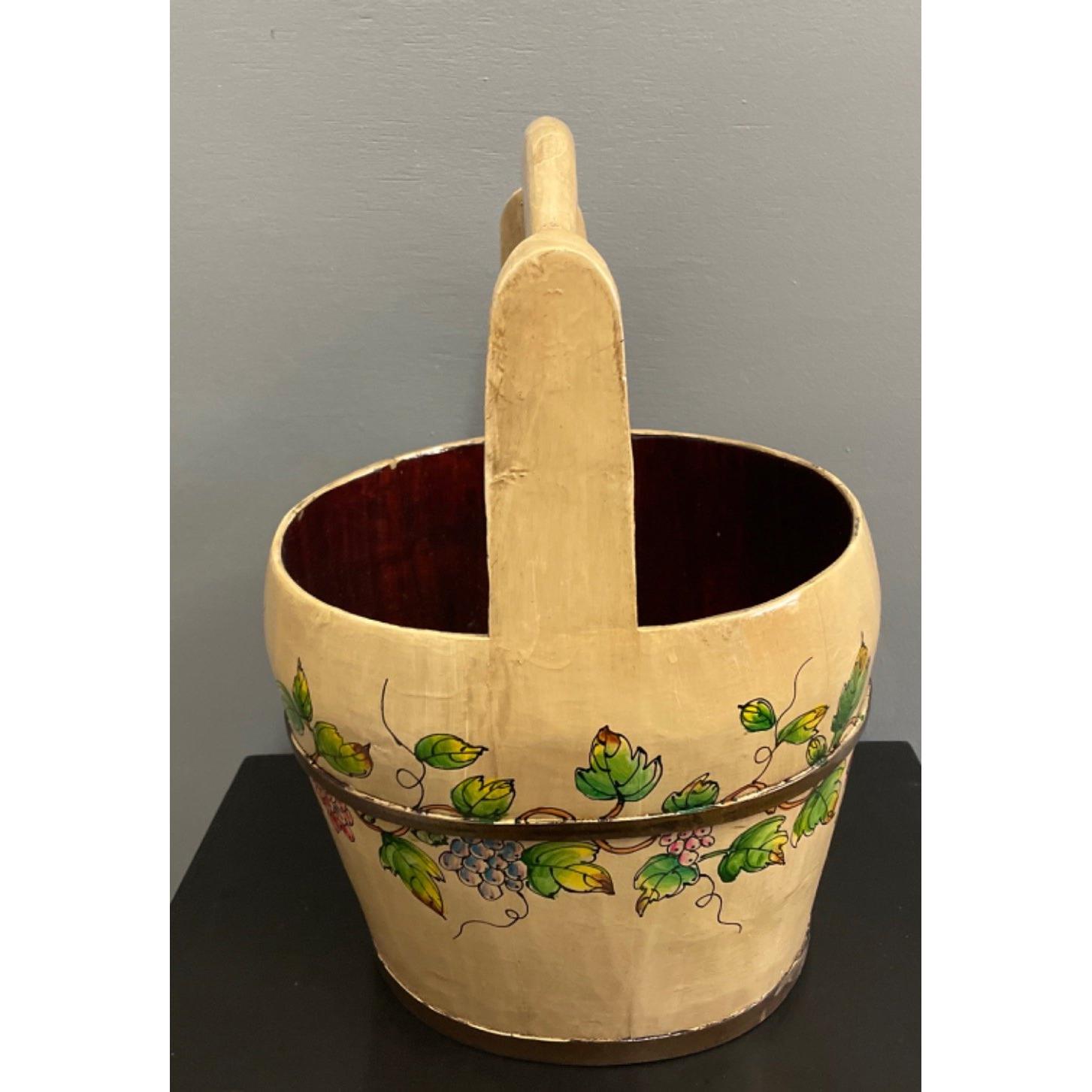 ORIENTAL decorative cream based lacquered water barrel with a floral patterned design W: 28cm approx H: 44cm approx D: 29cm approx