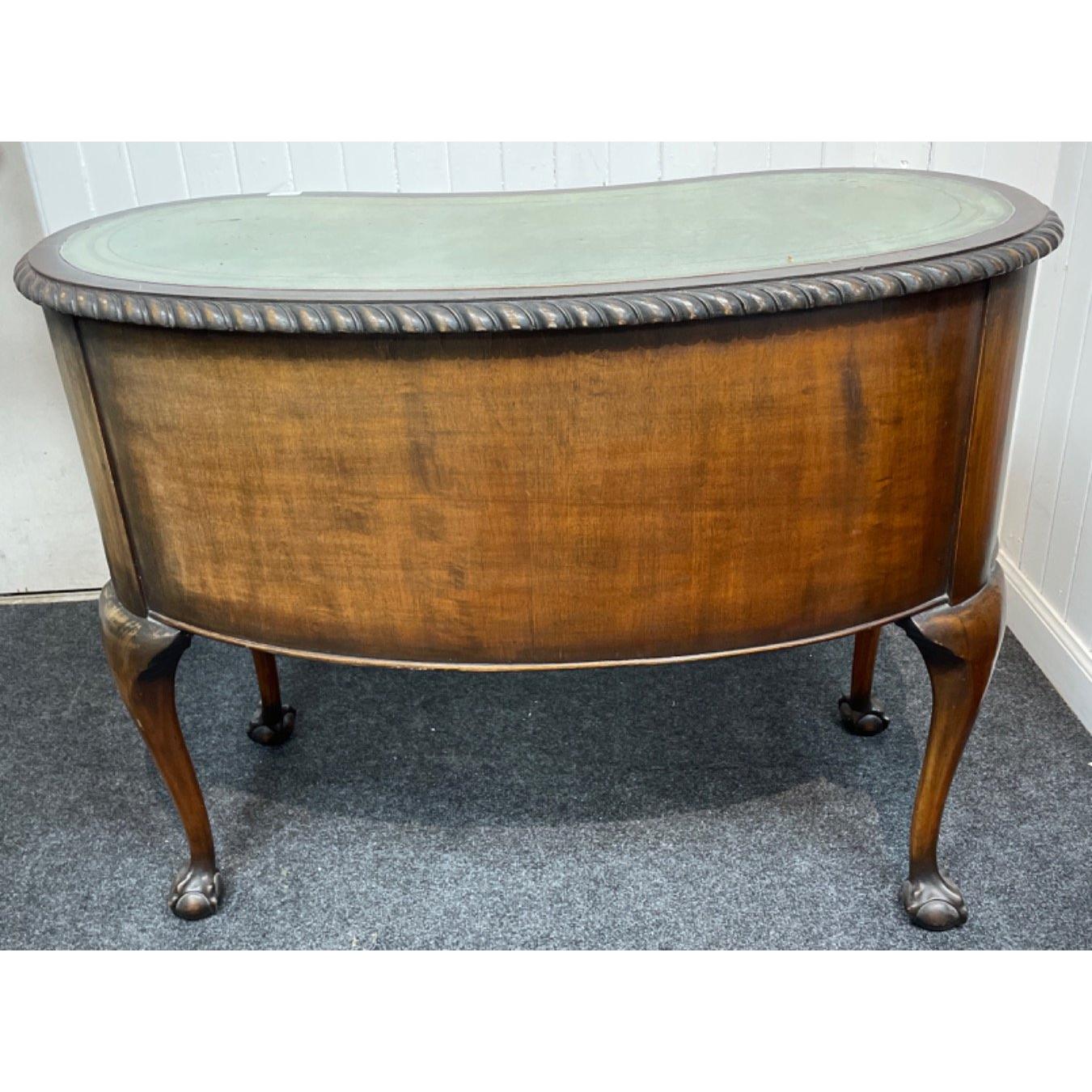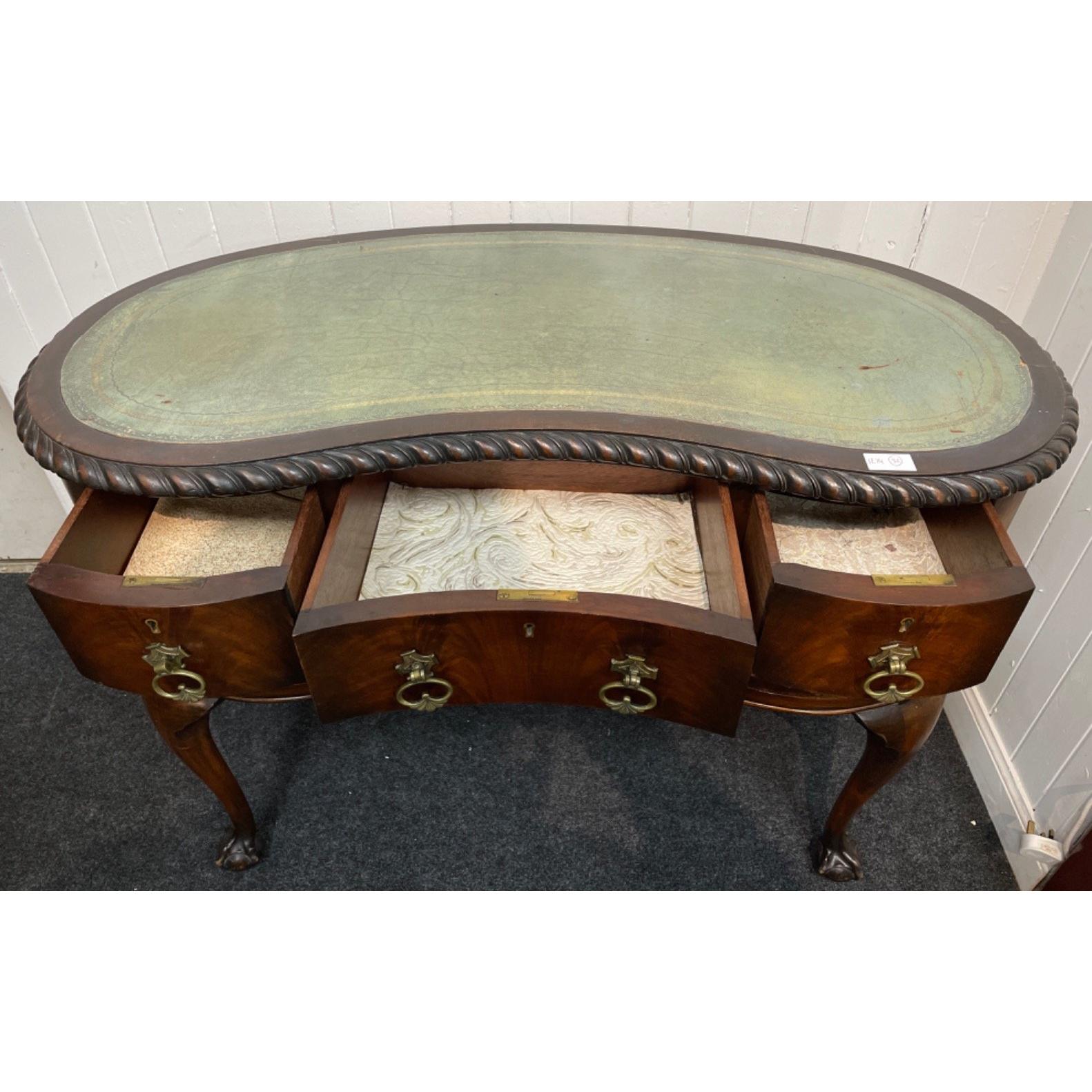 An EDWARDIAN inspired kidney form knee-hole correspondence desk with green leather pad and three over two drawers, with brass handles supported on ball and claw feet length 100cm x depth 45cm x height 80cm approx