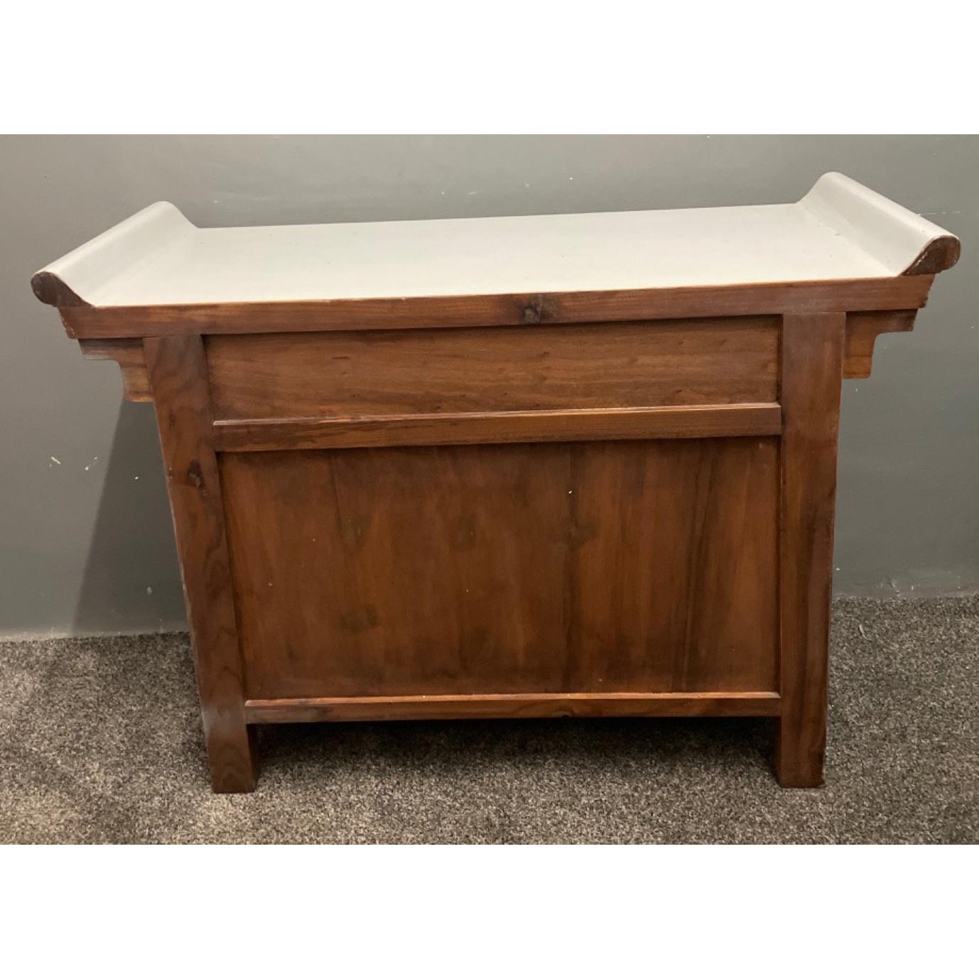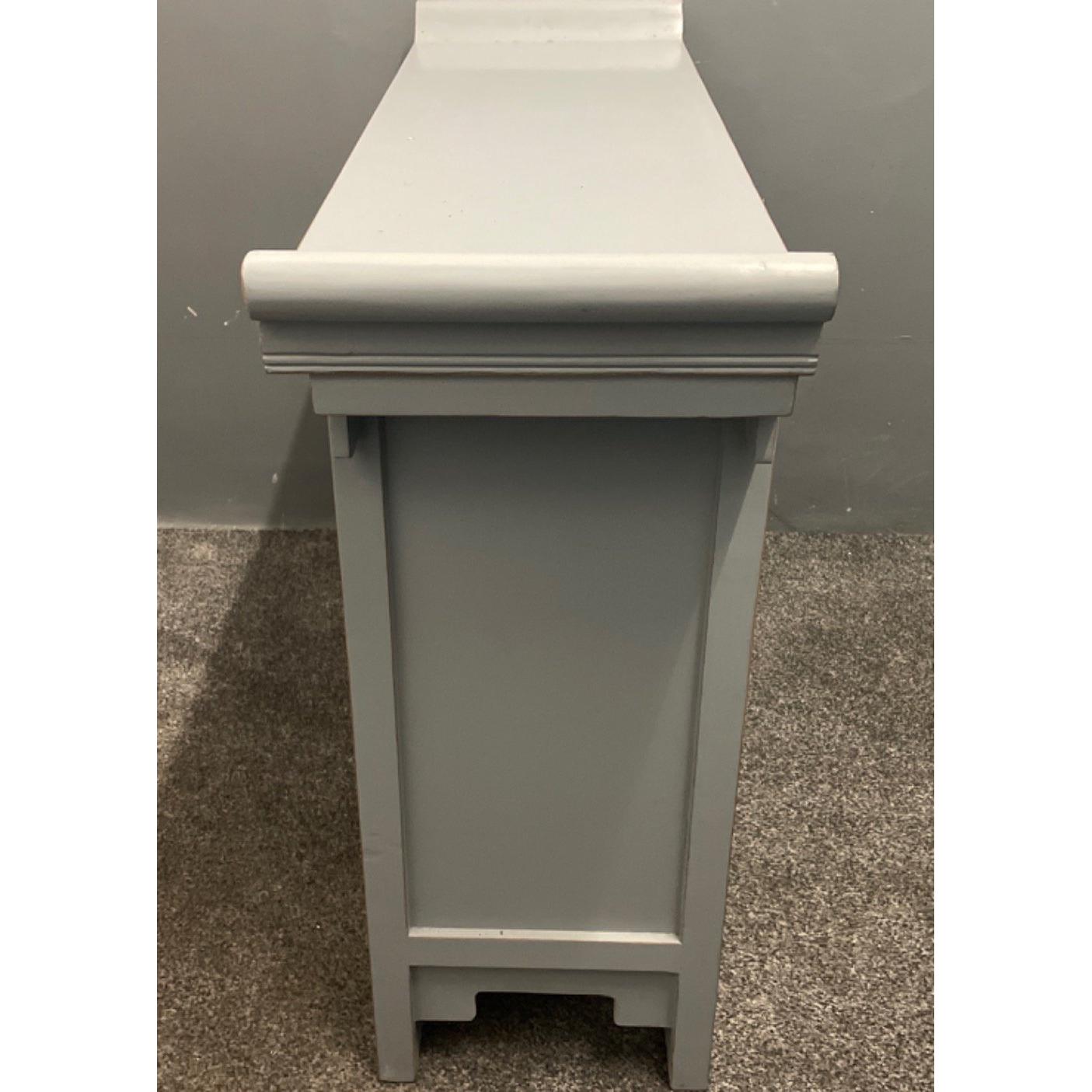 ORIENTAL decorative dove-white traditional design lacquered dove white/blue based two door and two drawer console cabinet - with traditional oriental upturned ends - new ! unused item in storage