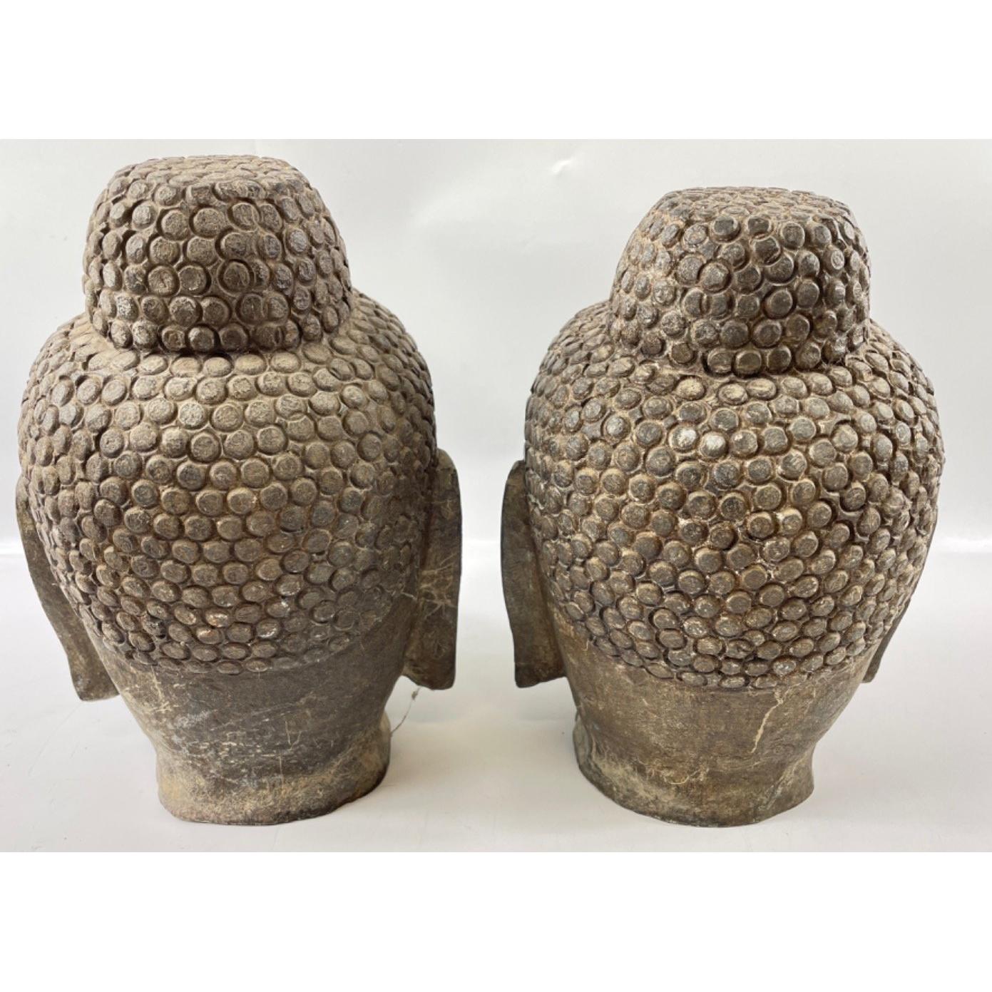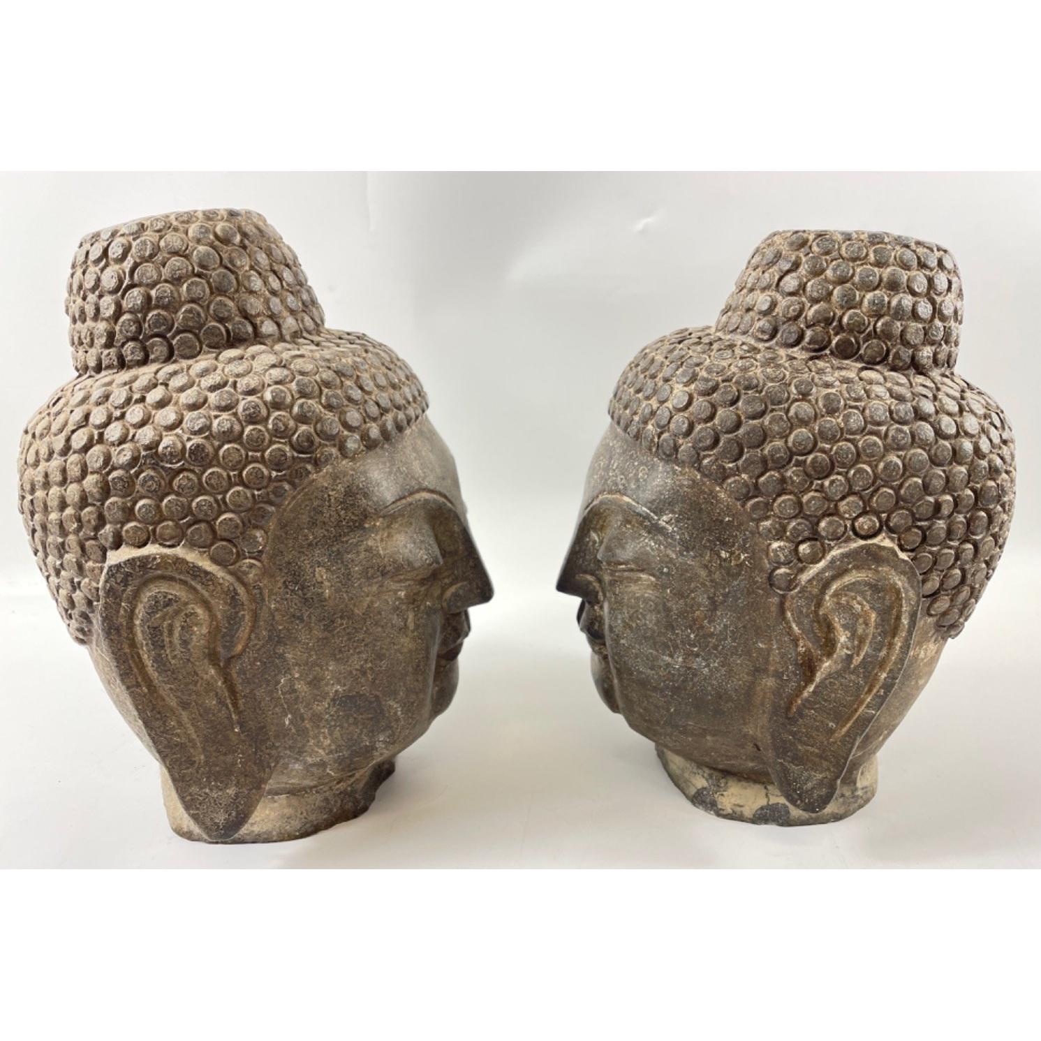 SIMPLY FABULOUS! A pair of SUBSTANTIAL DECORATIVE solid stone BUDDAH heads hand carved in great detail - they are extremely heavy! - dimensions 25cm height x 15cm depthApprox 2 pieces