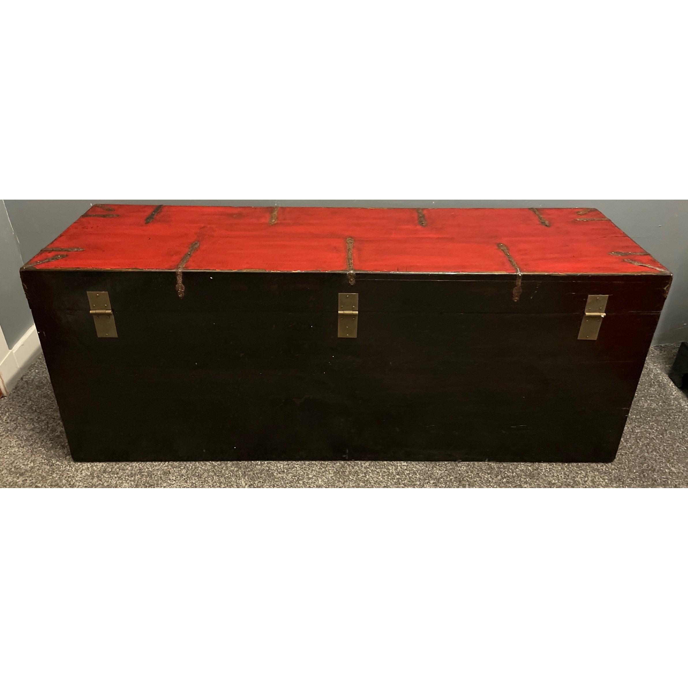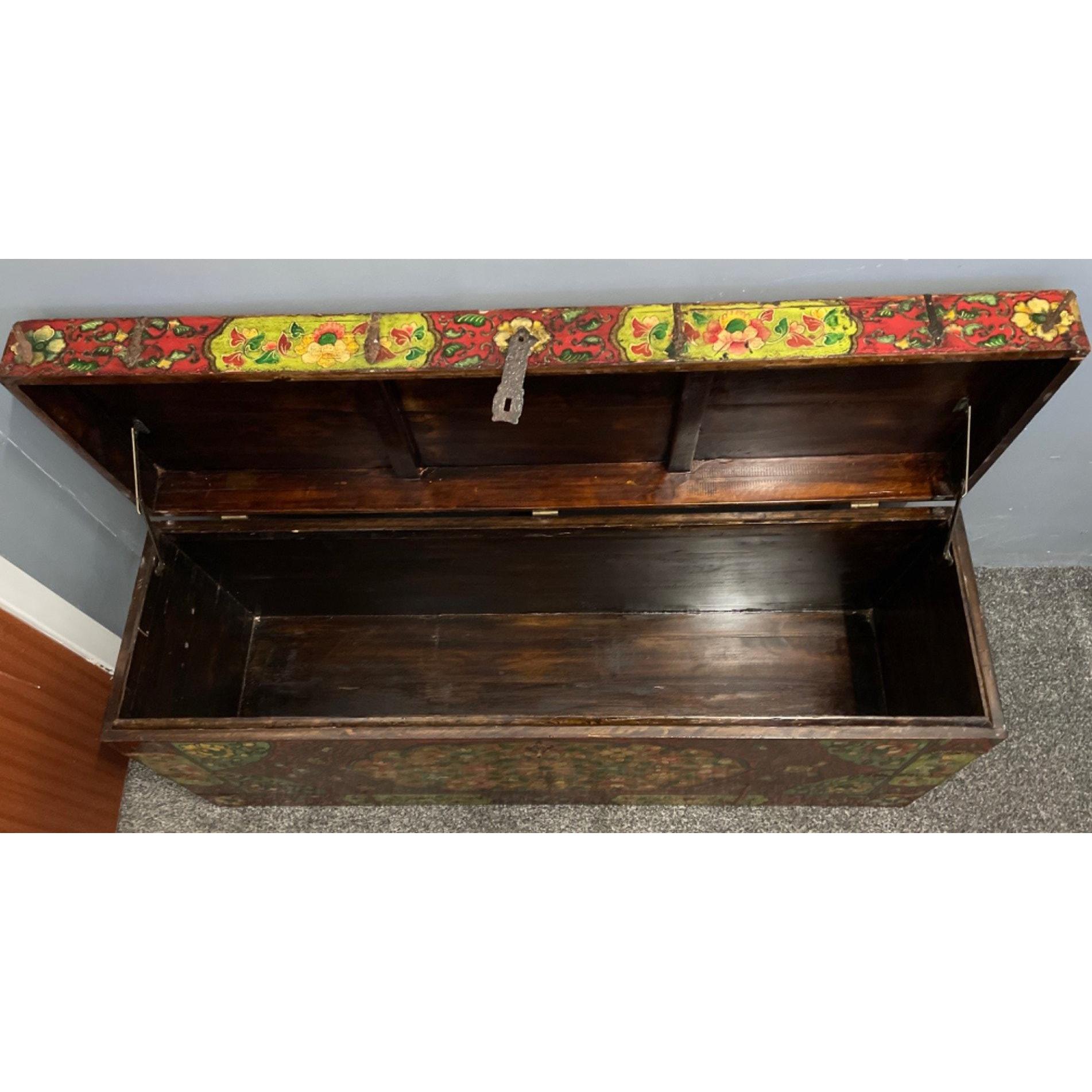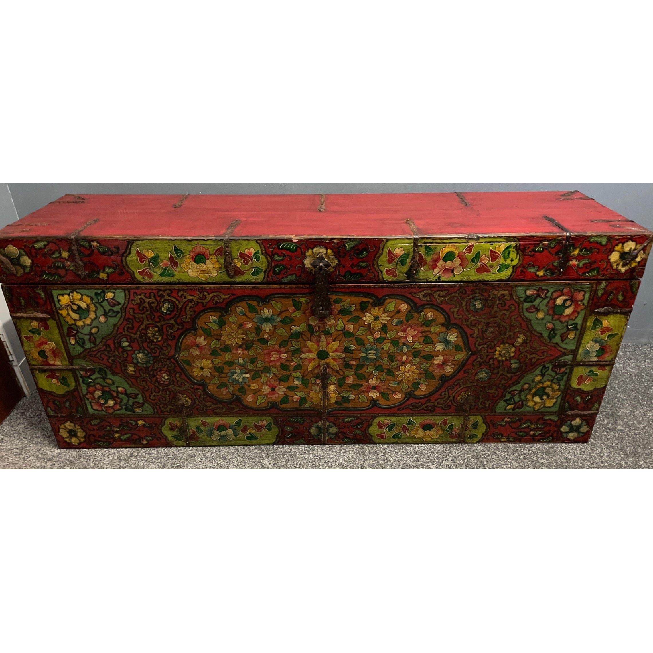 A STATEMENT PIECE - An ORIENTAL HIGHLY DECORATED 'hand-painted' lounge or bedroom storage blanket-box - with a nice brass style escutcheon style fittings - new and unused item in storage - great for storage !