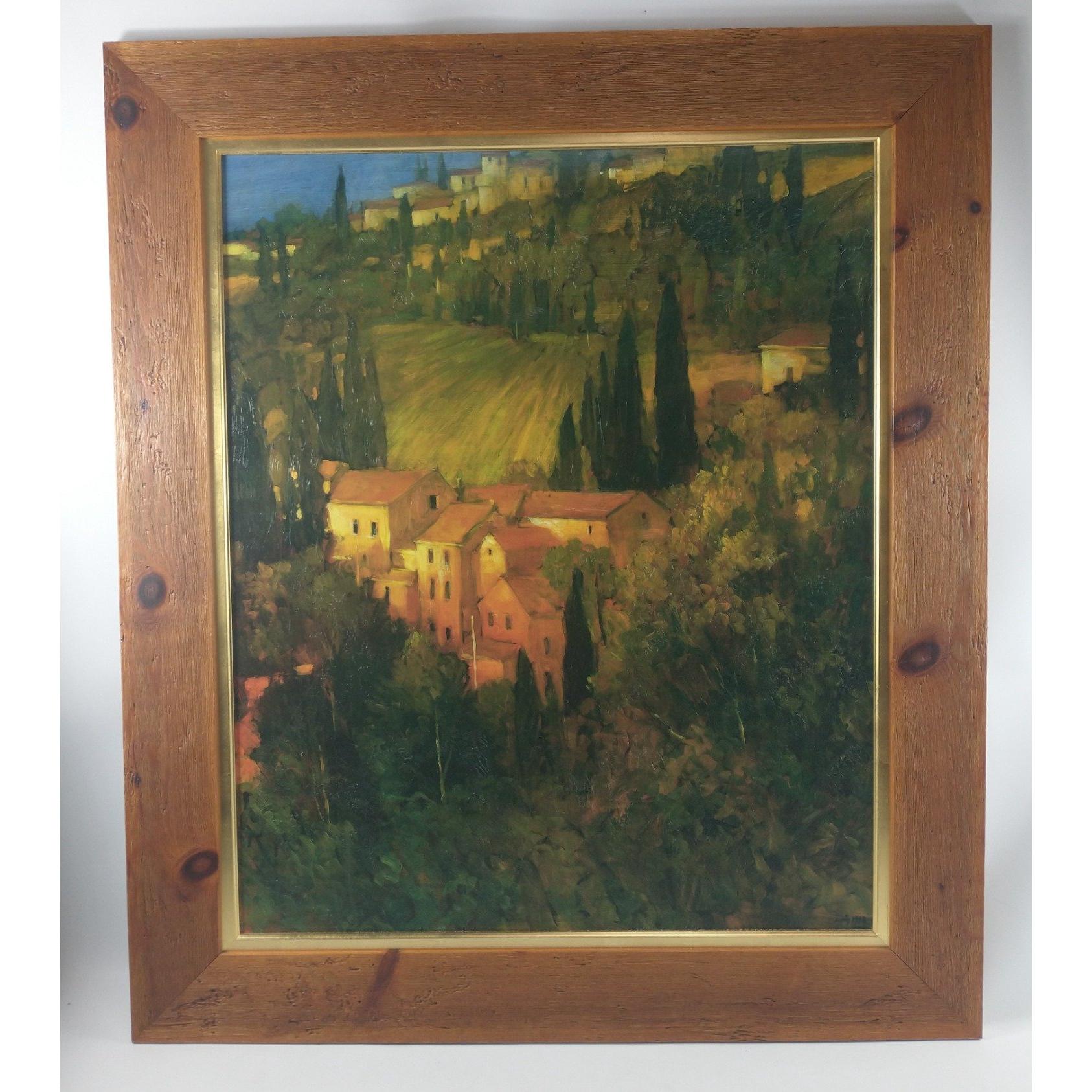 Large print of a Tuscany scene in thick antique pine frame. Label with 'Tuscany II P. CRAIG' verso. Frame width: 8.5cmW: 77cm approx H: 90cm approx Approx 1 pieces