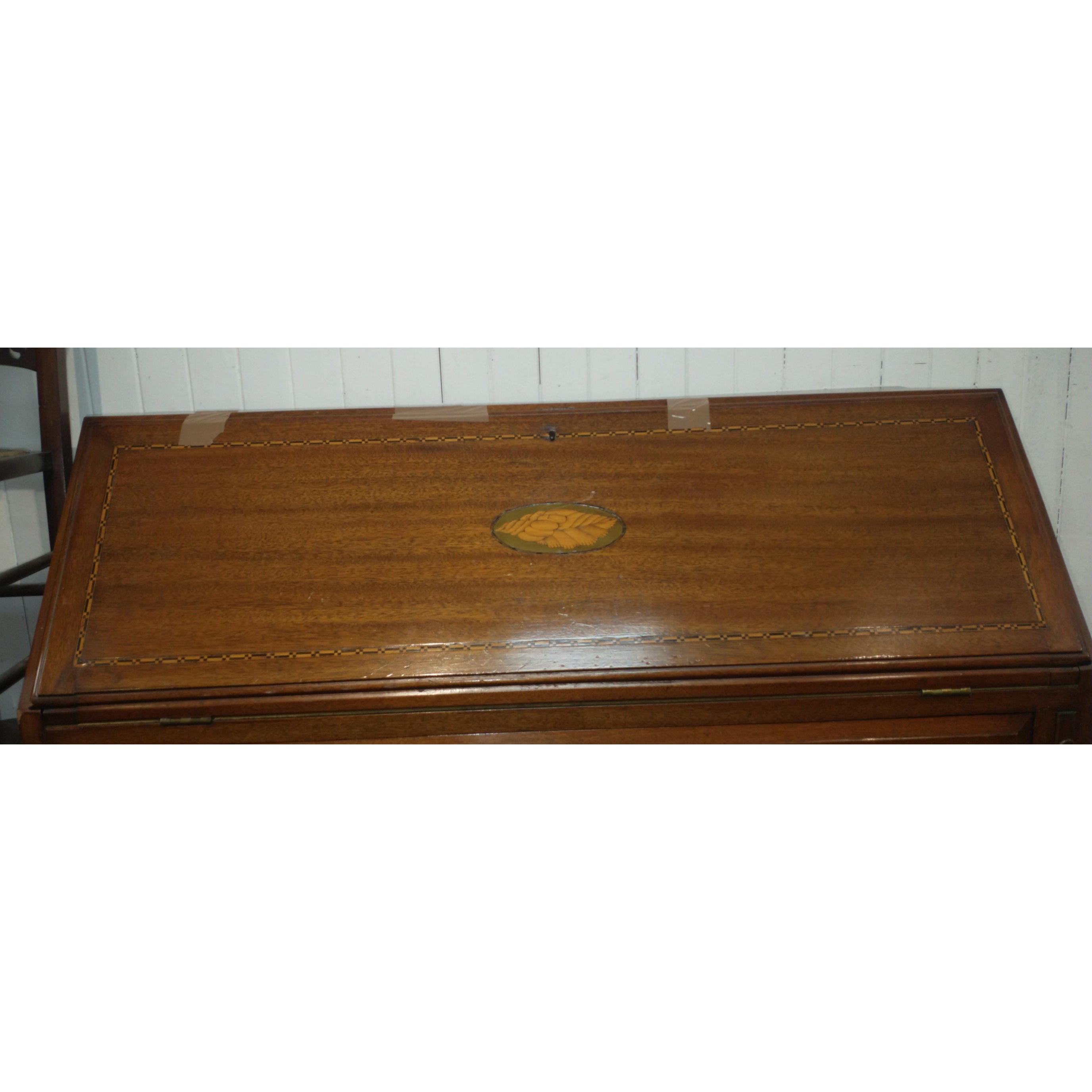 An EDWARDIAN bureau with shell motif, green leather writing pad and 3 drawersW: 112cm approx H: 117cm approx D: 53cm approx