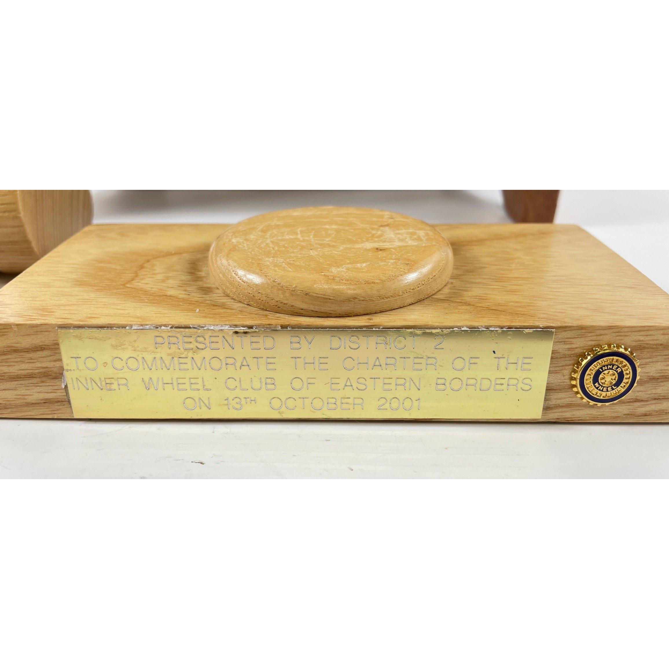 A small lectern and gavel presented by District 2 to commemorate the charter of the Inner Wheel club of Eastern Borders on 13th October 2001, lectern measures 27H x30W x25DApprox 3 pieces