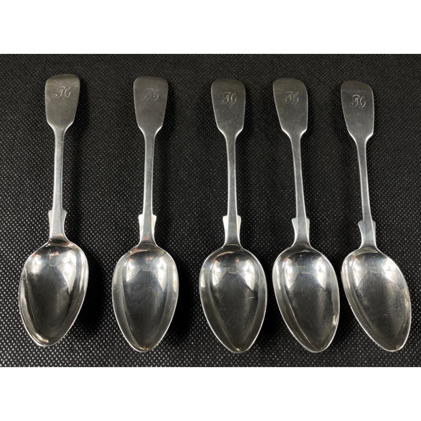 A set of 6 silver hallmarked teaspoons with initials 'JG' on the handle, Edinburgh 1843, gross weight 101.5gApprox 6 pieces
